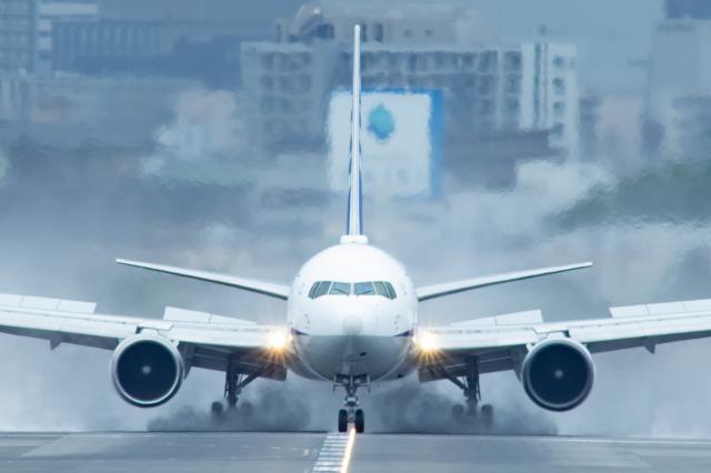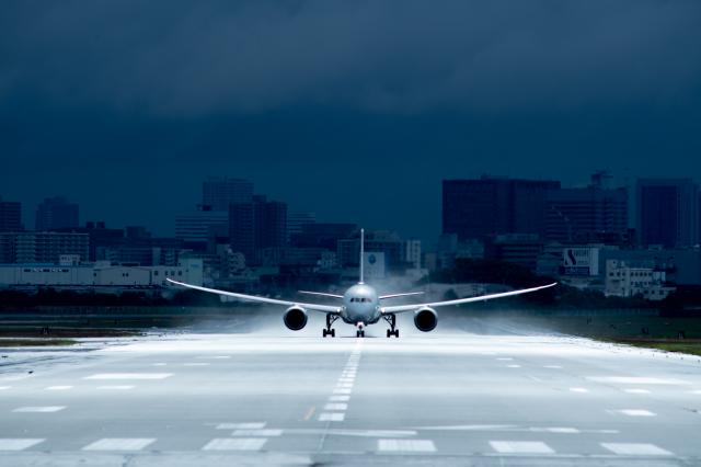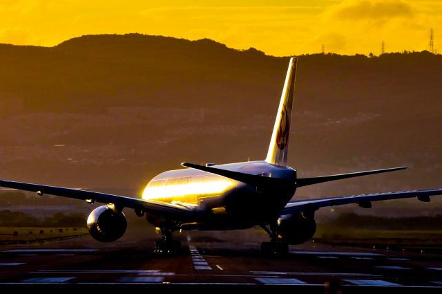 大坂国際空港RW32LへW2から侵入の際、夕日を受けた機体