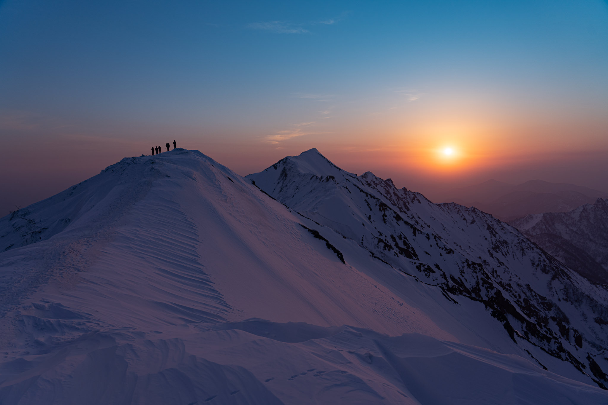 沈みゆく太陽を見ながら、残る光に照らされる燕岳を拝みました。