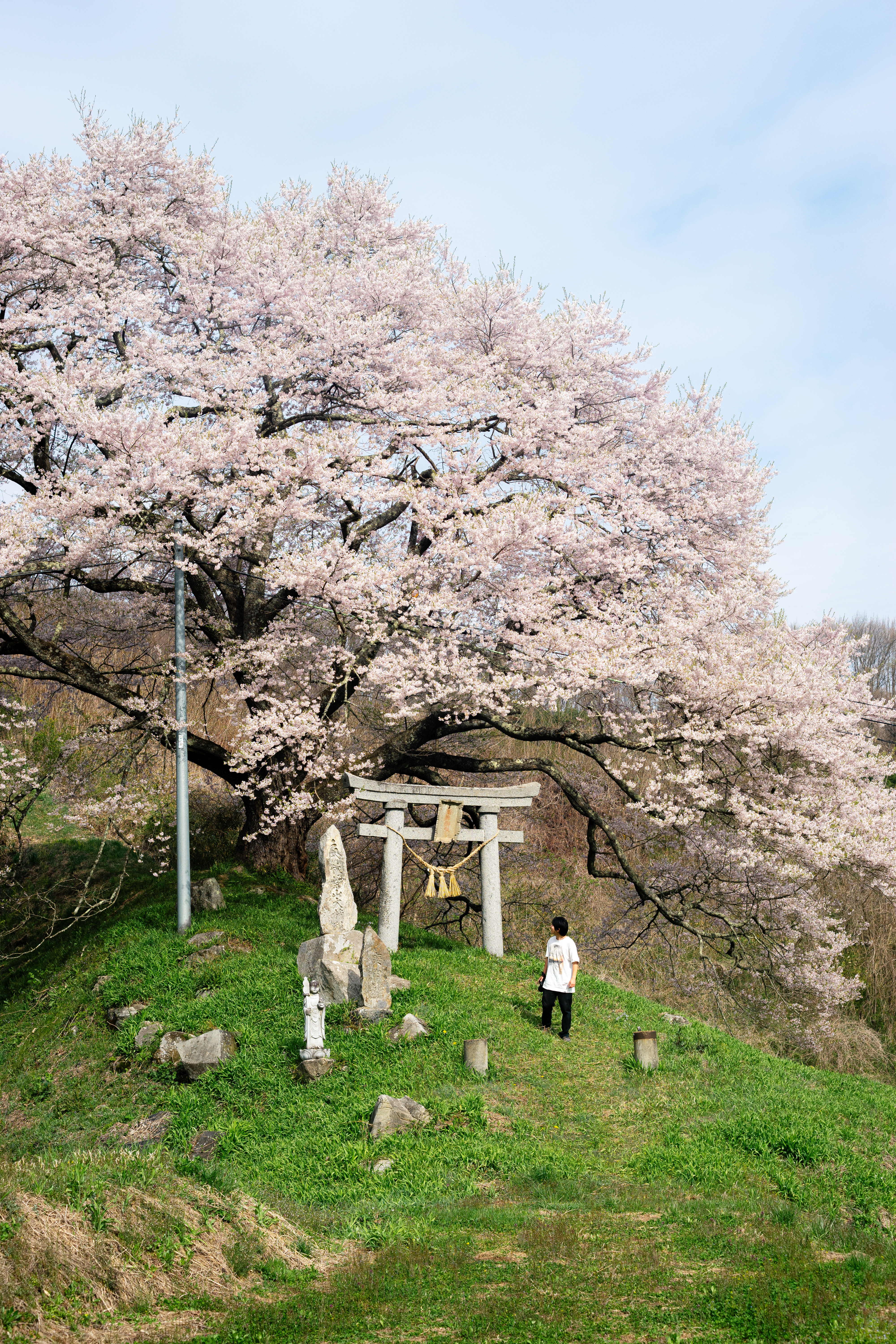 鳥居をくぐり桜の木の下からは神域