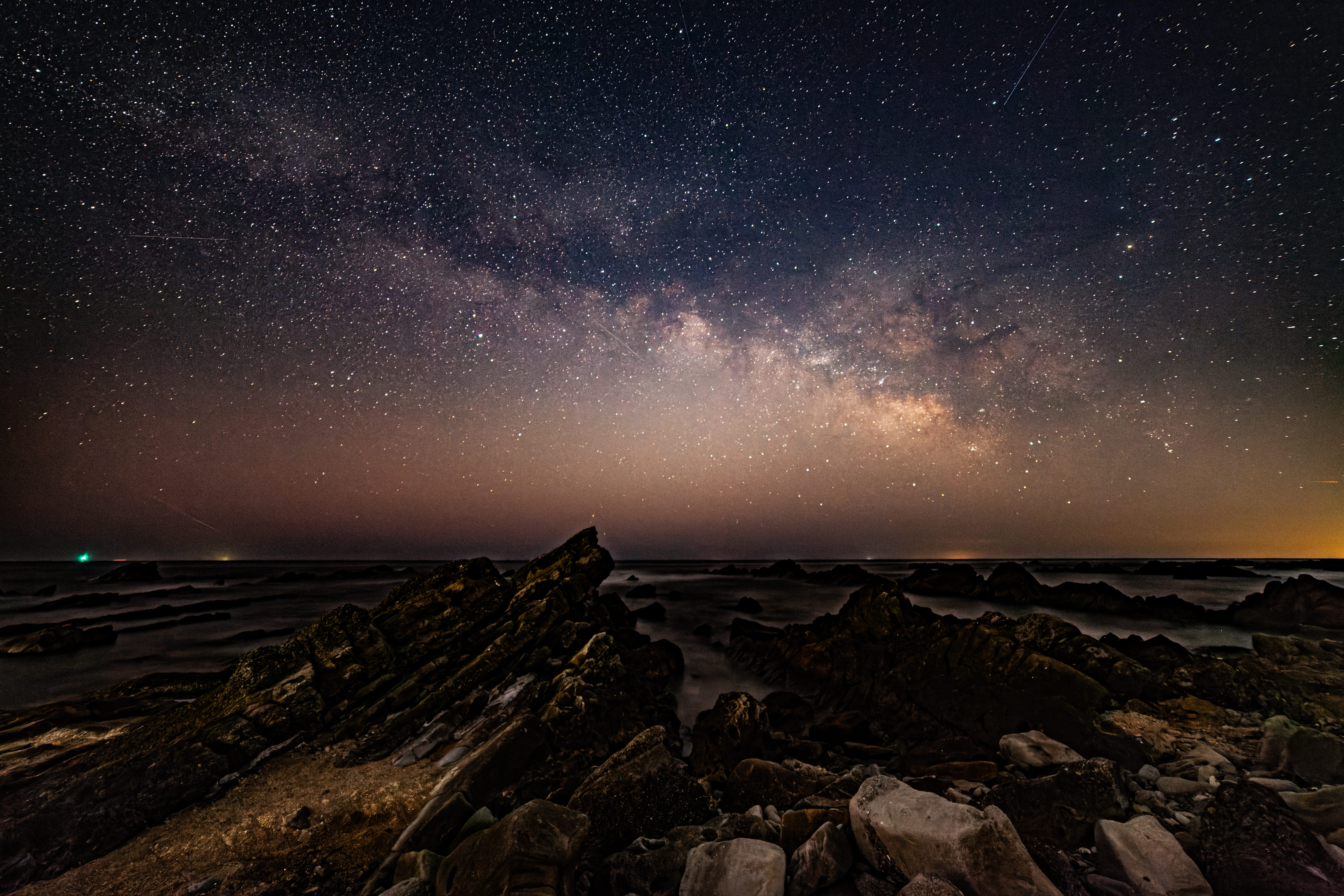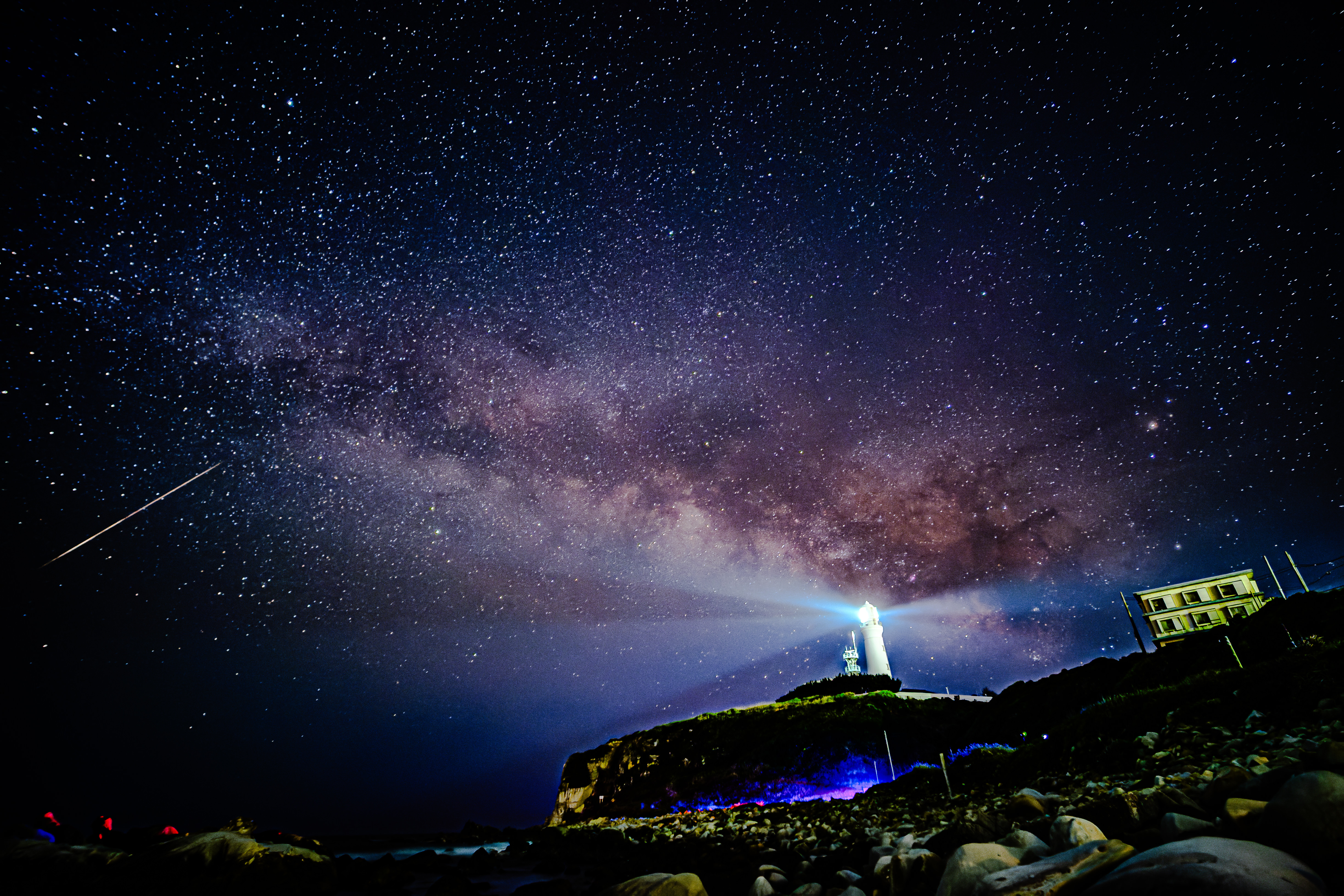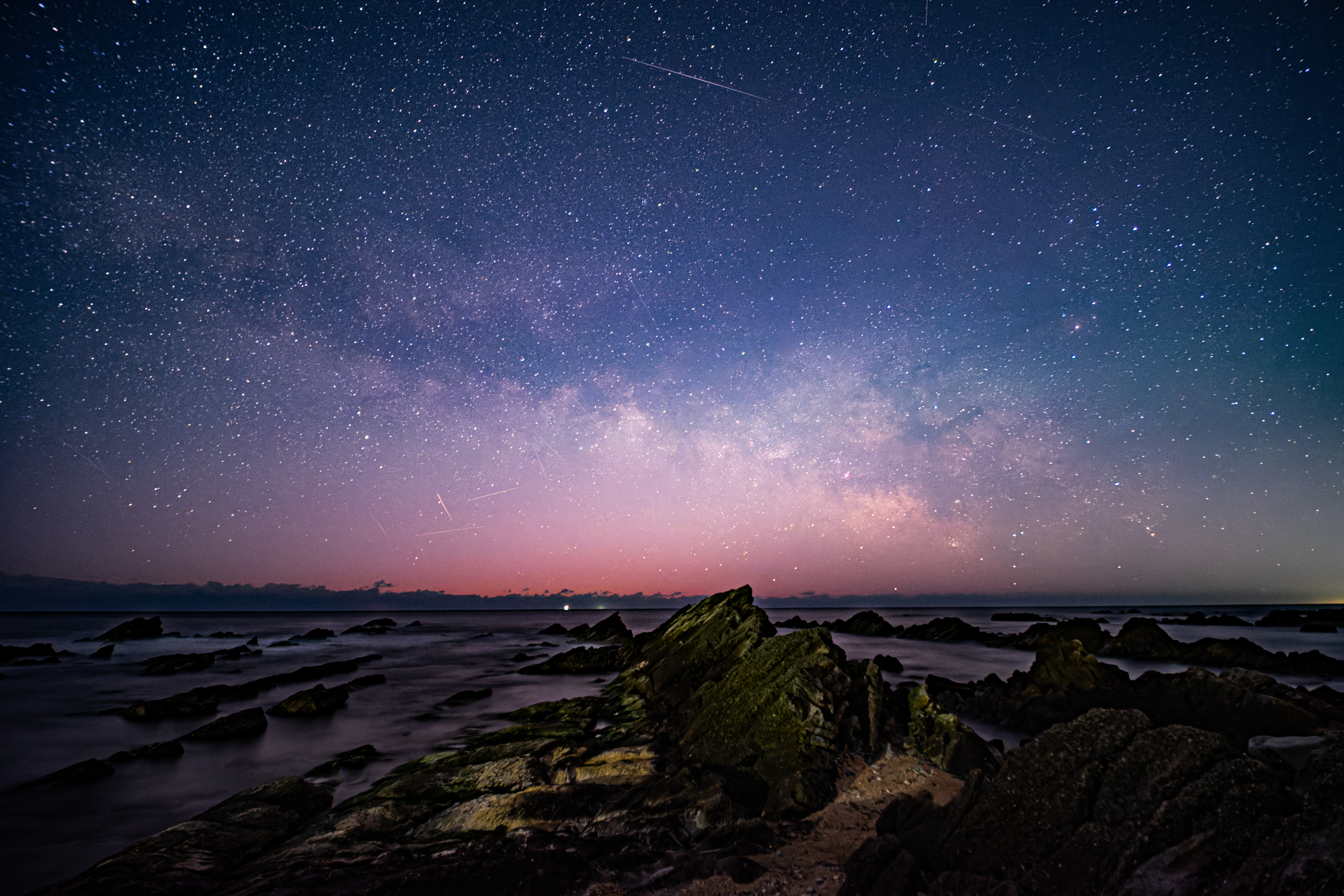 ロケハン無しで初めて犬吠埼まで足を伸ばしてみました。星空指数100でしたが道中雲が出始め霧も漂う始末。失敗だったかと思いつつ2時間位粘ってみました。灯台の光芒を綺麗に出すには露光時間を短くしないとダメですが、そのために感度を上げるとノイズが増えて現像耐性も落ちるし‥結局、いつもの露光時間の写真でおそらく流星が写り込んでいるものを選んでみました。春霞が濃く天の川を炙り出すのに試行錯誤。一度アップしたものを削除して再現像してみました。