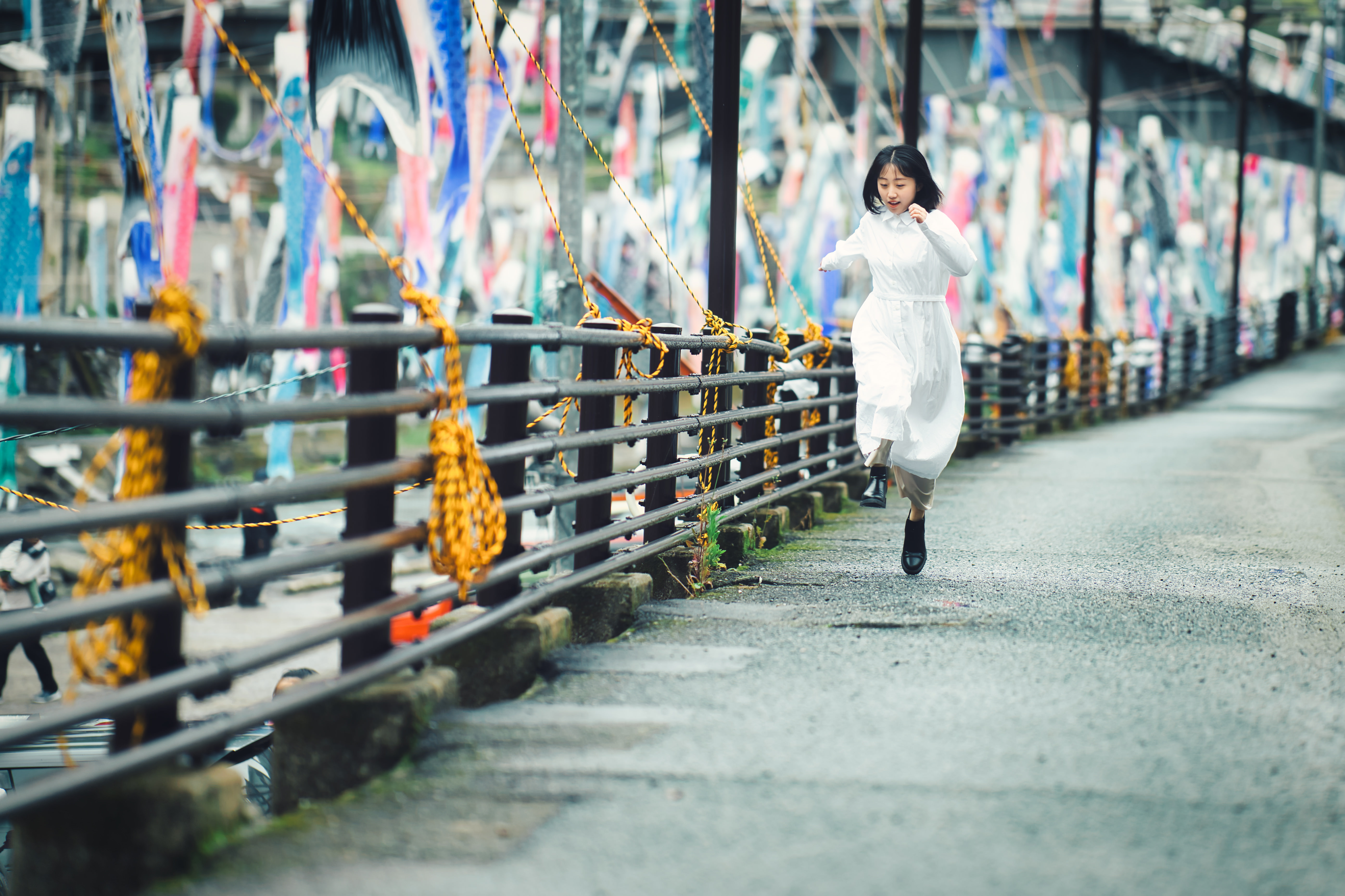 風がなく動きのない鯉のぼり達の横を、全力の躍動感で駆け抜ける彼女の存在感が好きな一枚です。