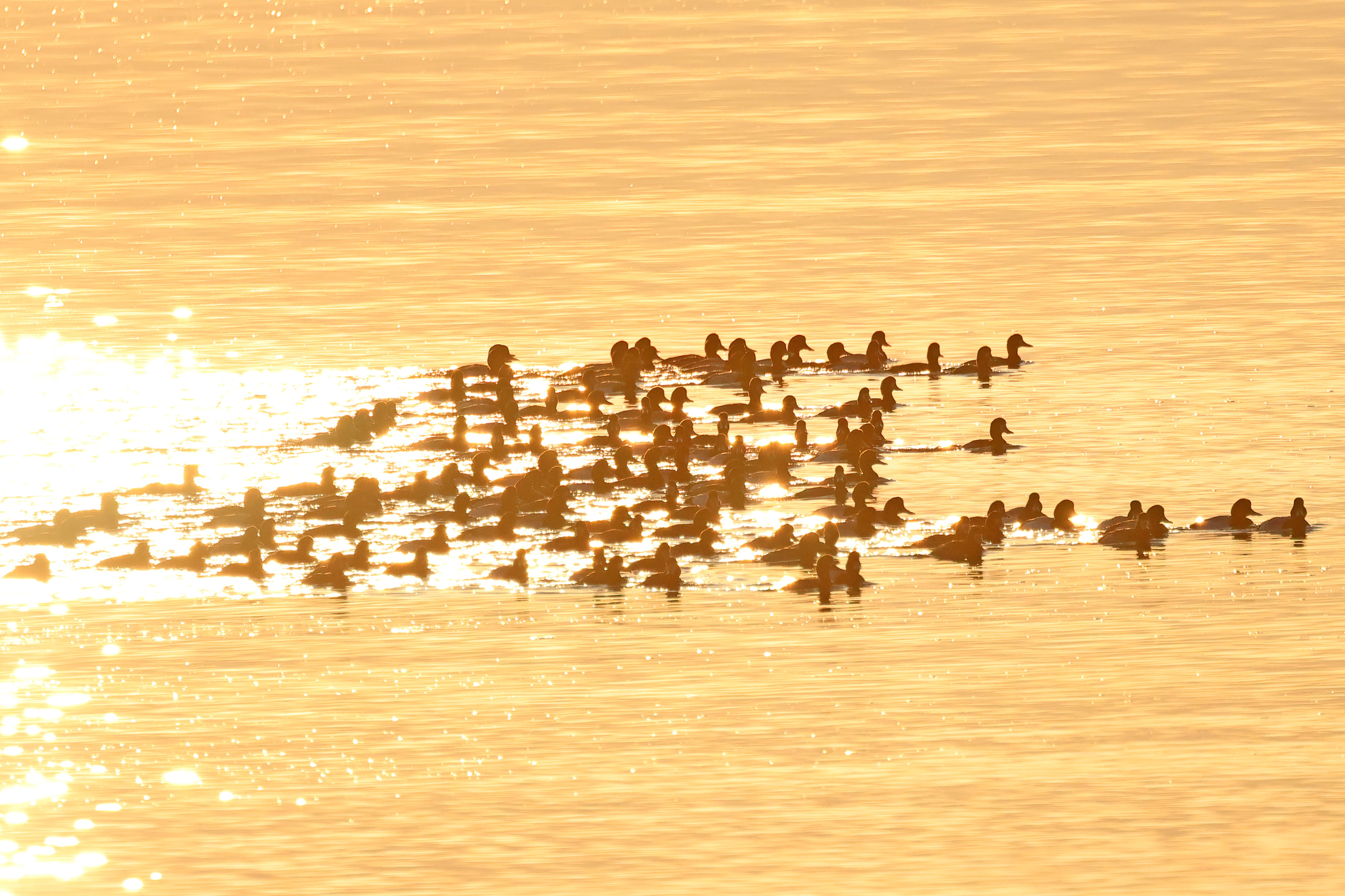 田尻町の海岸近くにスズガモの群れが集まるようになりました。