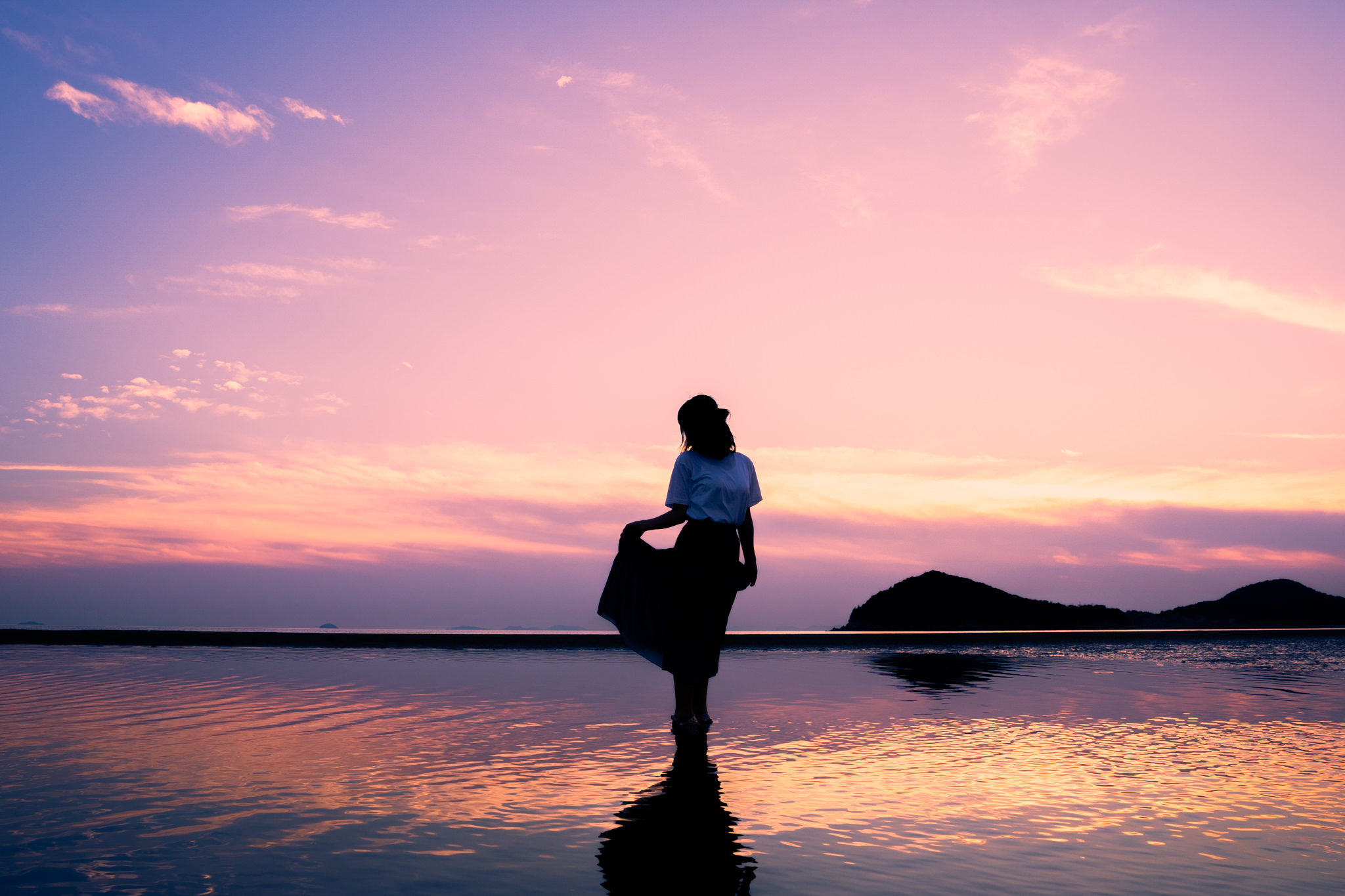夕日をバックにポートレートを撮りました。