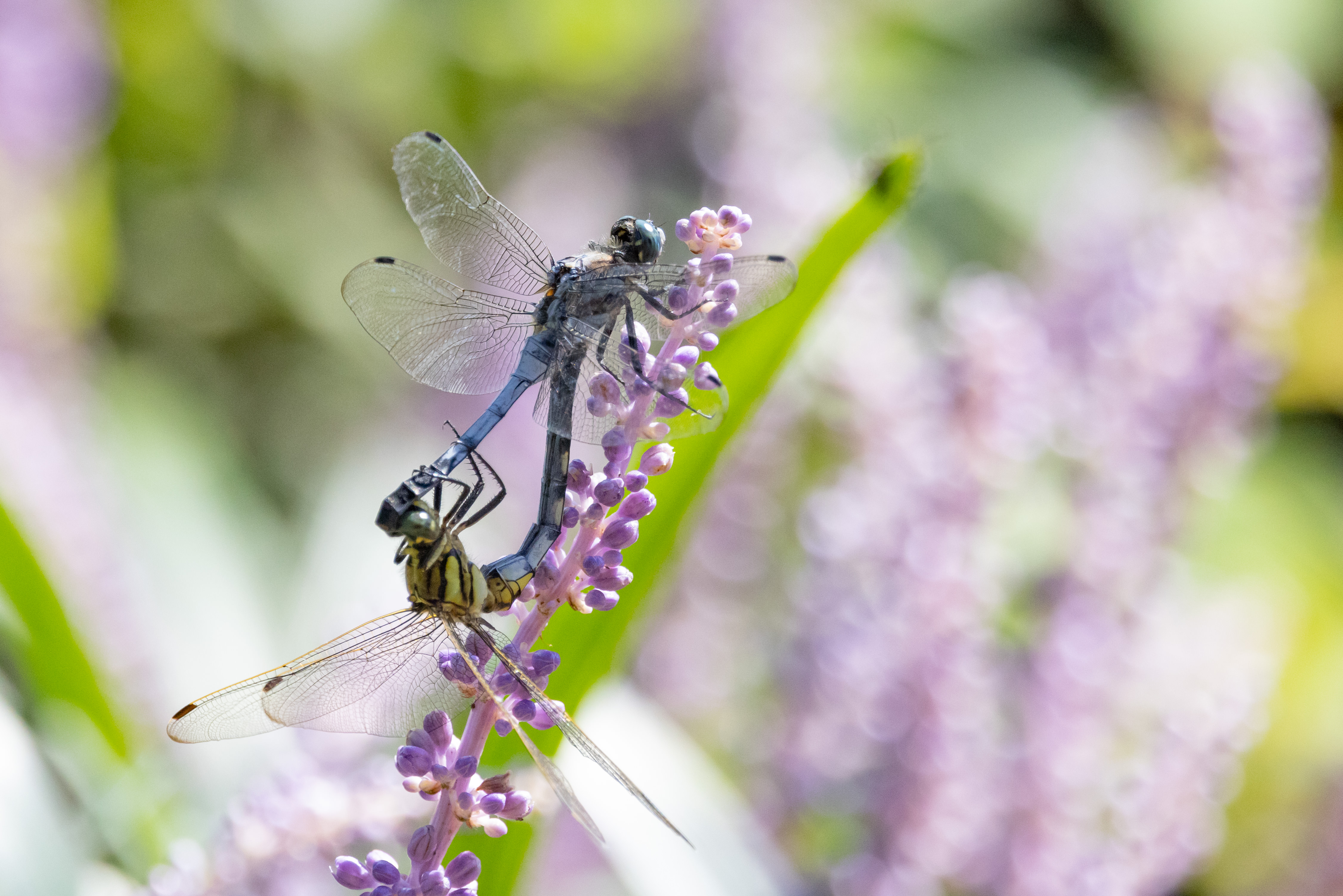 公園で出会いました(シオカラトンボの3連結飛行)。