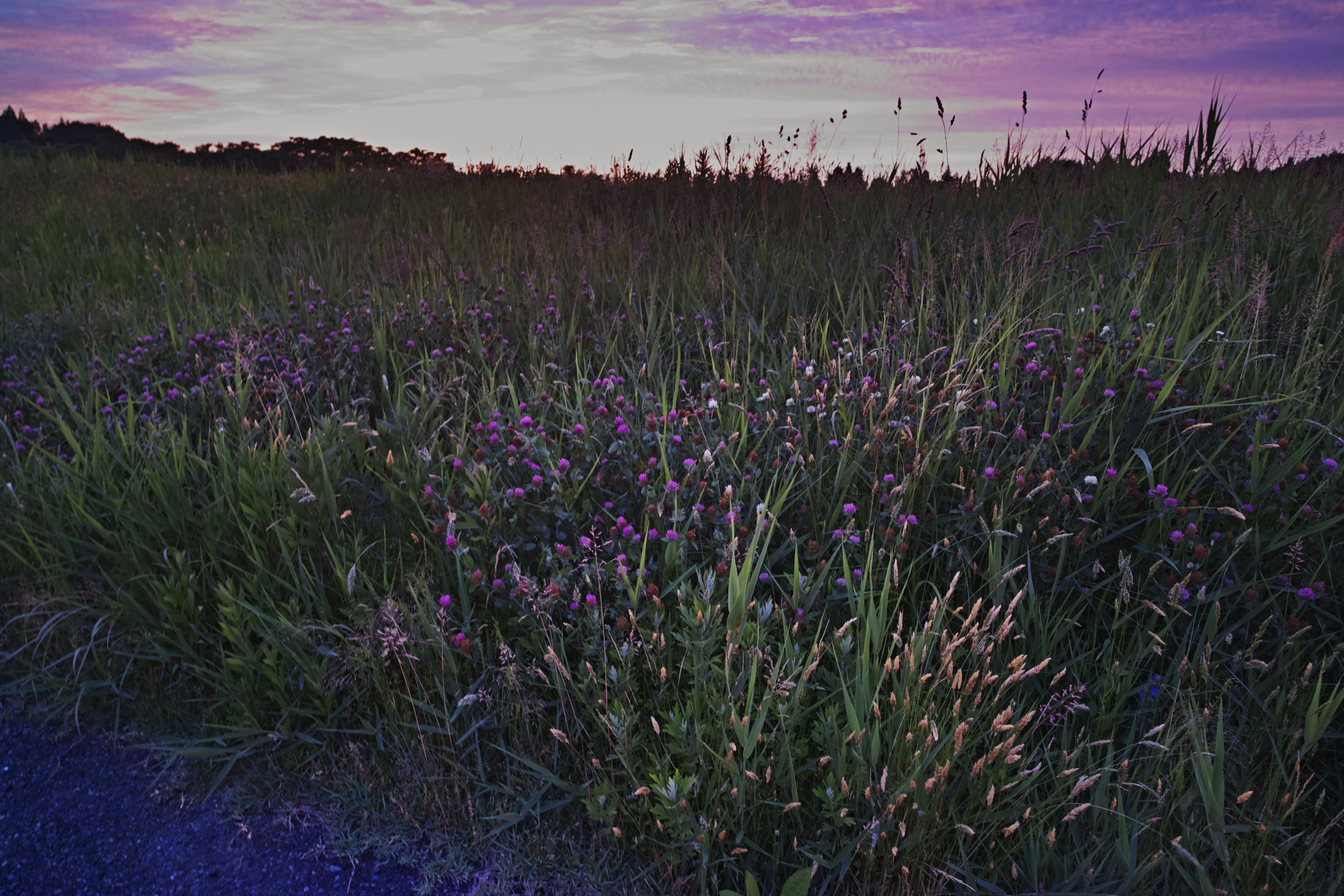 編集していたら紫色の空になって 花の色と相まったので。