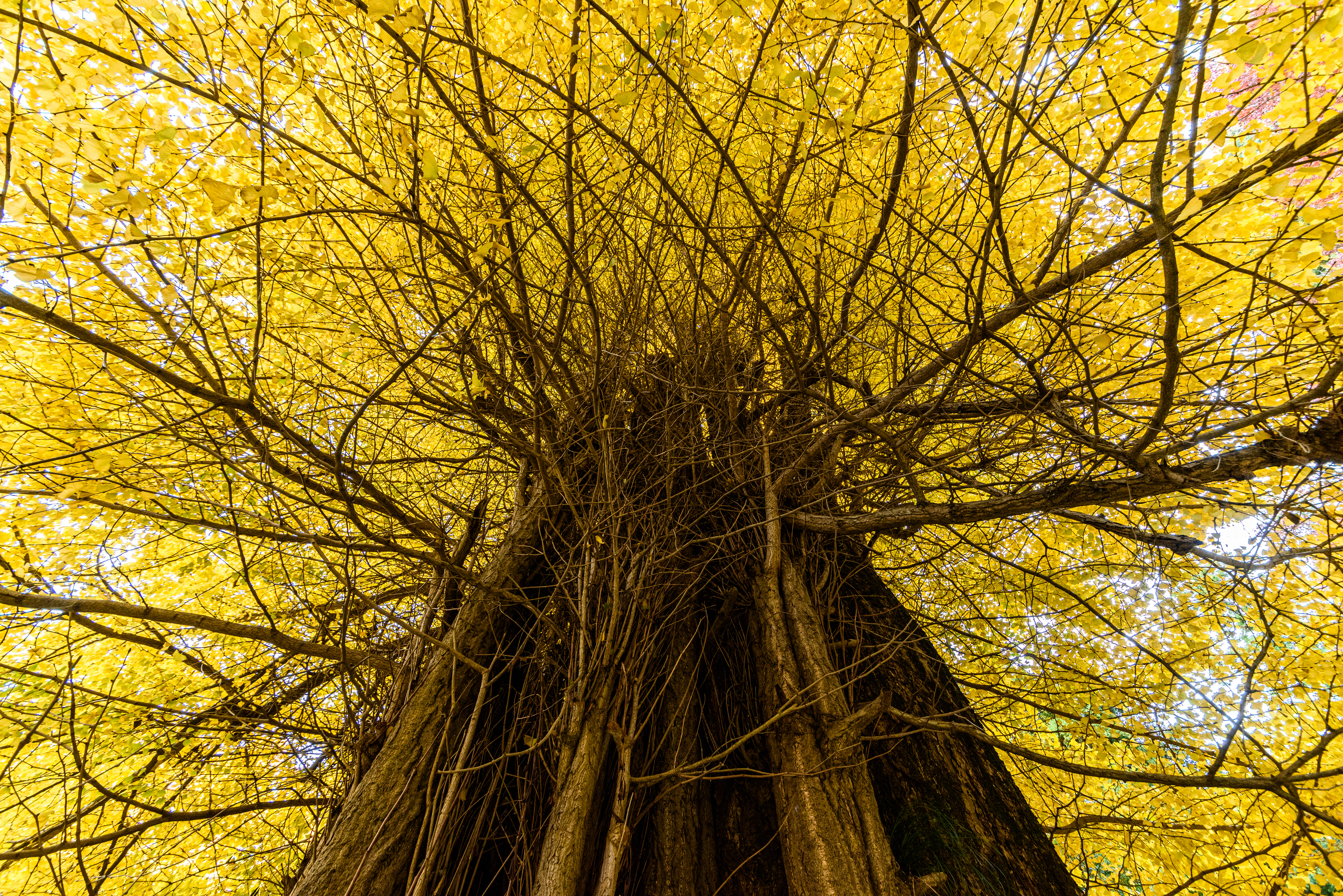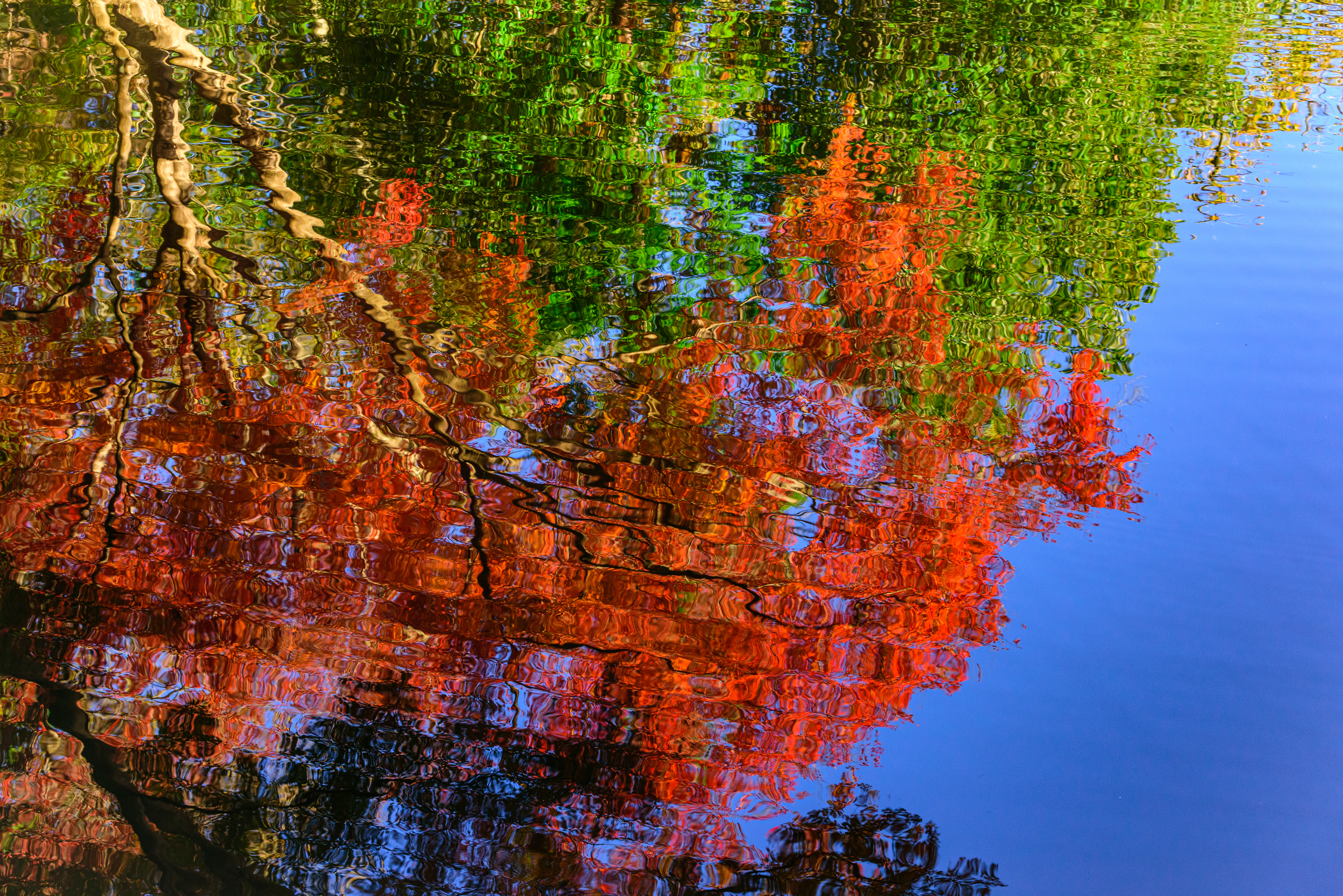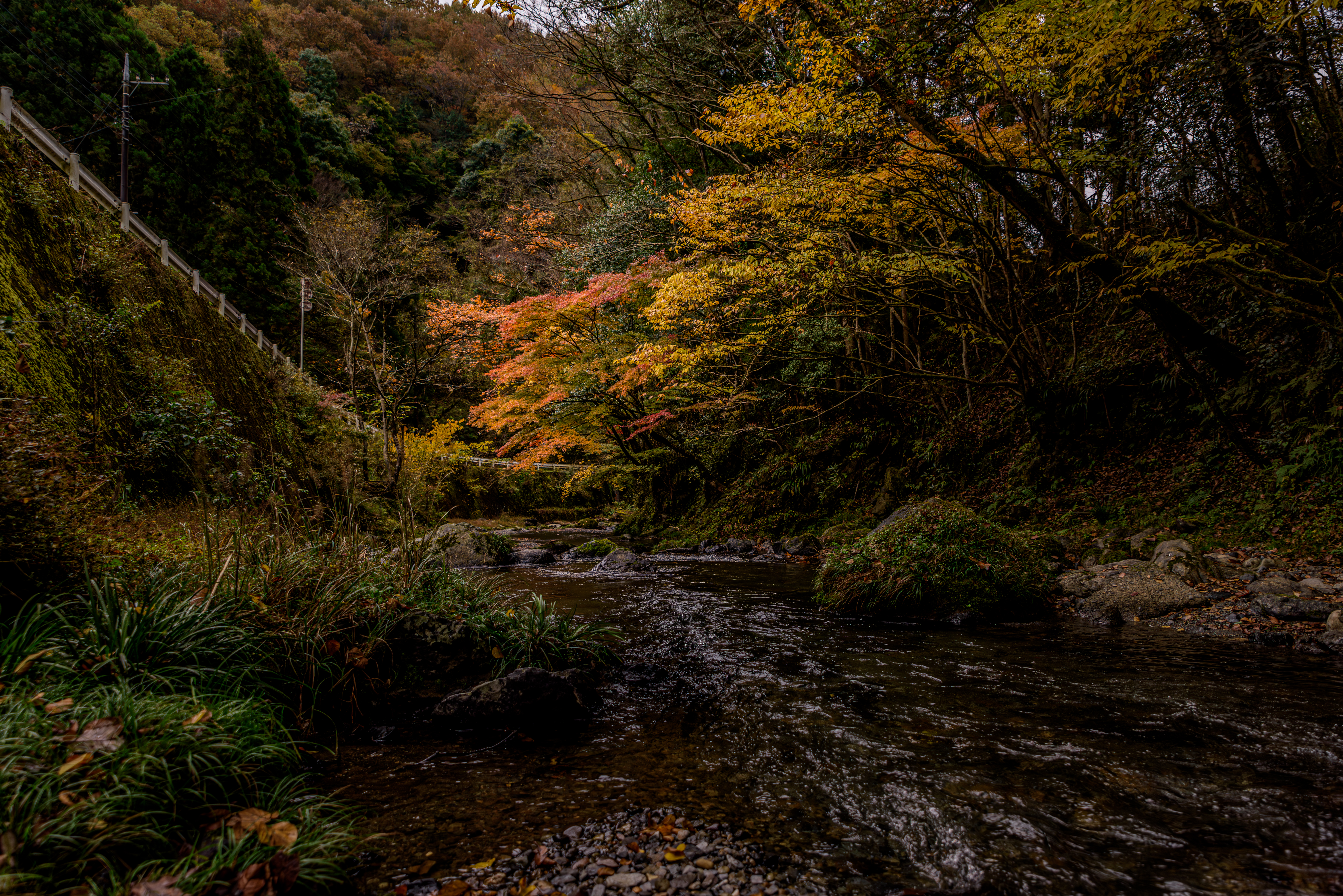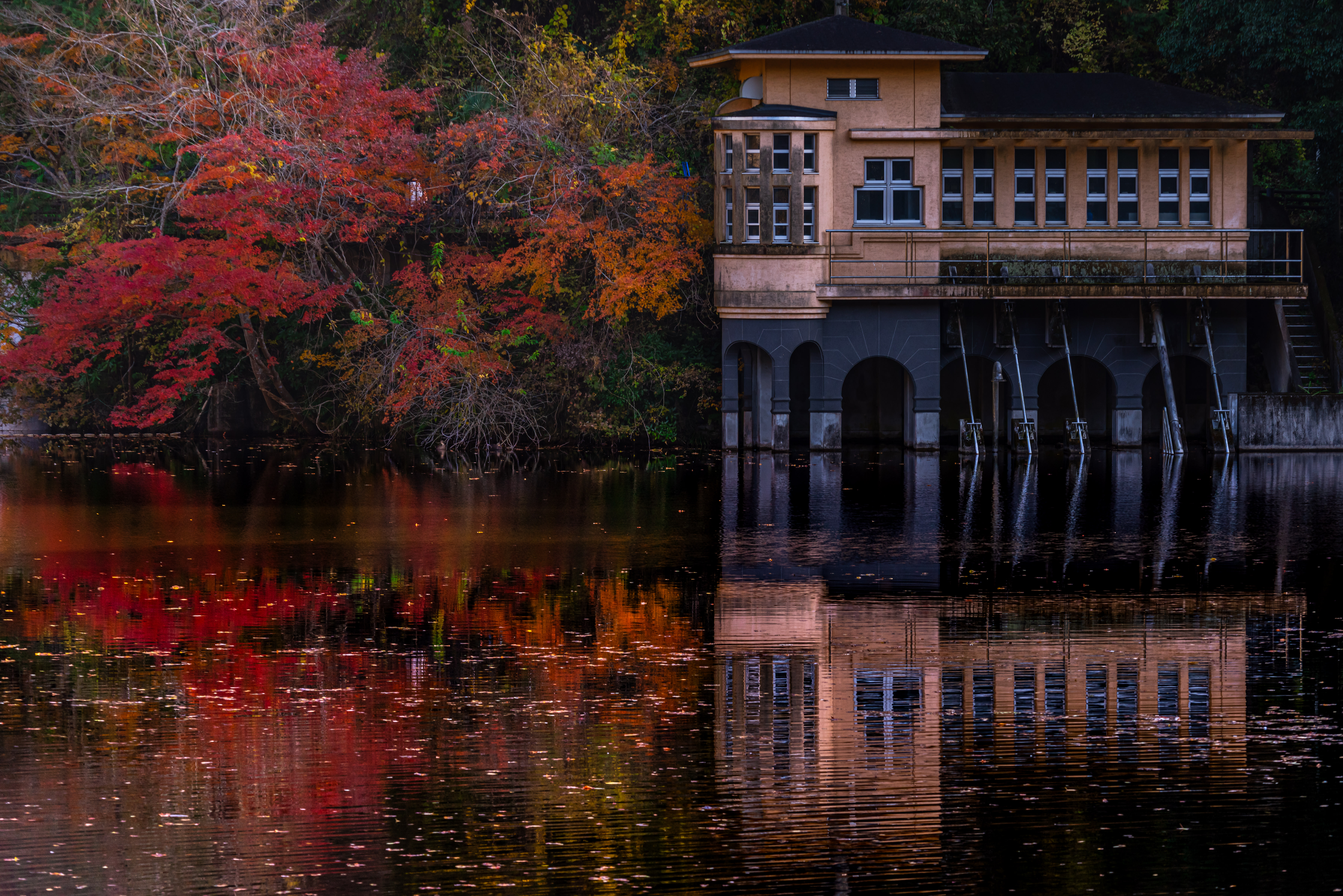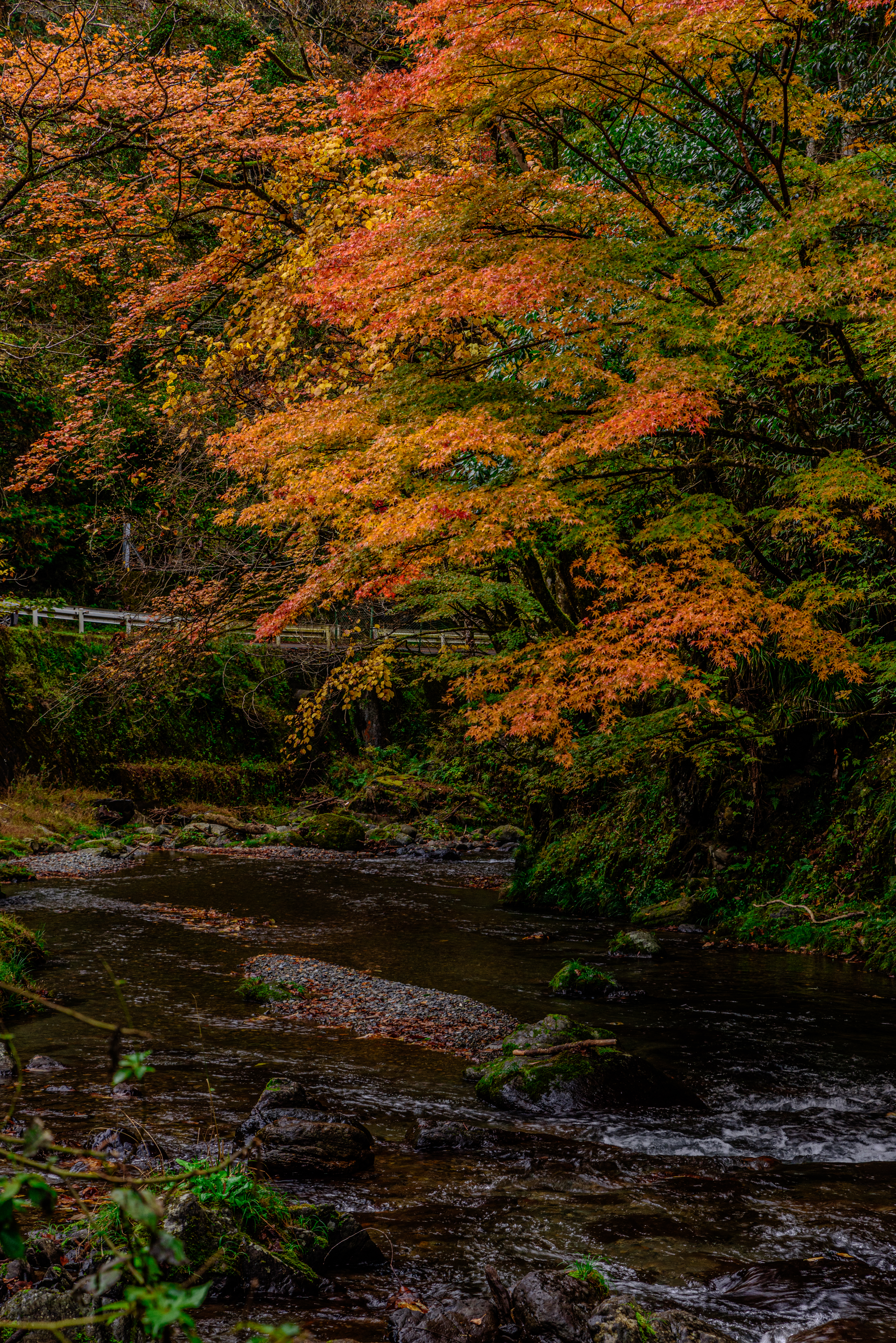 色づいた葉に惹かれてカメラを向けたら玉ボケのともしびを発見。