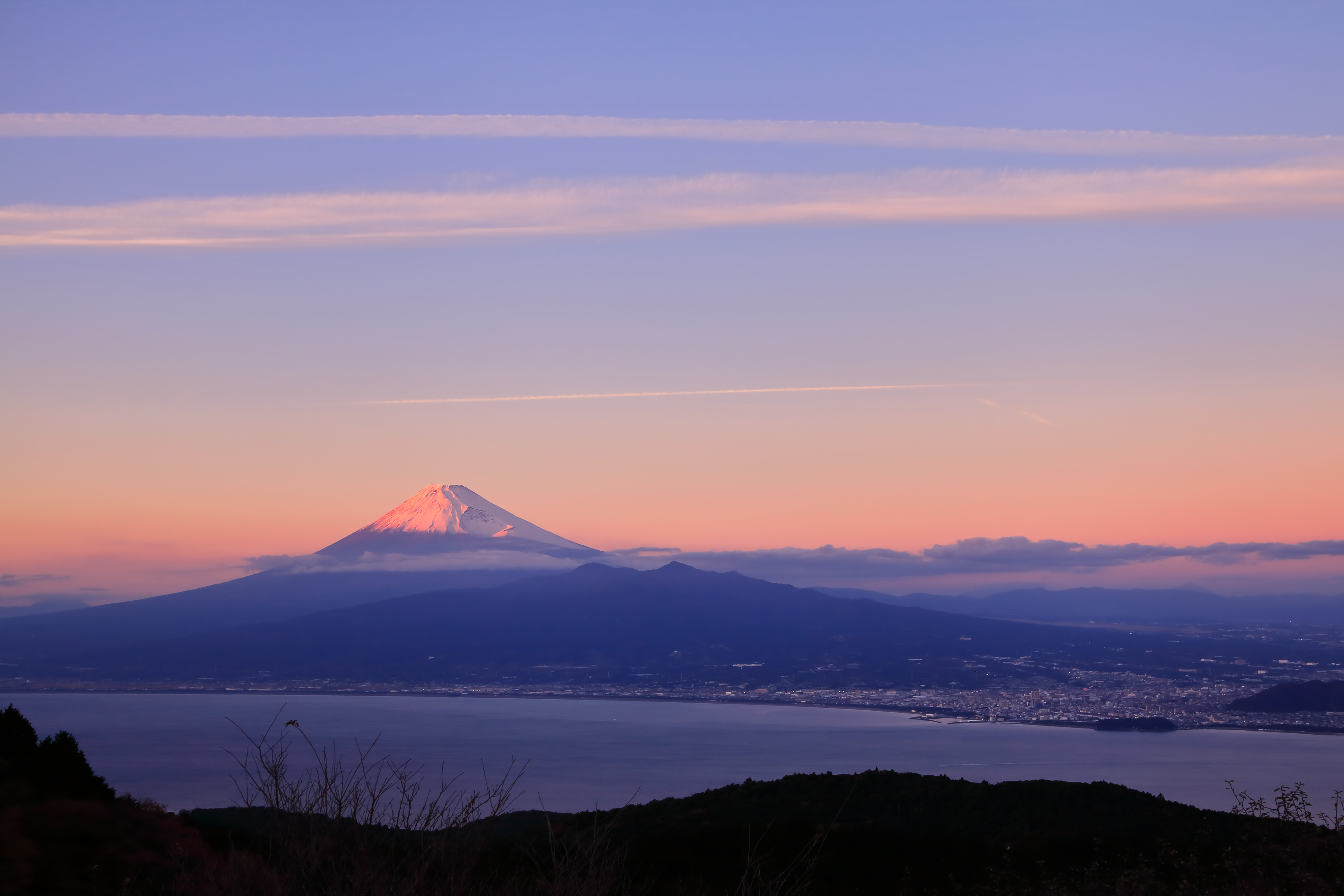 日中富士山をすっぽりと覆っていた厚い雲が夕刻には綺麗に晴れました。富士山の天気は不思議です。