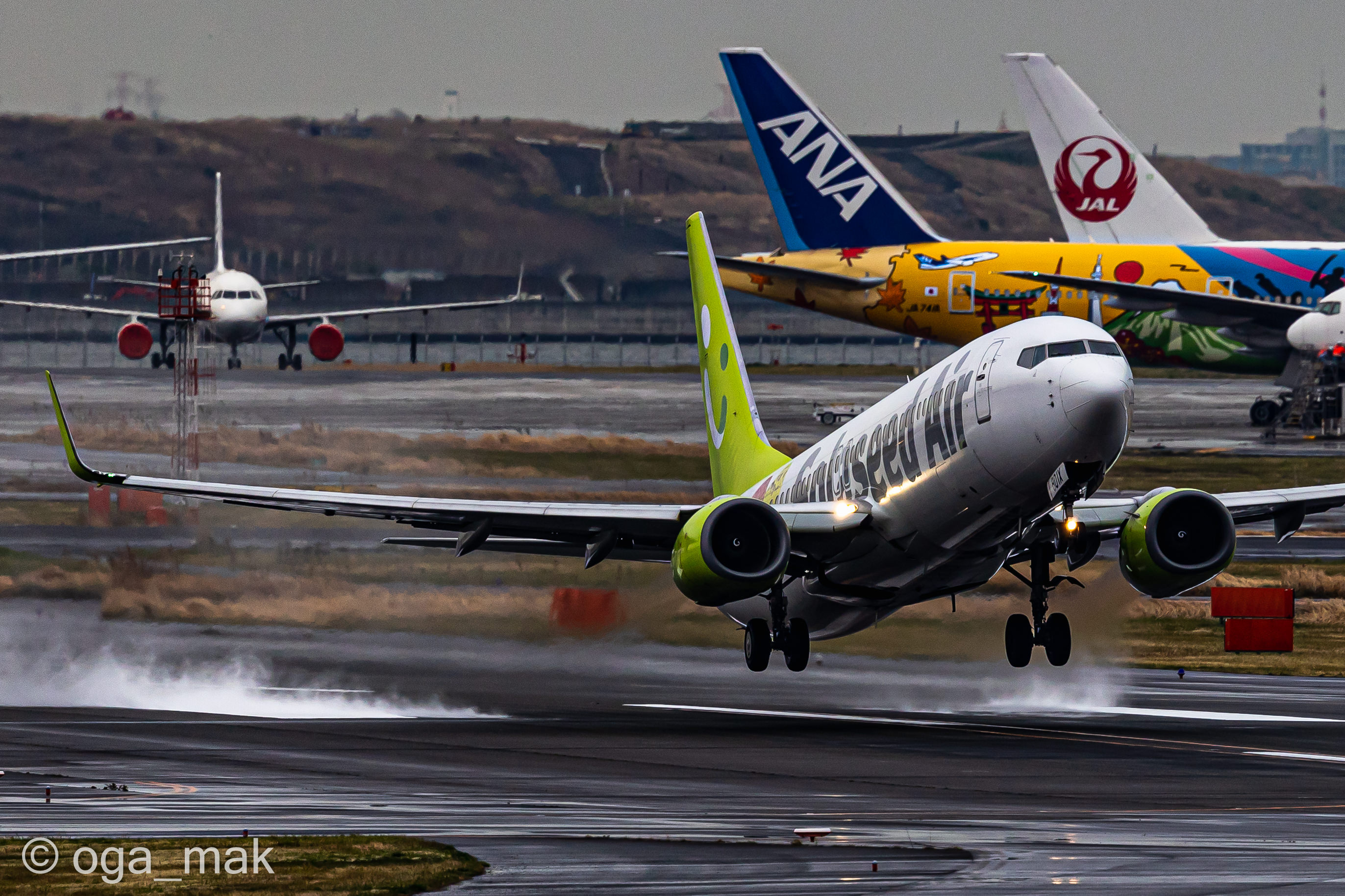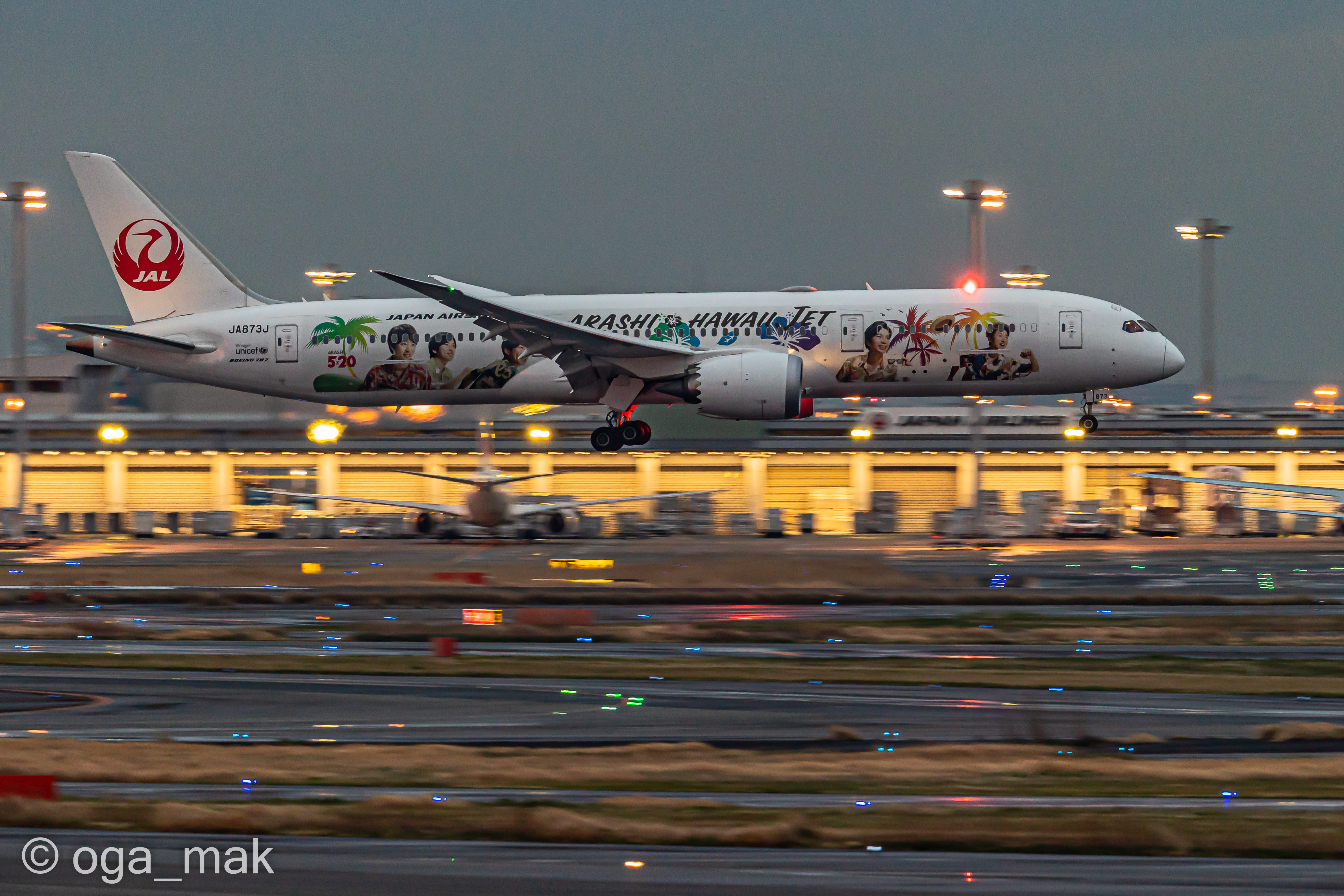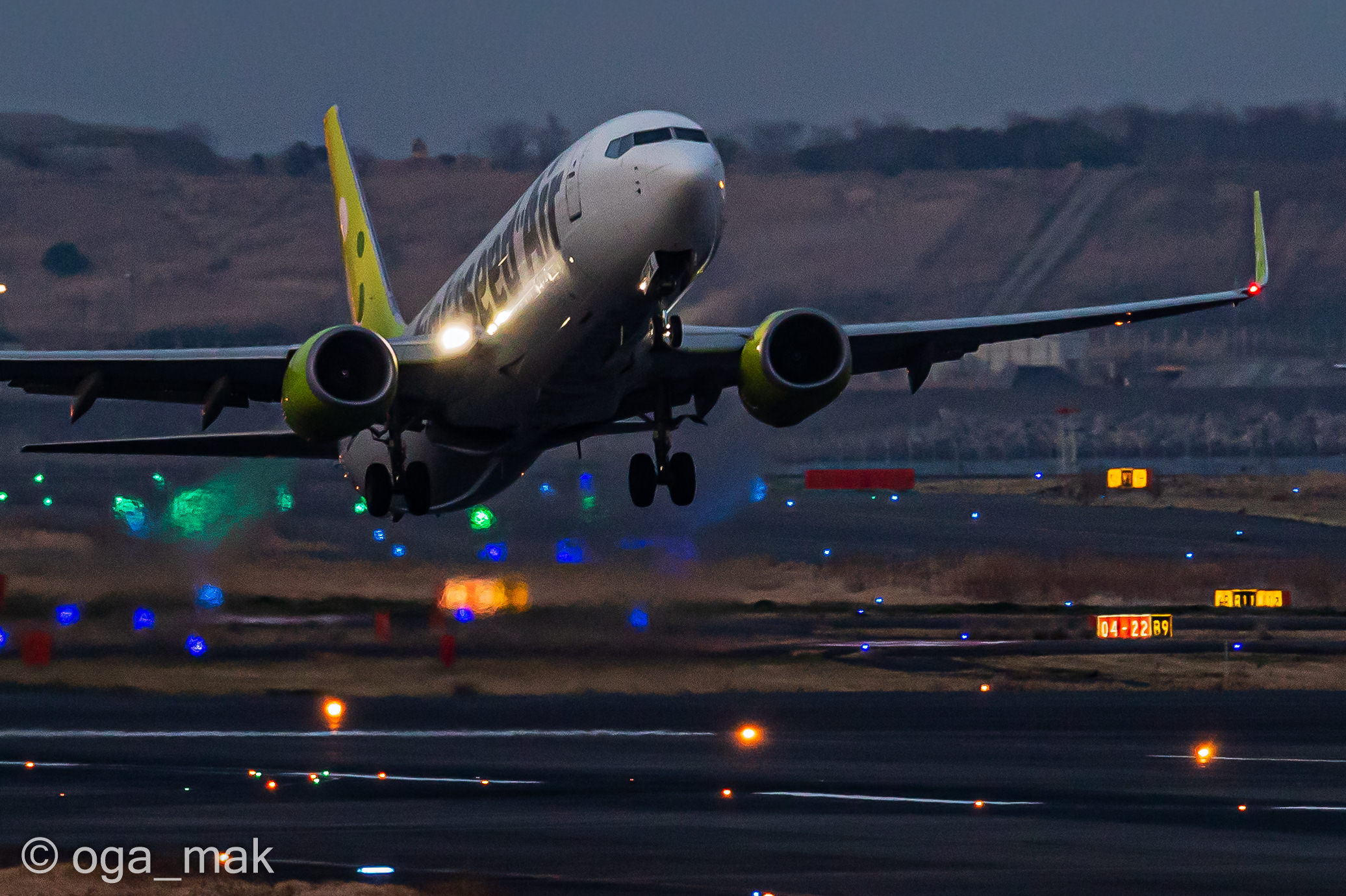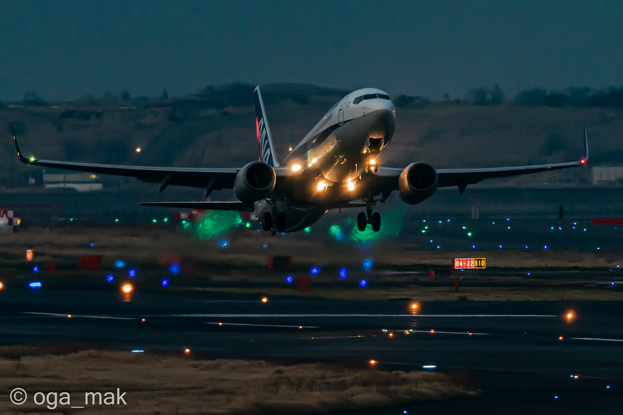 Landing on RWY22 ~ 日没後、B滑走路に降り立った北京からの到着便。暗いんだけど雰囲気だけでも(^_^;)