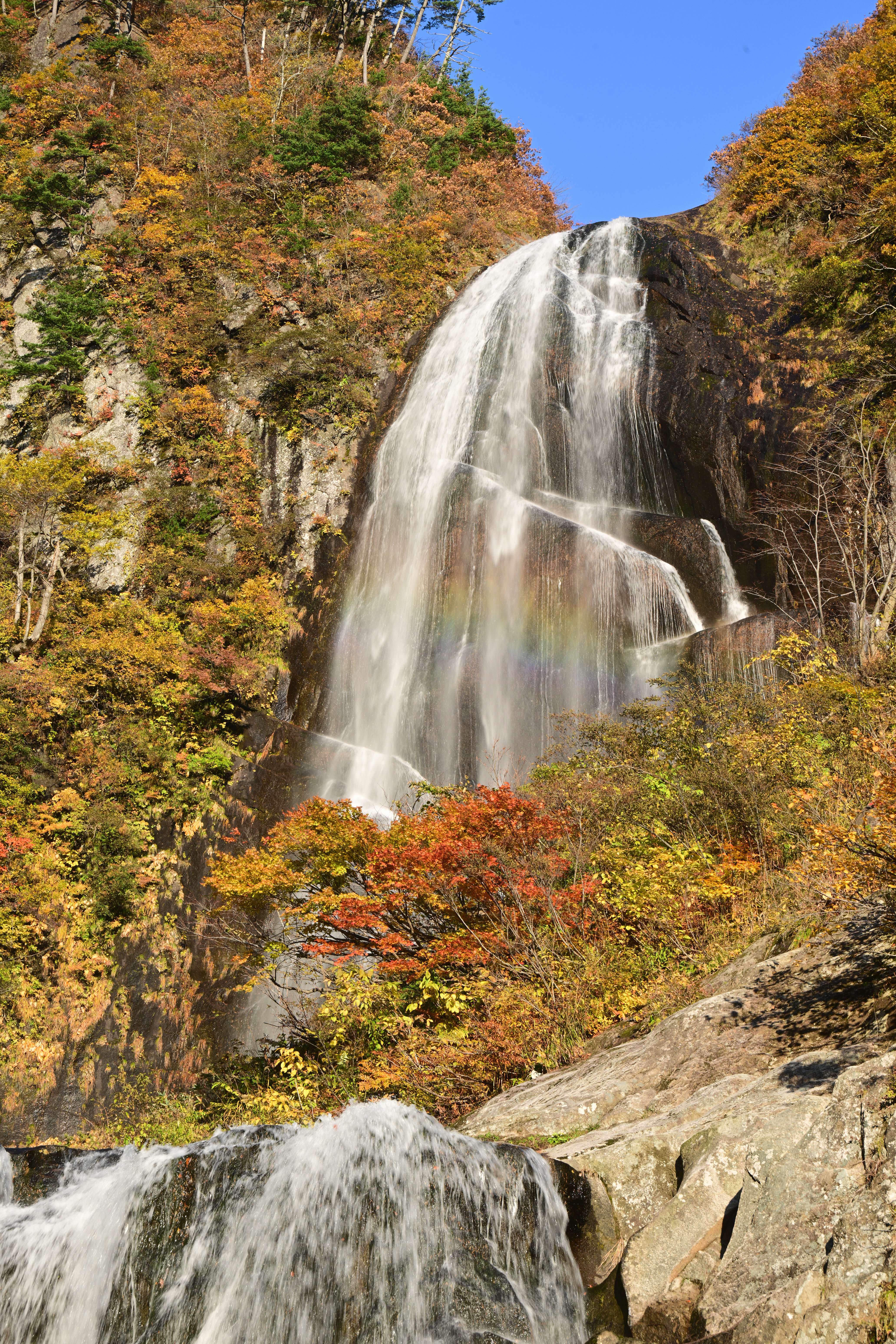 紅葉の見頃を迎えた大内宿、秋の美しい風景