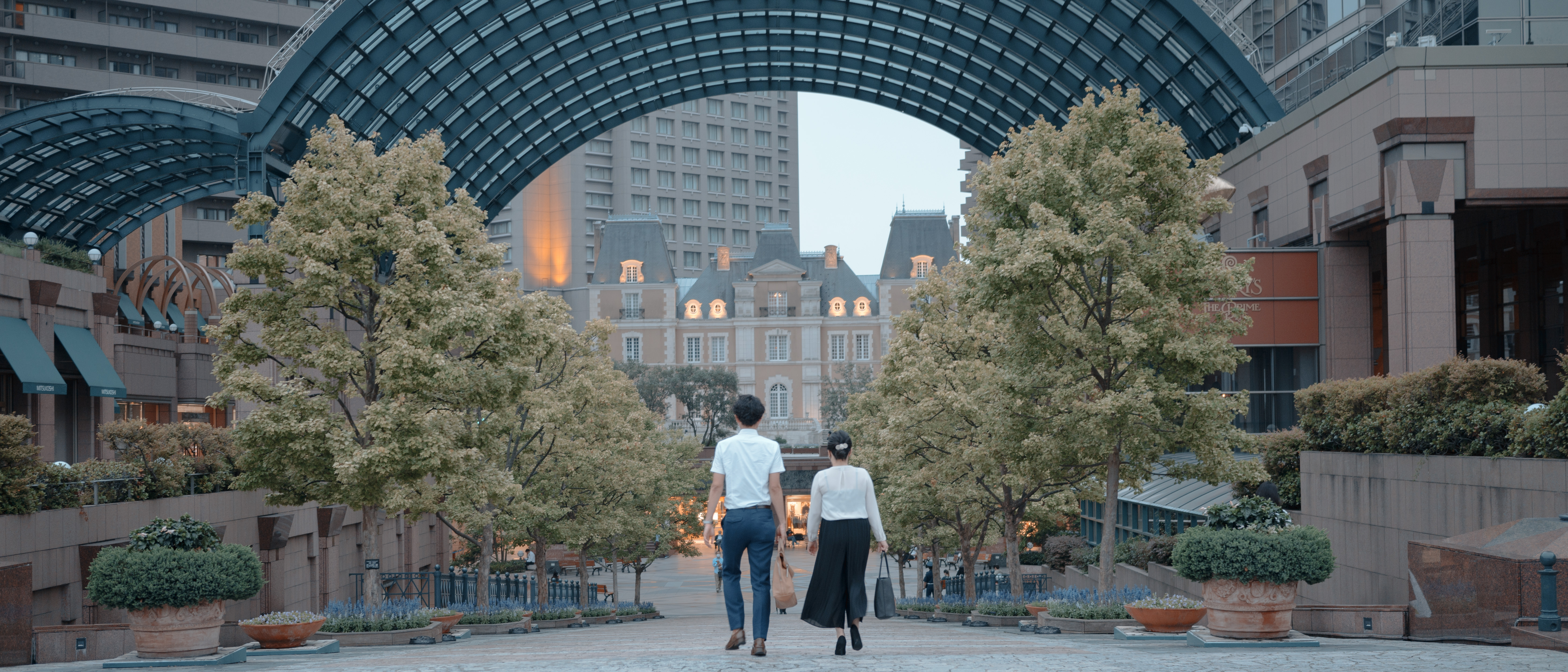 恵比寿ガーデンプレイスで歩く男女を撮影