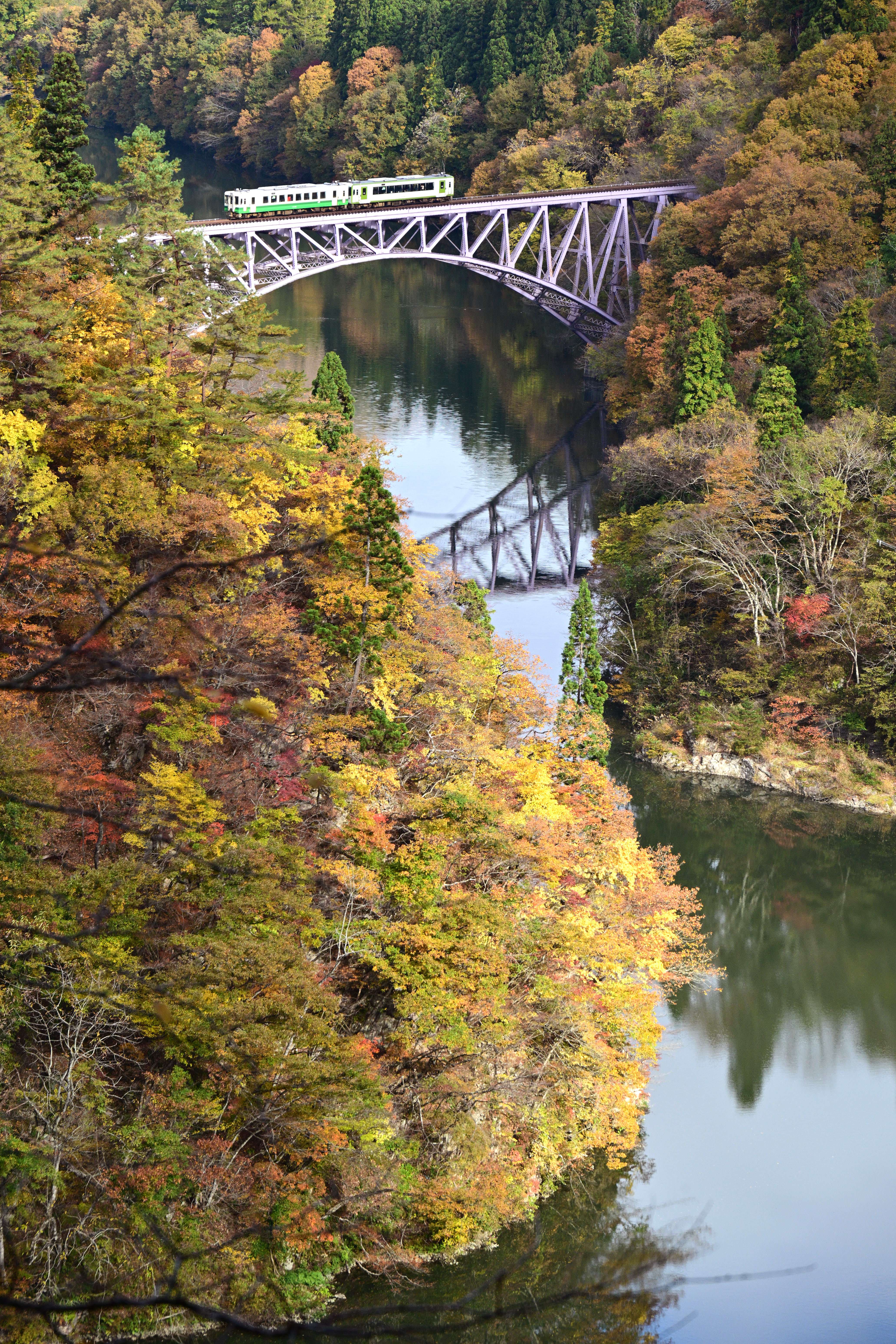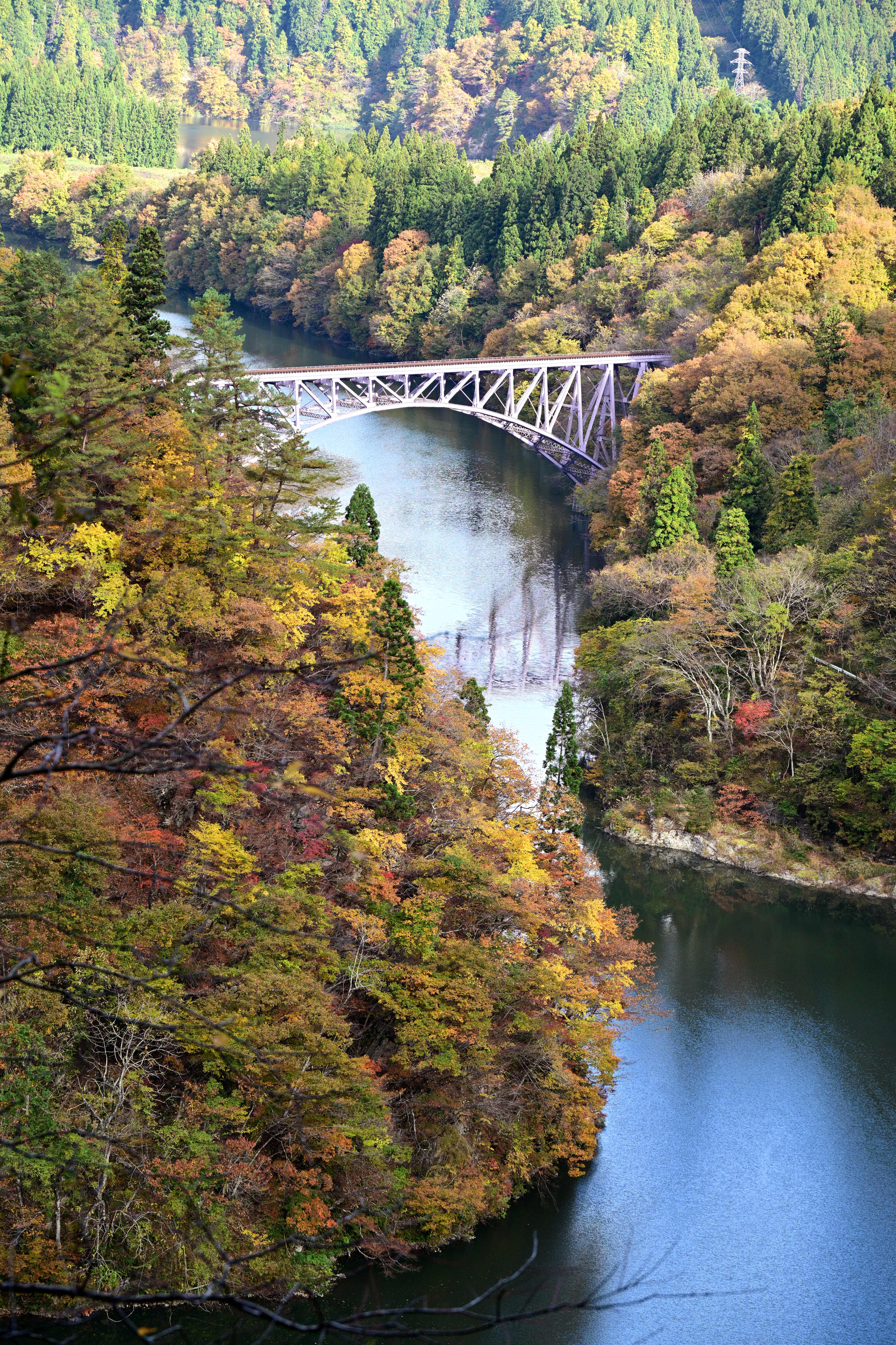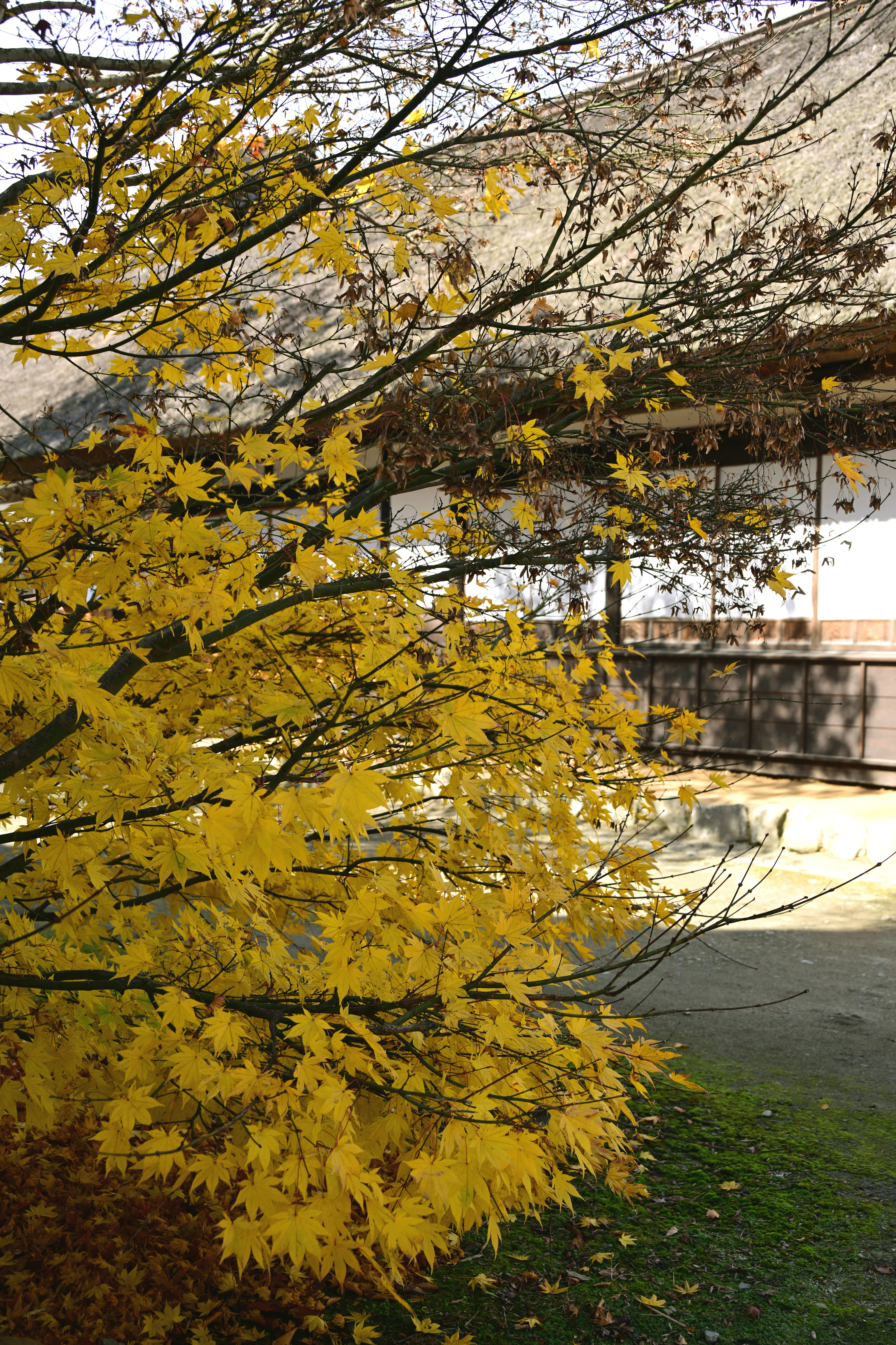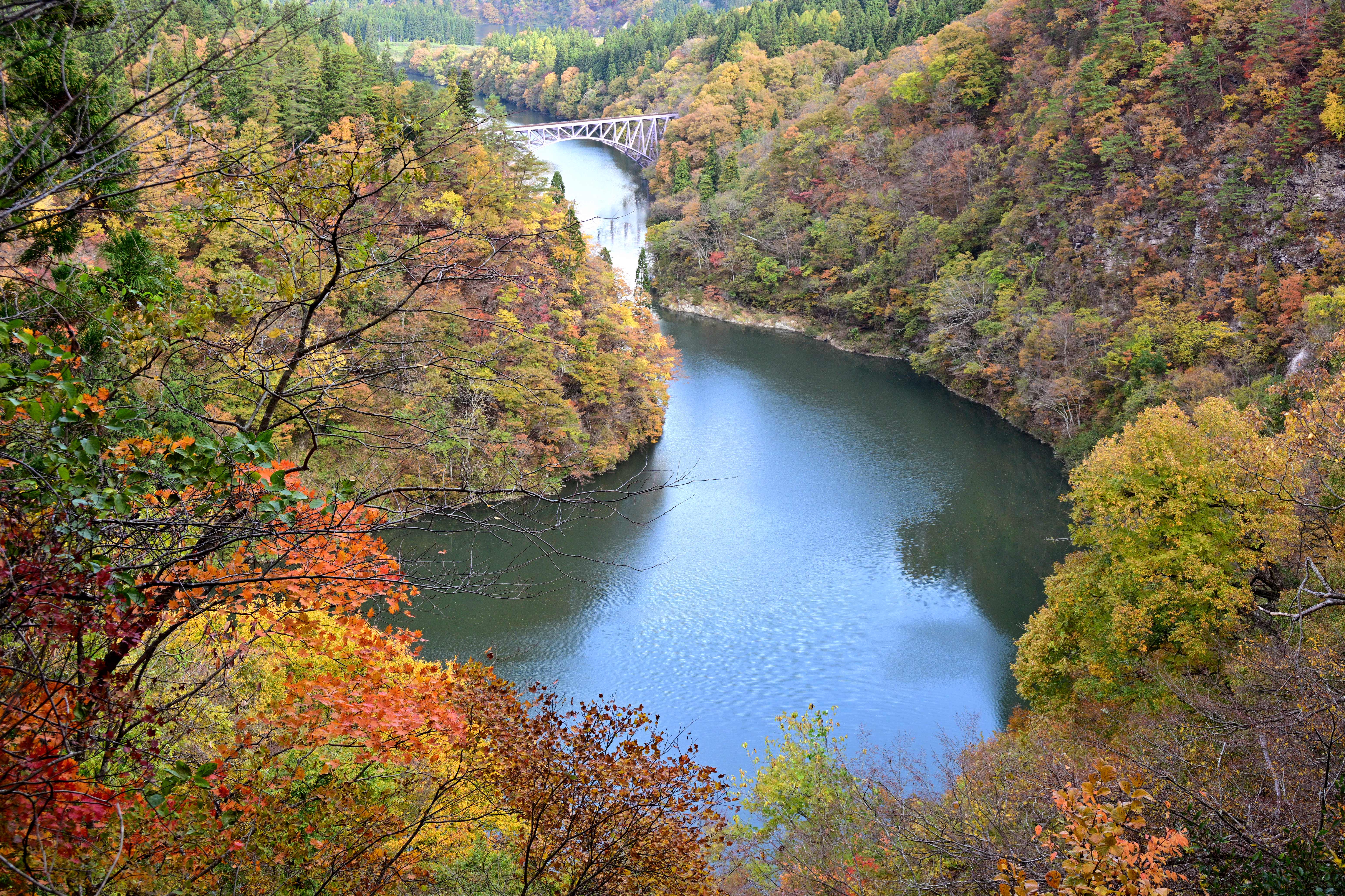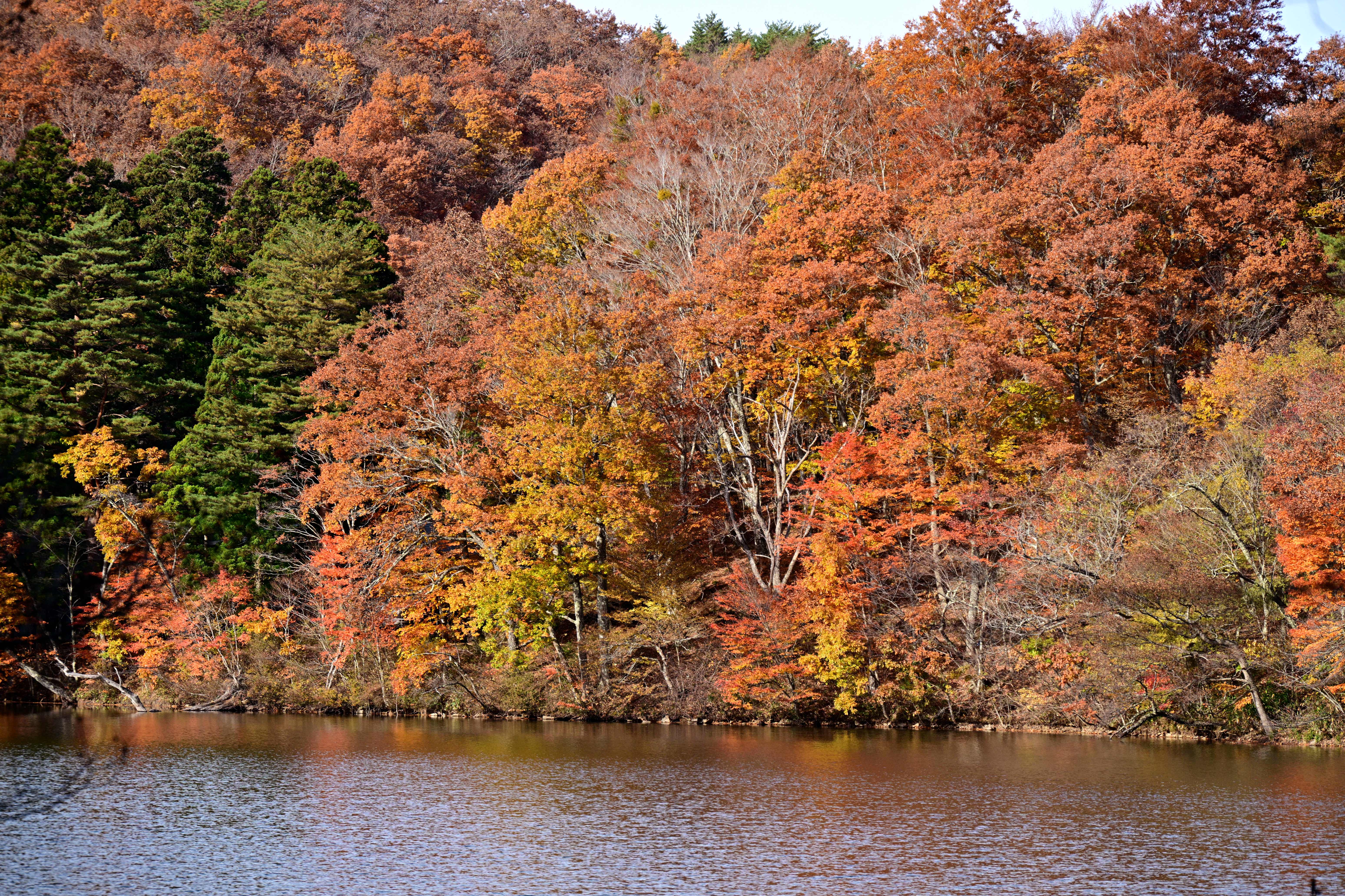 紅葉の見頃を迎えた大内宿、秋の美しい風景