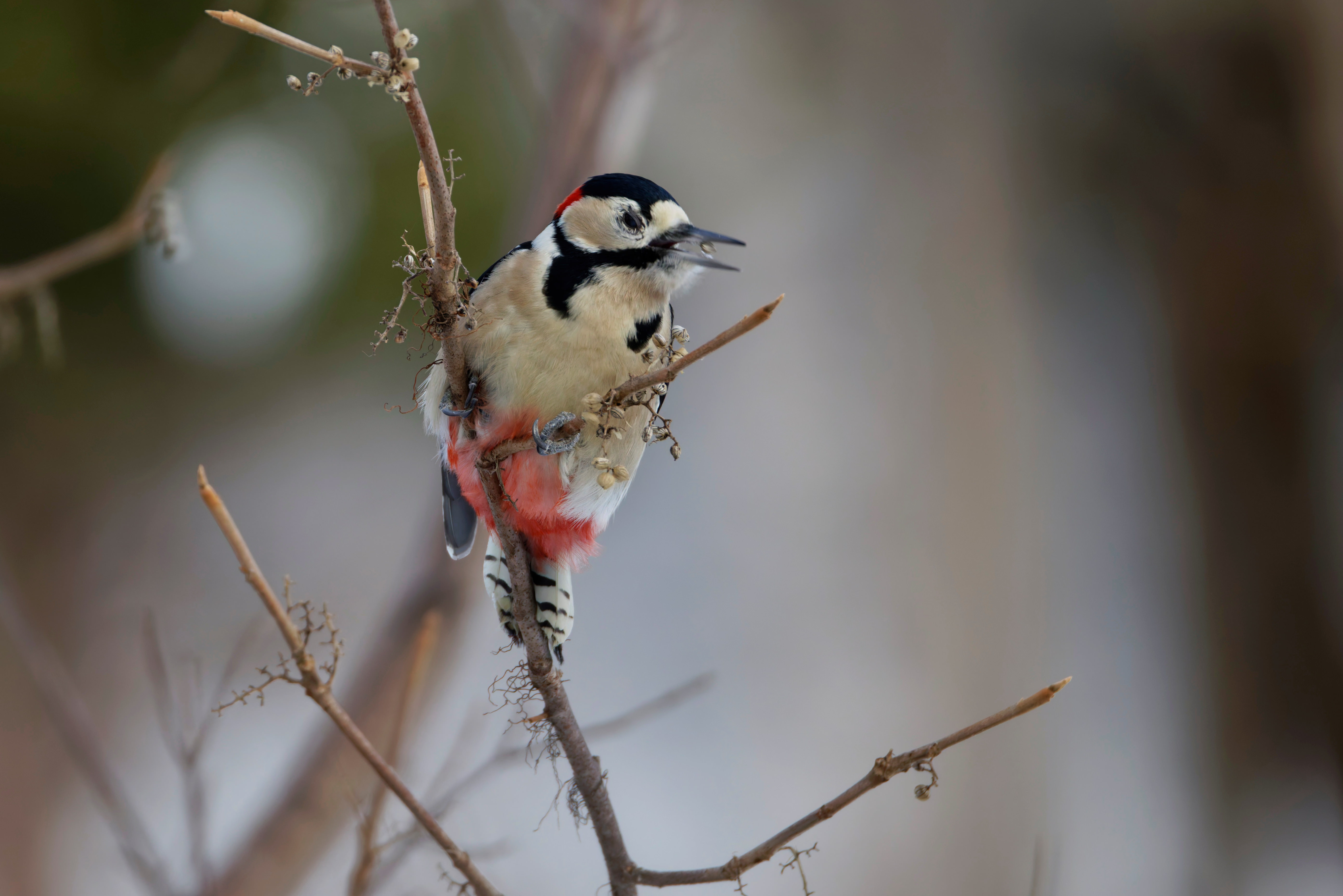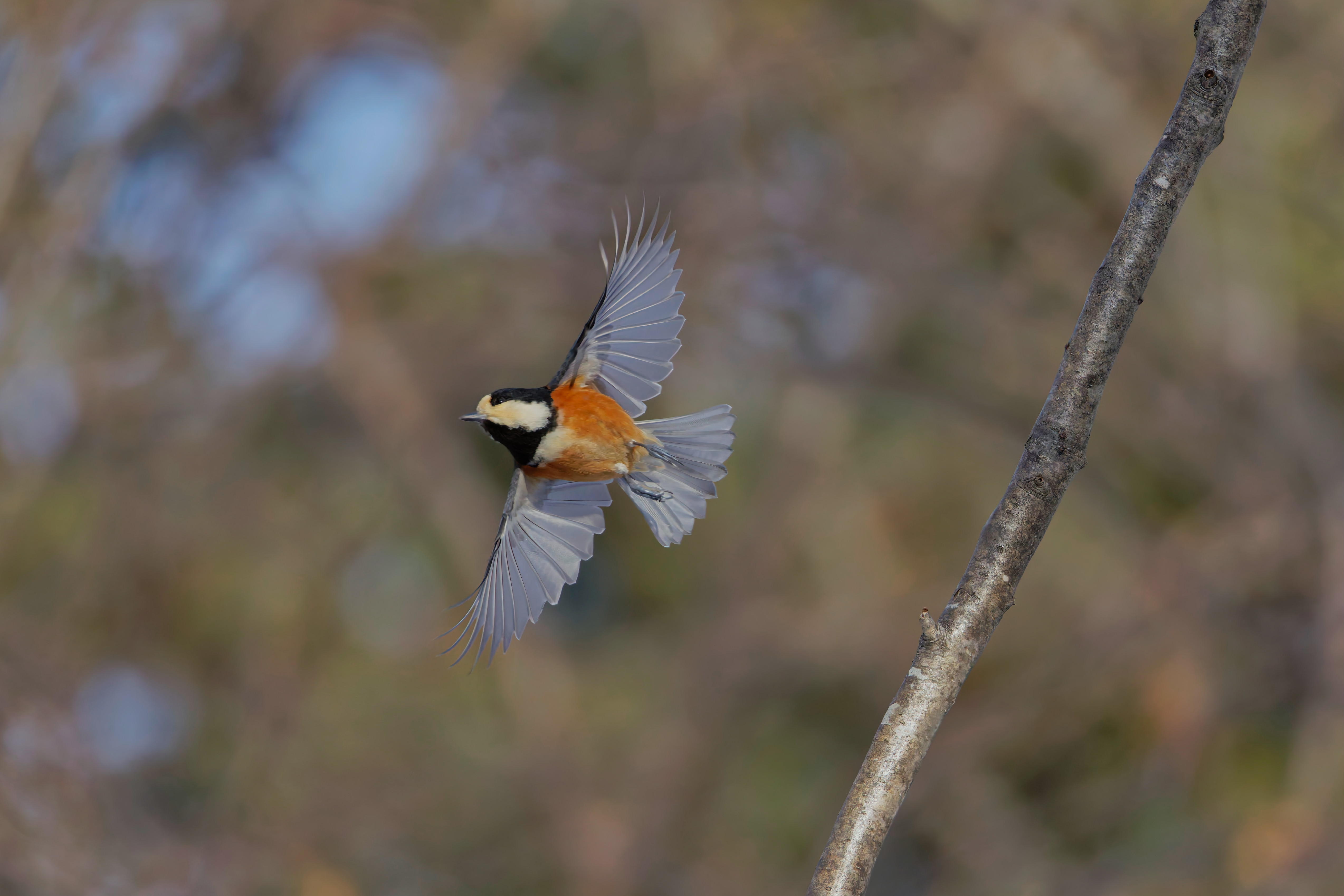 朝、突然声が聞こえたと思ったら、近くの枝にとまってました。撮影している後ろでも声が聞こえてましたが動くと飛ぶと思い確認できませんでしたが、散歩の人がきて飛んでしまいましたが、かなり眺めていられました。