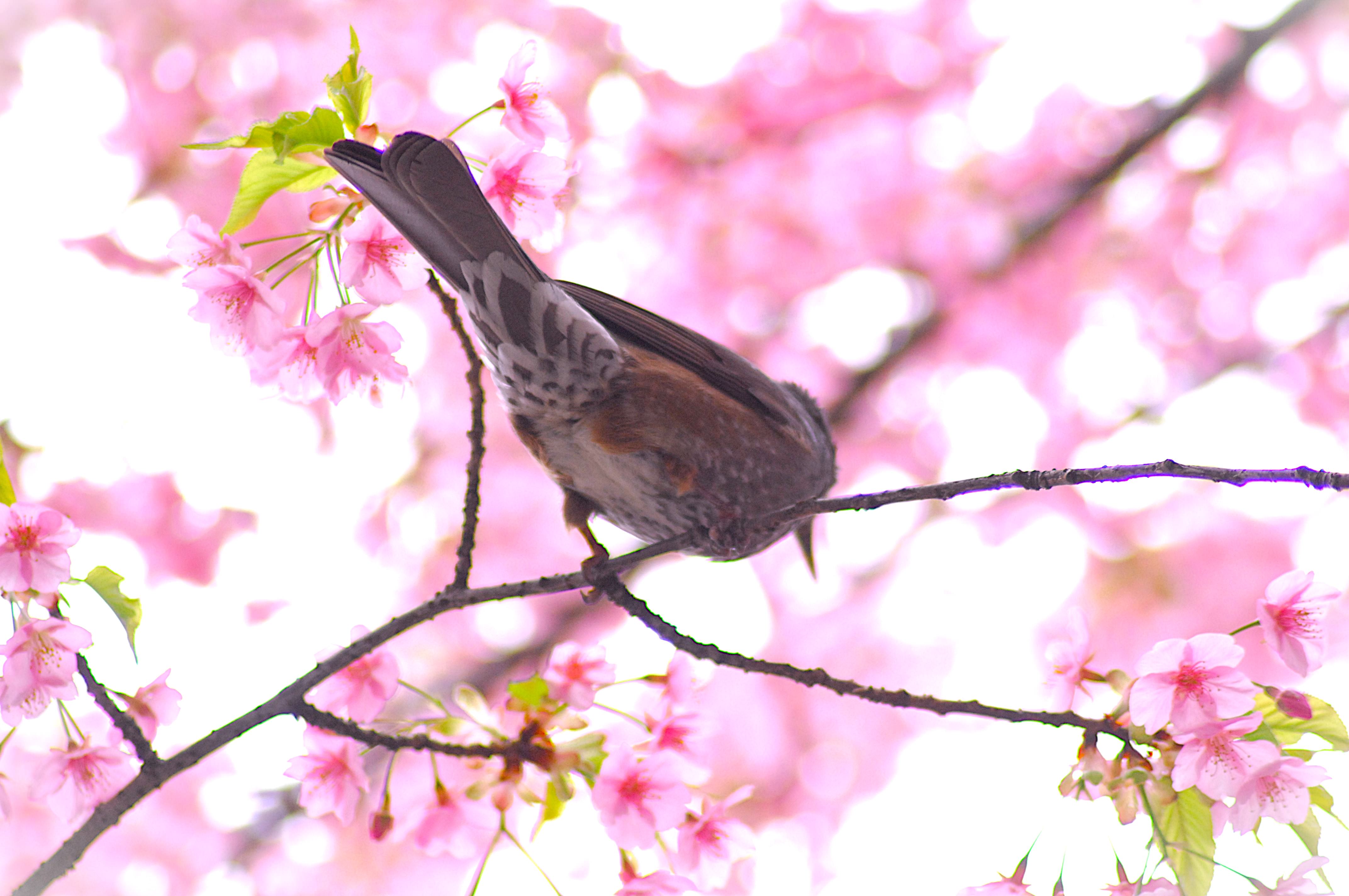 上野公園では早くも寒緋桜で