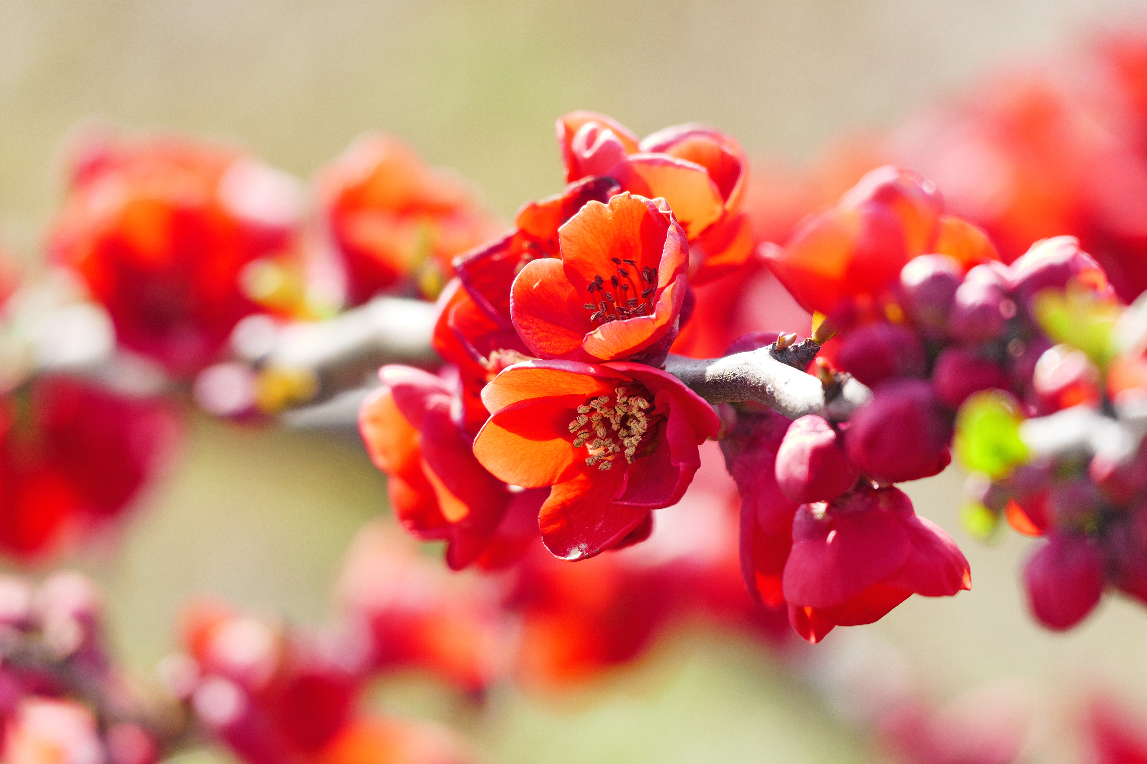 冬の終わりから春にかけて、葉が出る前に鮮やかな紅色の花を咲かせています。