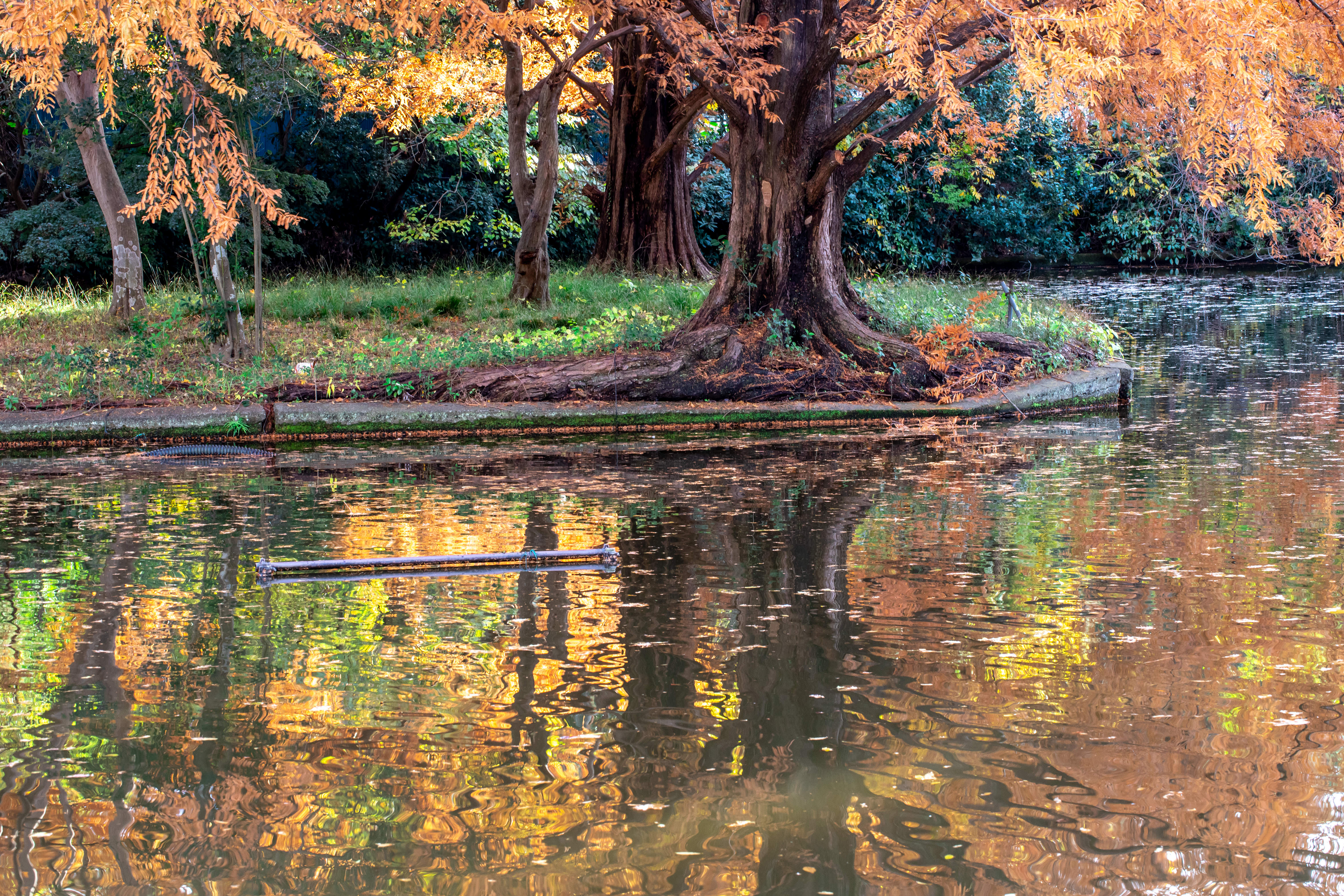公園の池が秋色に染まって綺麗だったので撮影しました。