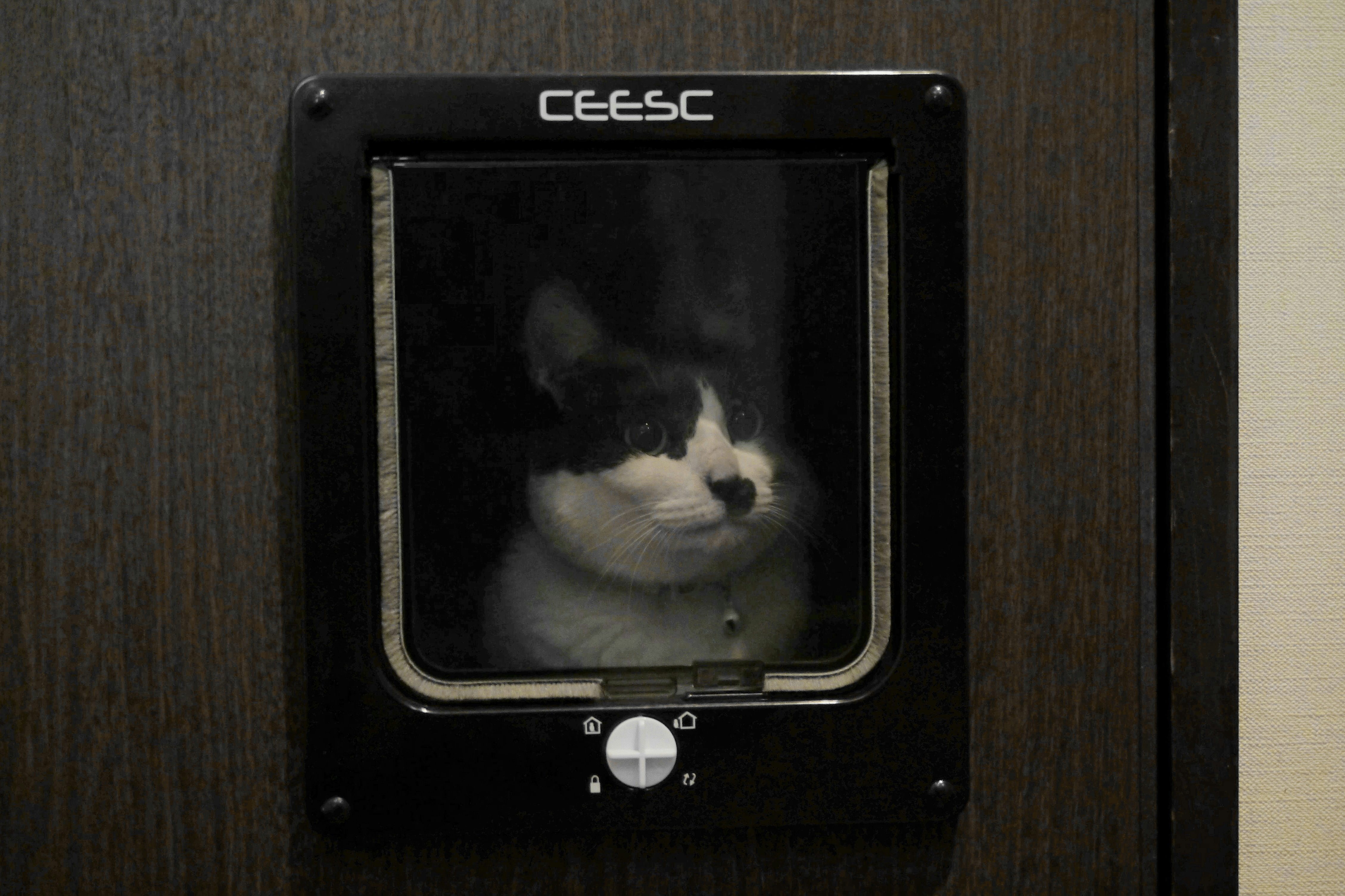最近ようやくキャットドアを自在に出入りできるようになりました。