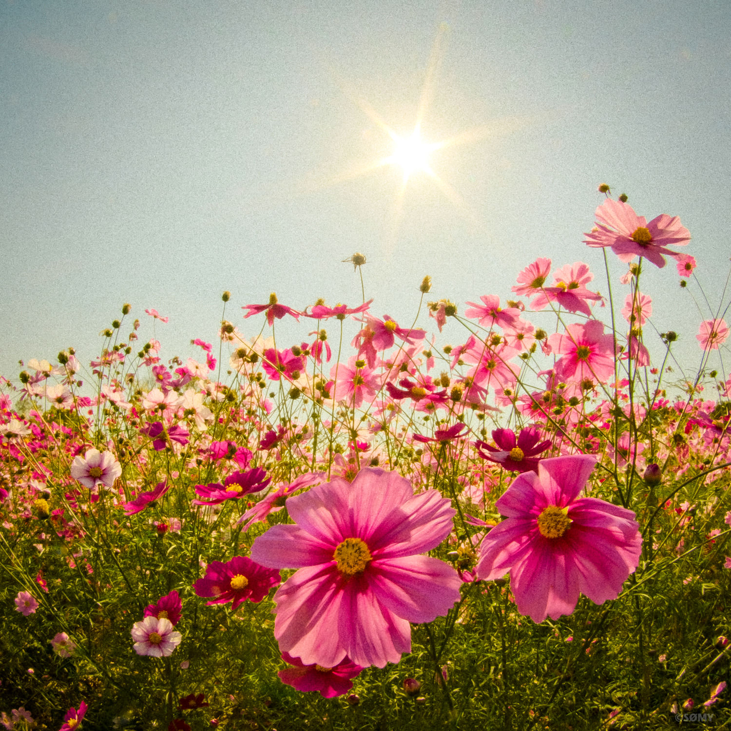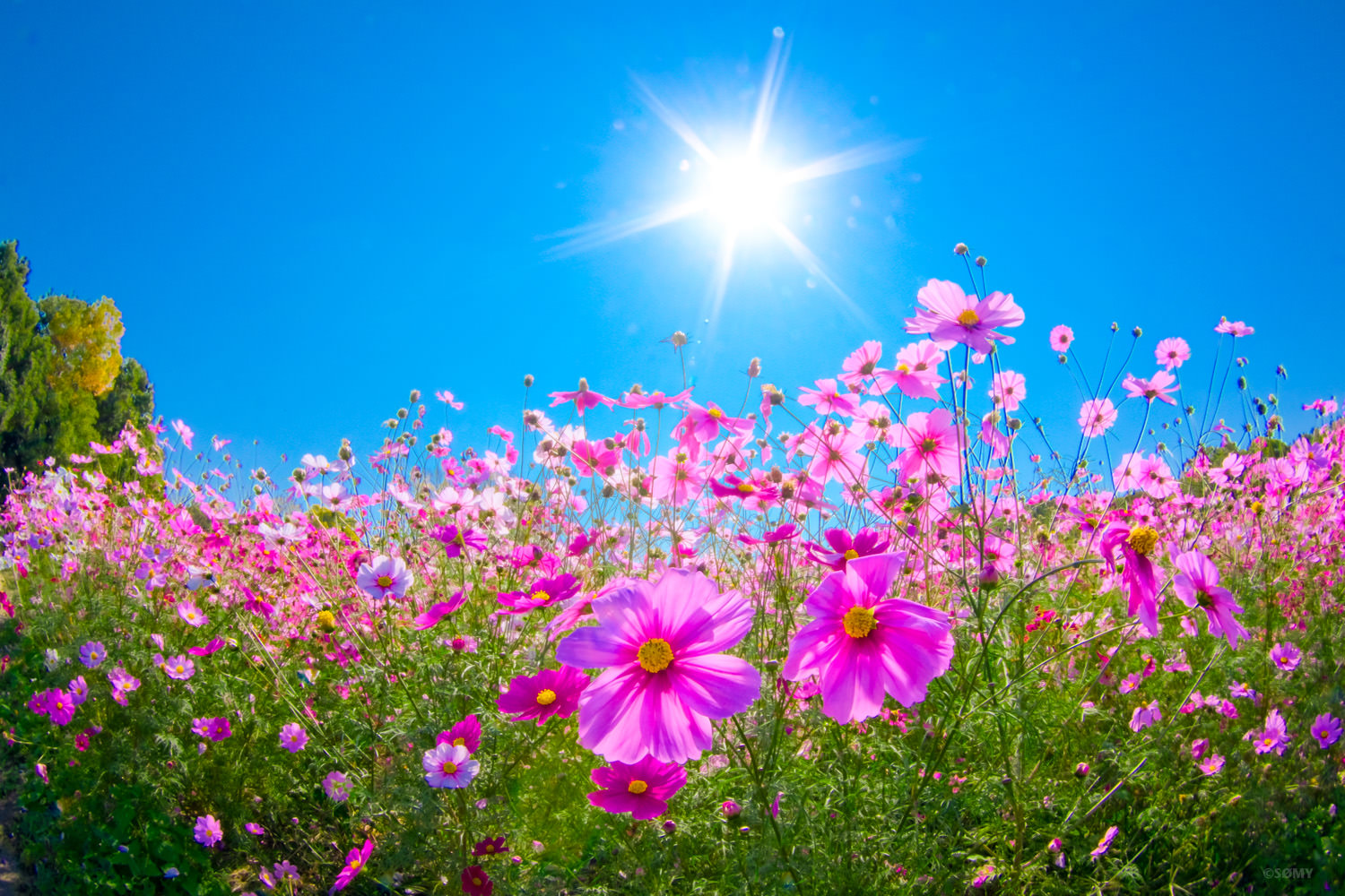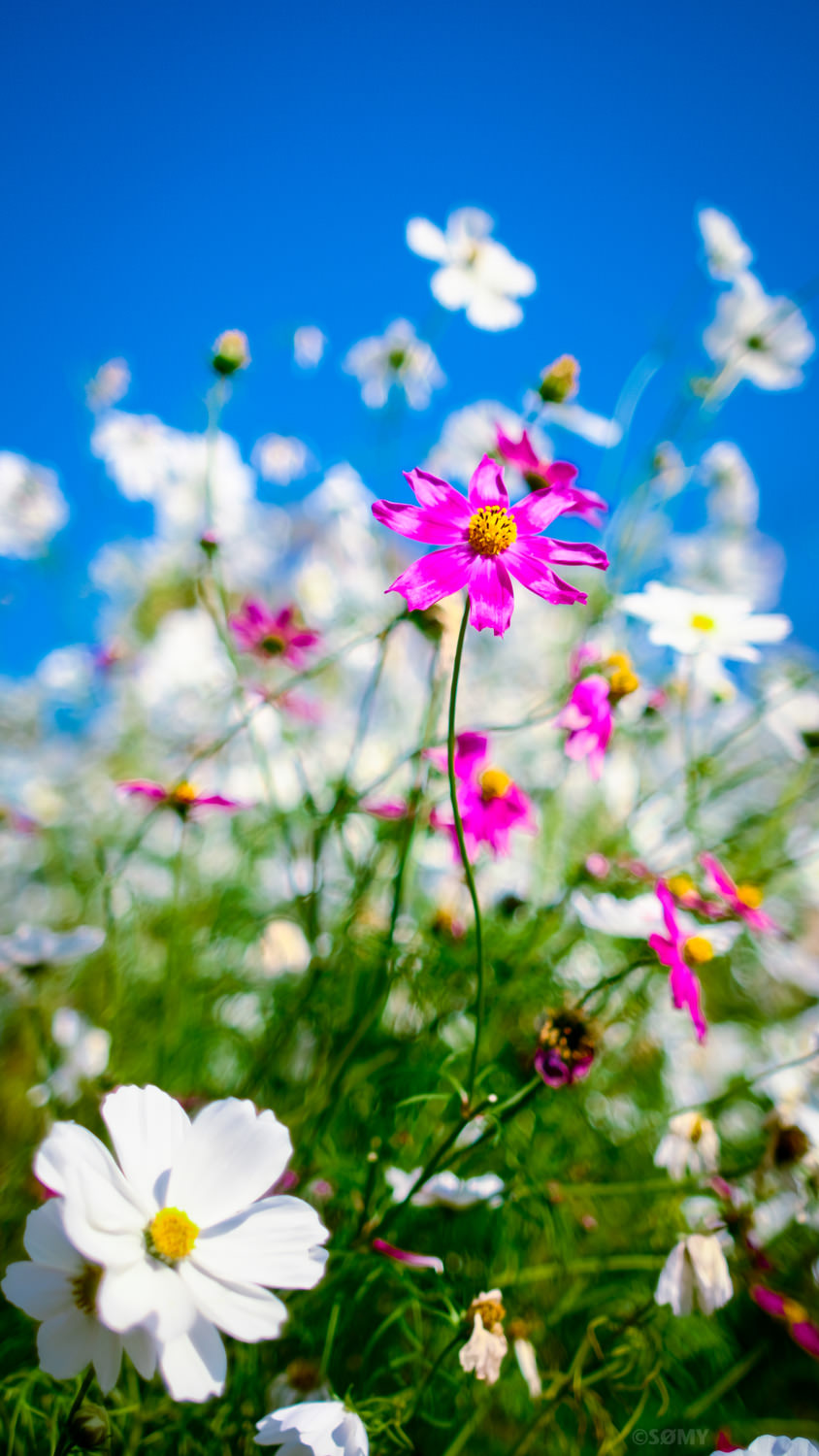 相棒の魚眼ズームで秋の花をお日様と一緒に。