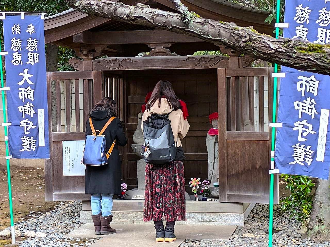 寛永寺の早咲き紅梅が境内を