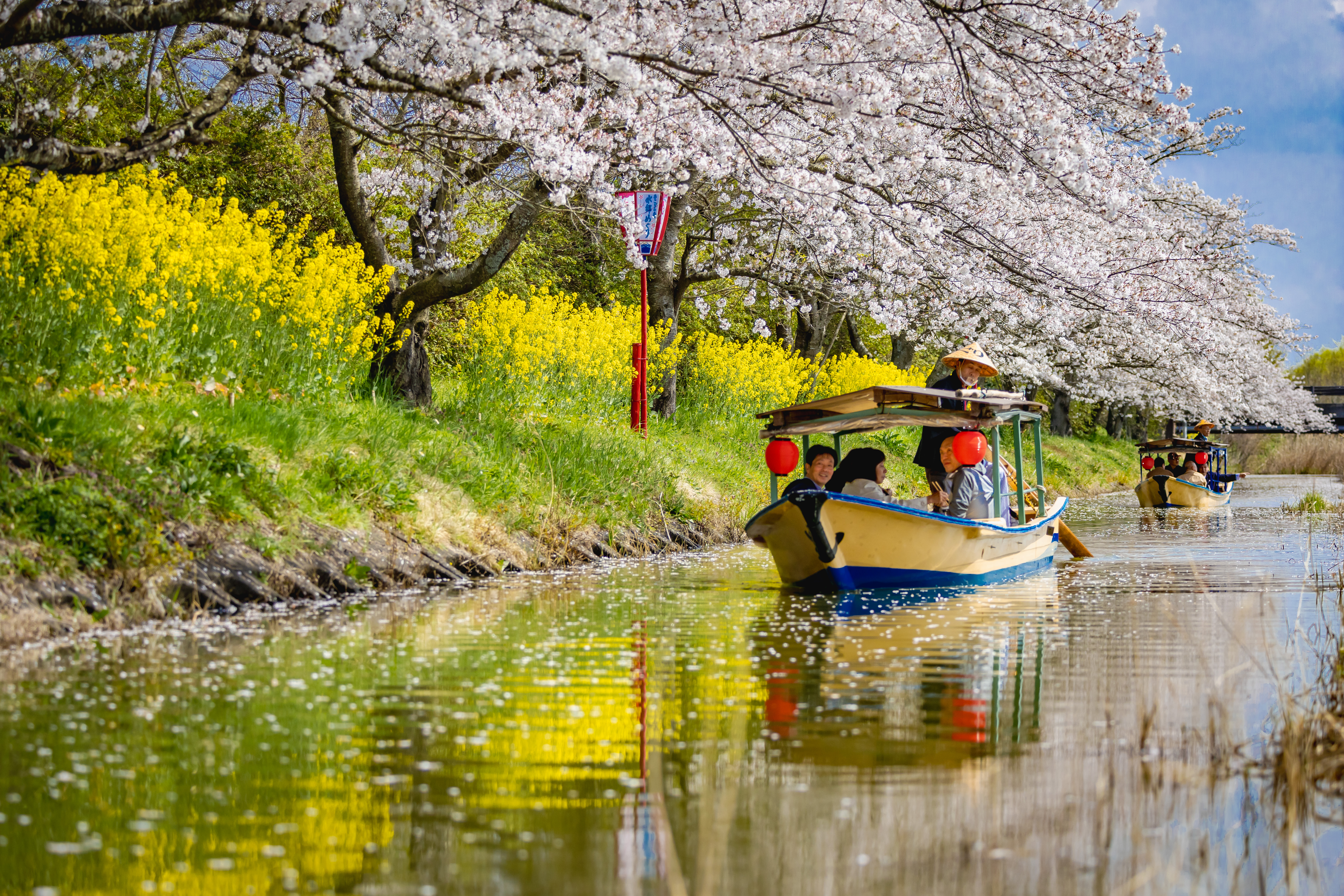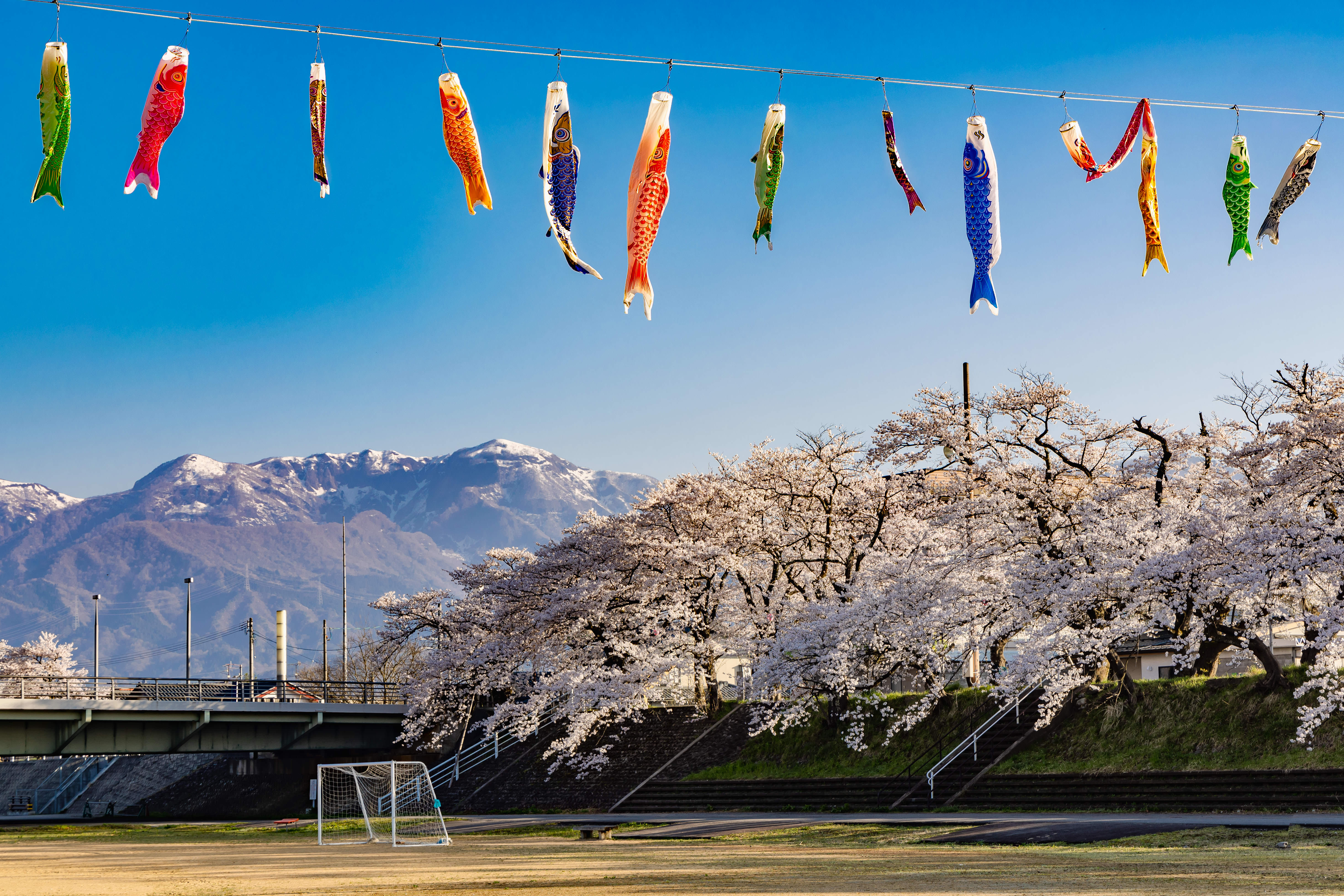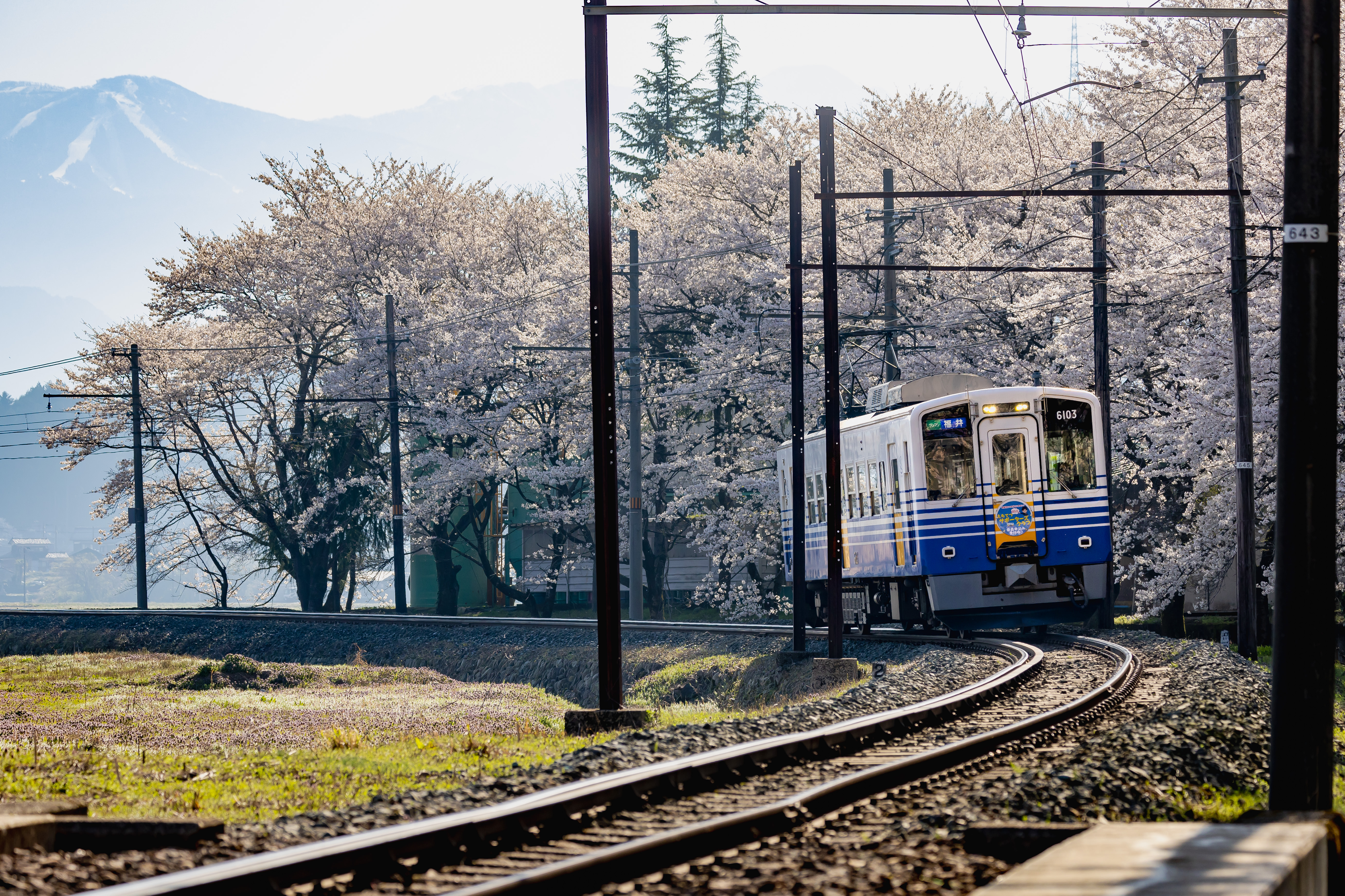 春の色と残雪のコントラストが美しい