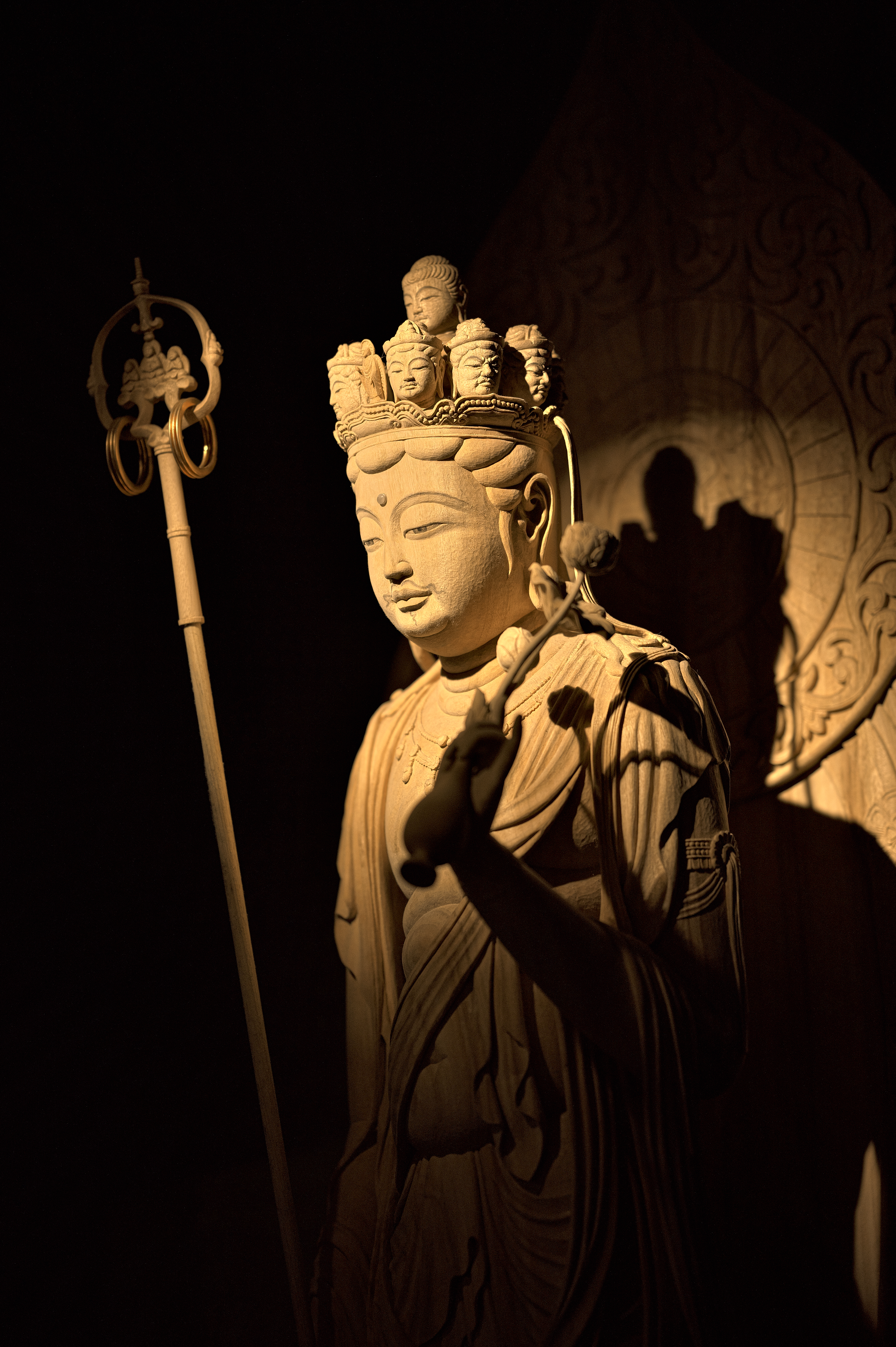 地蔵堂の裏手にハスの花に立つ朱に塗られたお地蔵様が祀られている