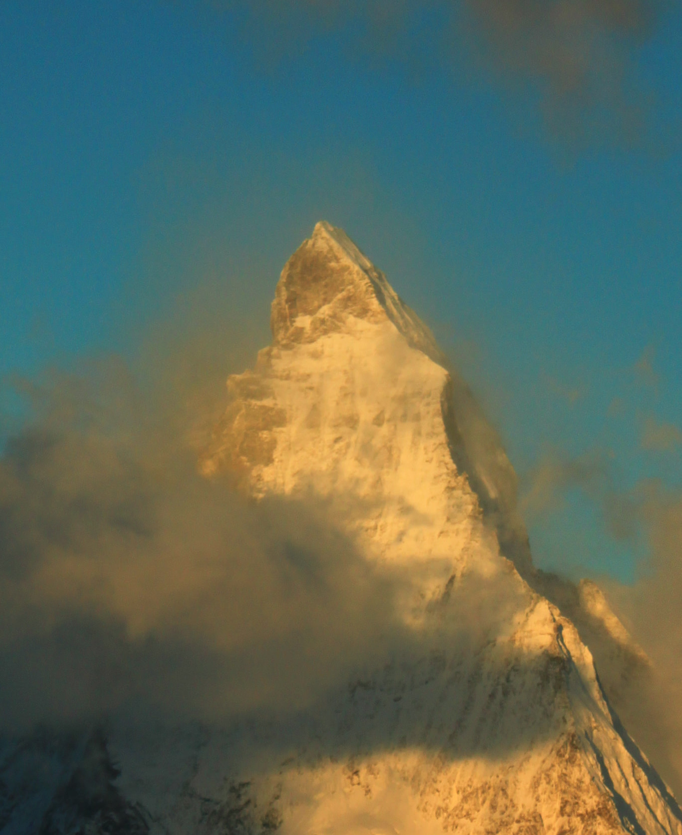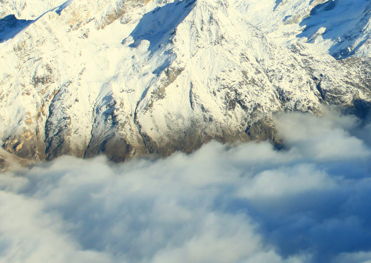 Some years ago, I visited Gornergrat glacier. In the early morning, at first it was completely surrounded by some clouds, however after a short time, the clouds started to move to another places and the glacier appeared. There were a lot of crevasses and they seemed to be stereoscopic when they were lighted by morning sunlight.