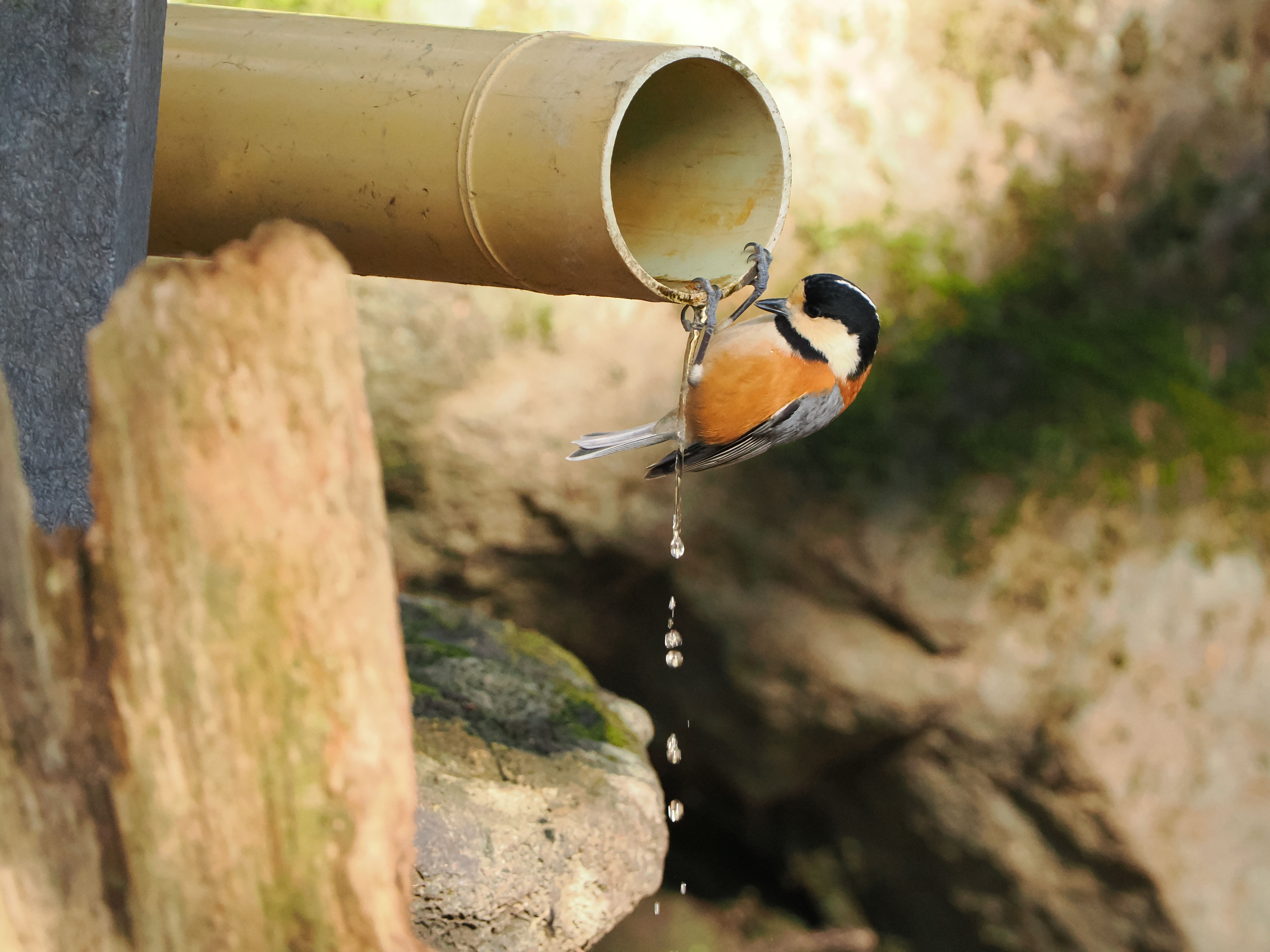 川の源流の水場で撮影したシーンです。川の水を一番最初に利用されているのは我々人間では勿論なく、ヤマガラが水をご利用されていました。
