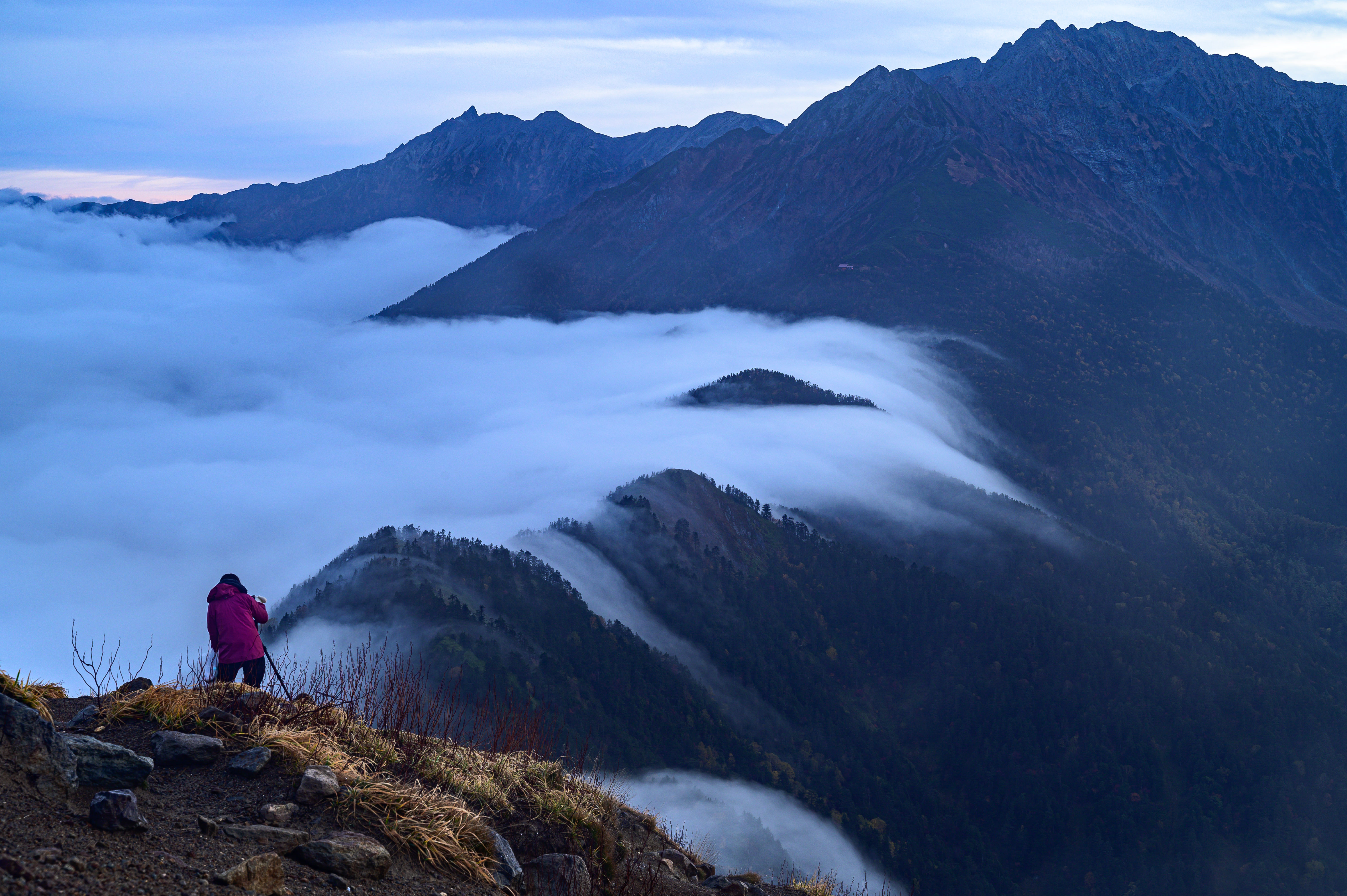 穂高の雲滝を撮る女性