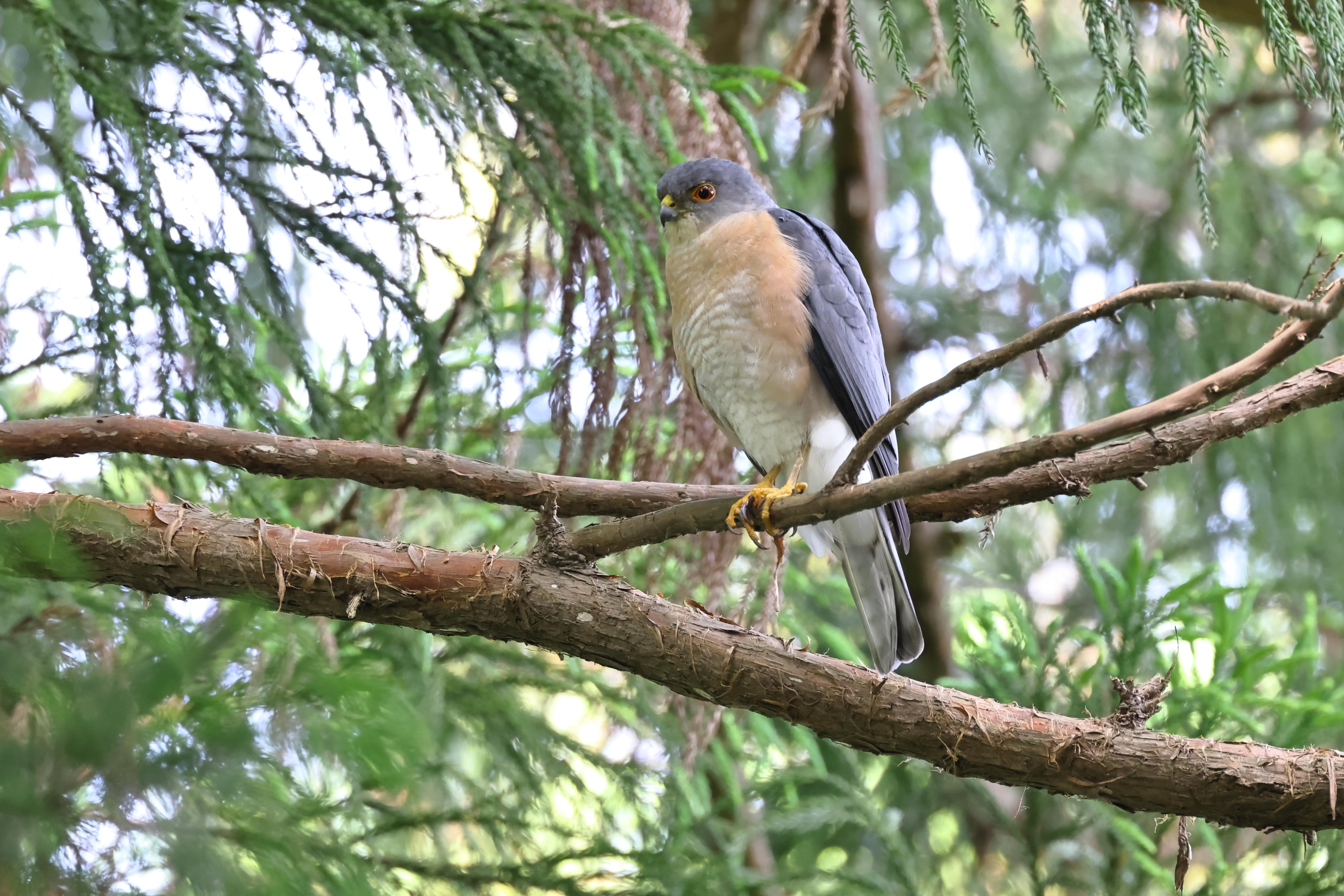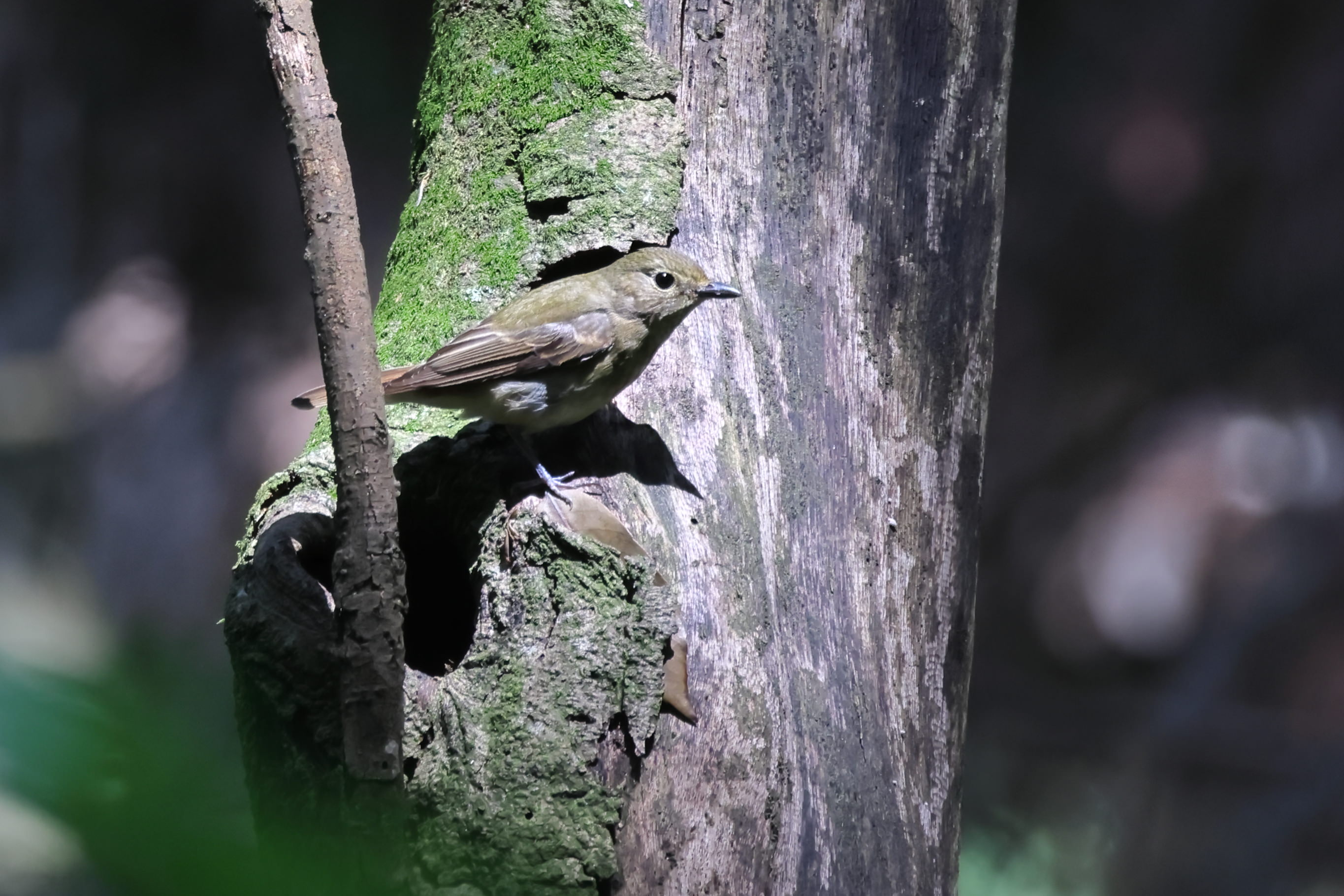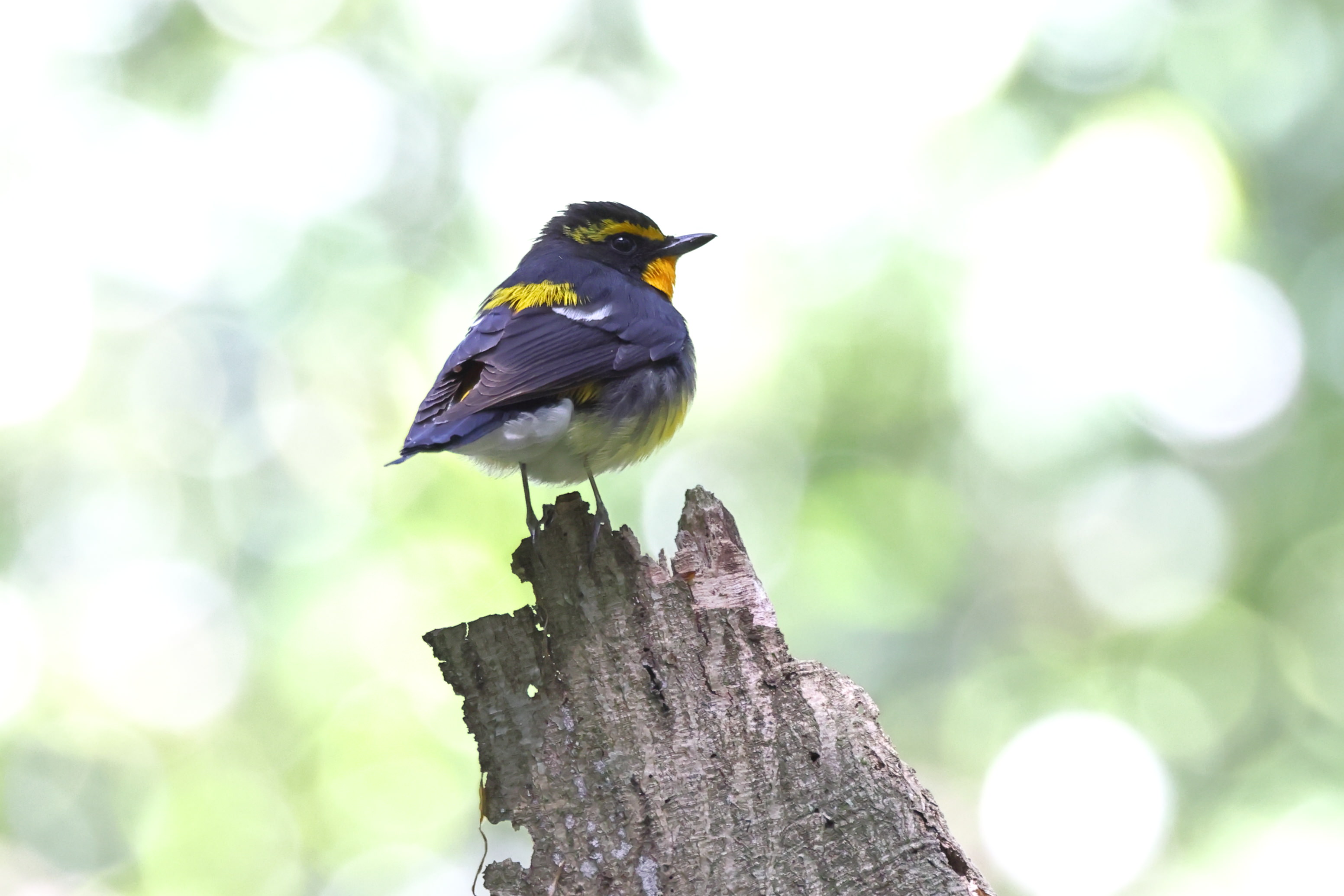 キビタキが林の中で囀っている様子