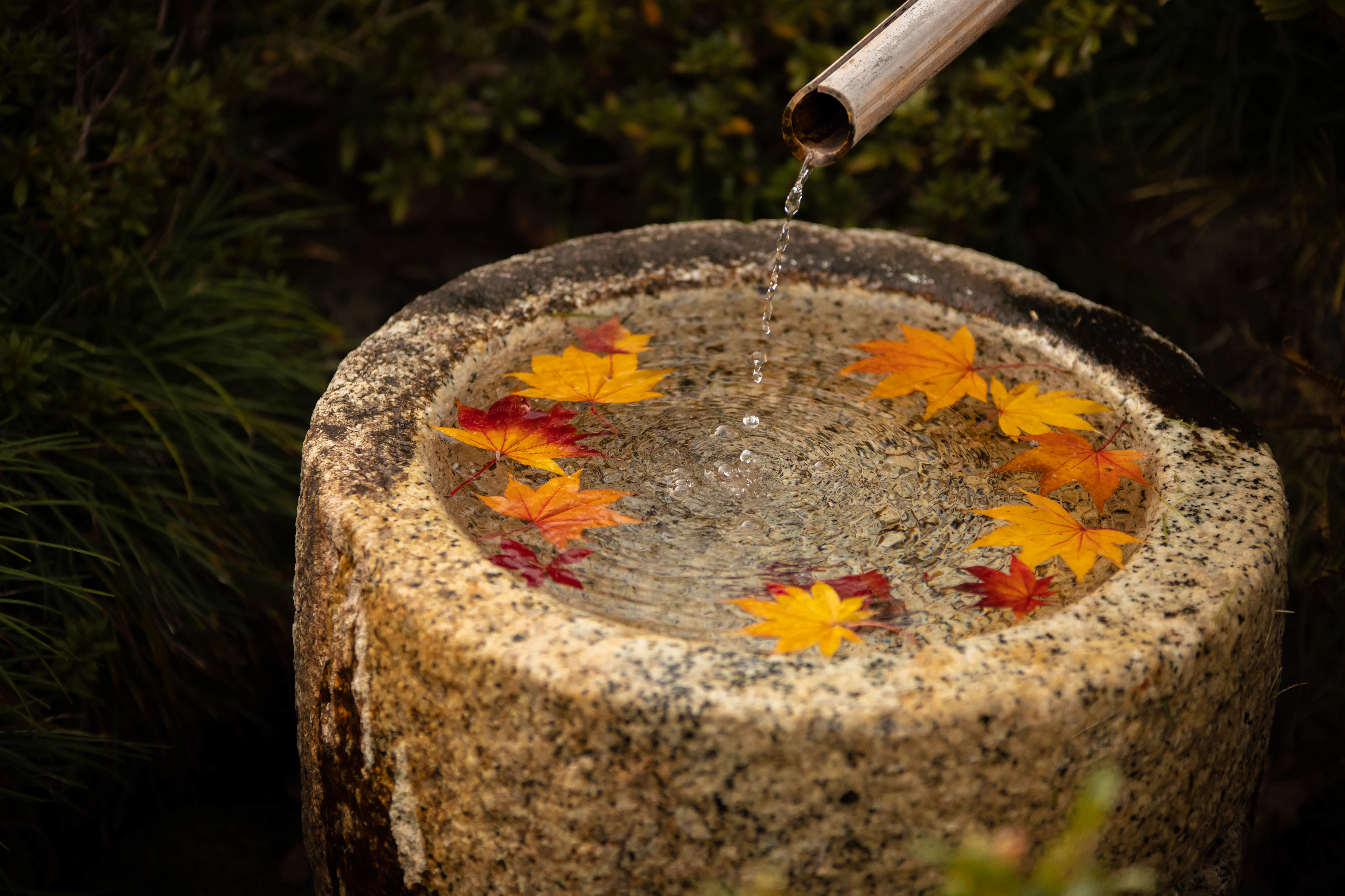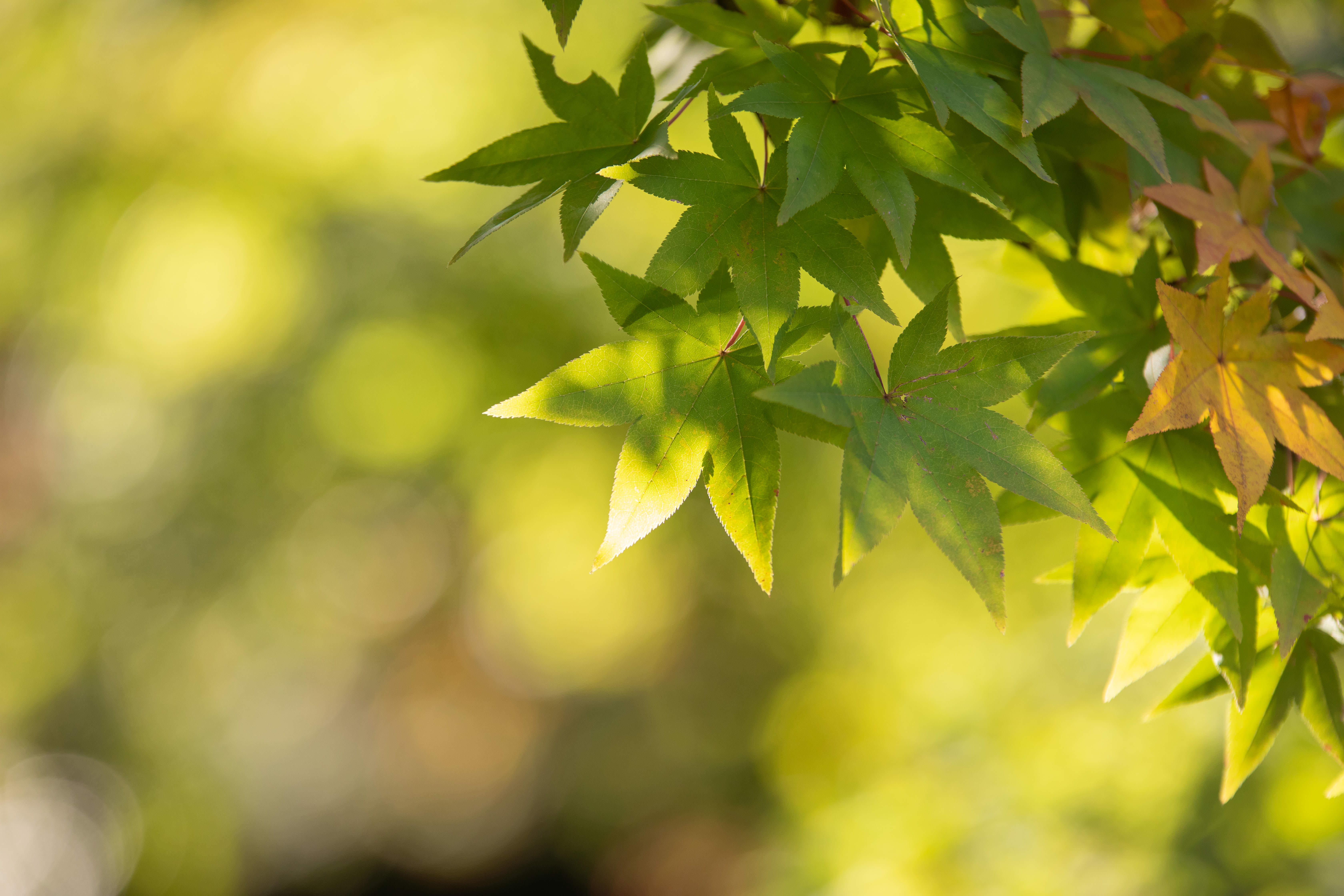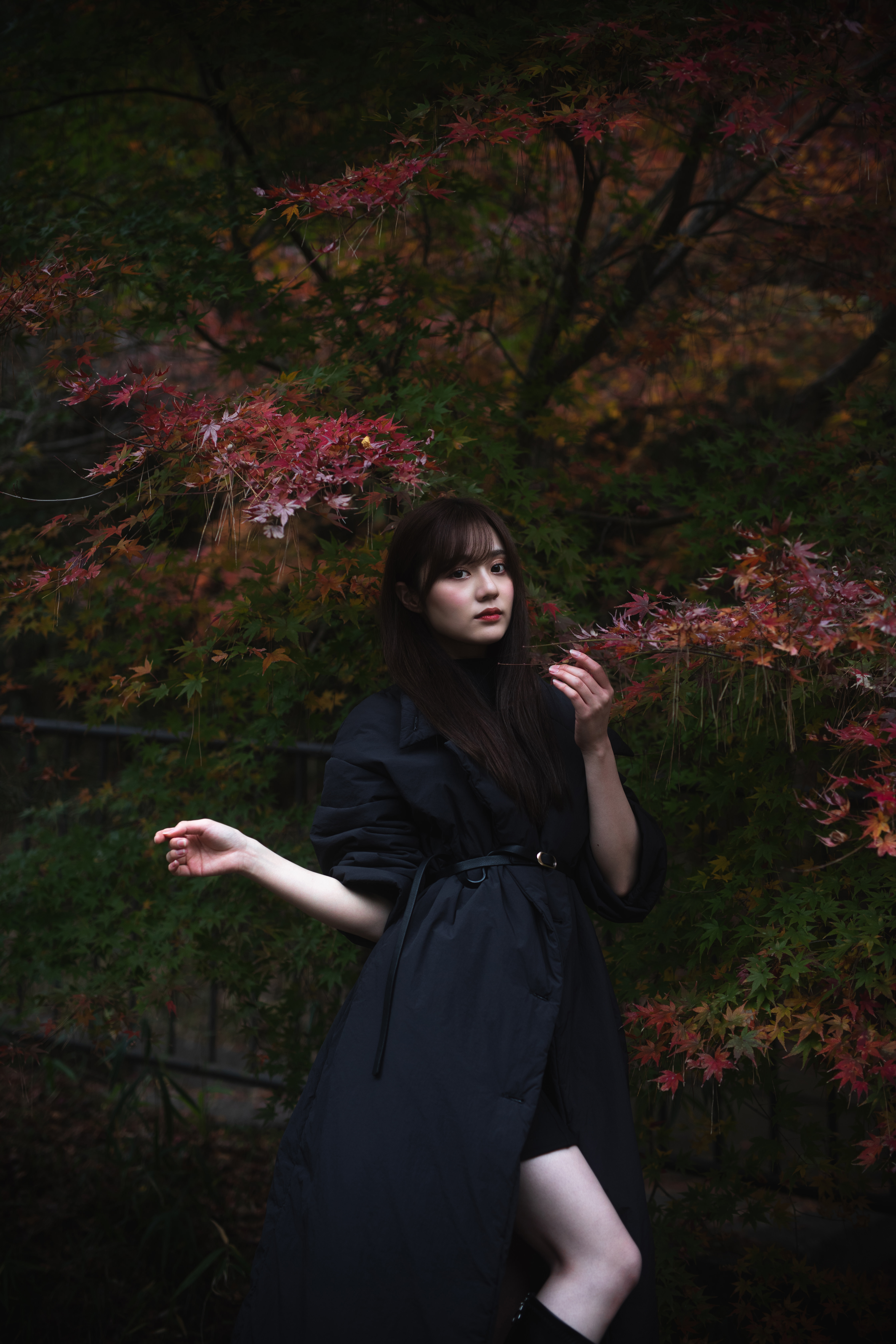 落ち葉になっている黄色く染まった紅葉を綺麗に舞うように投げてもらいました。