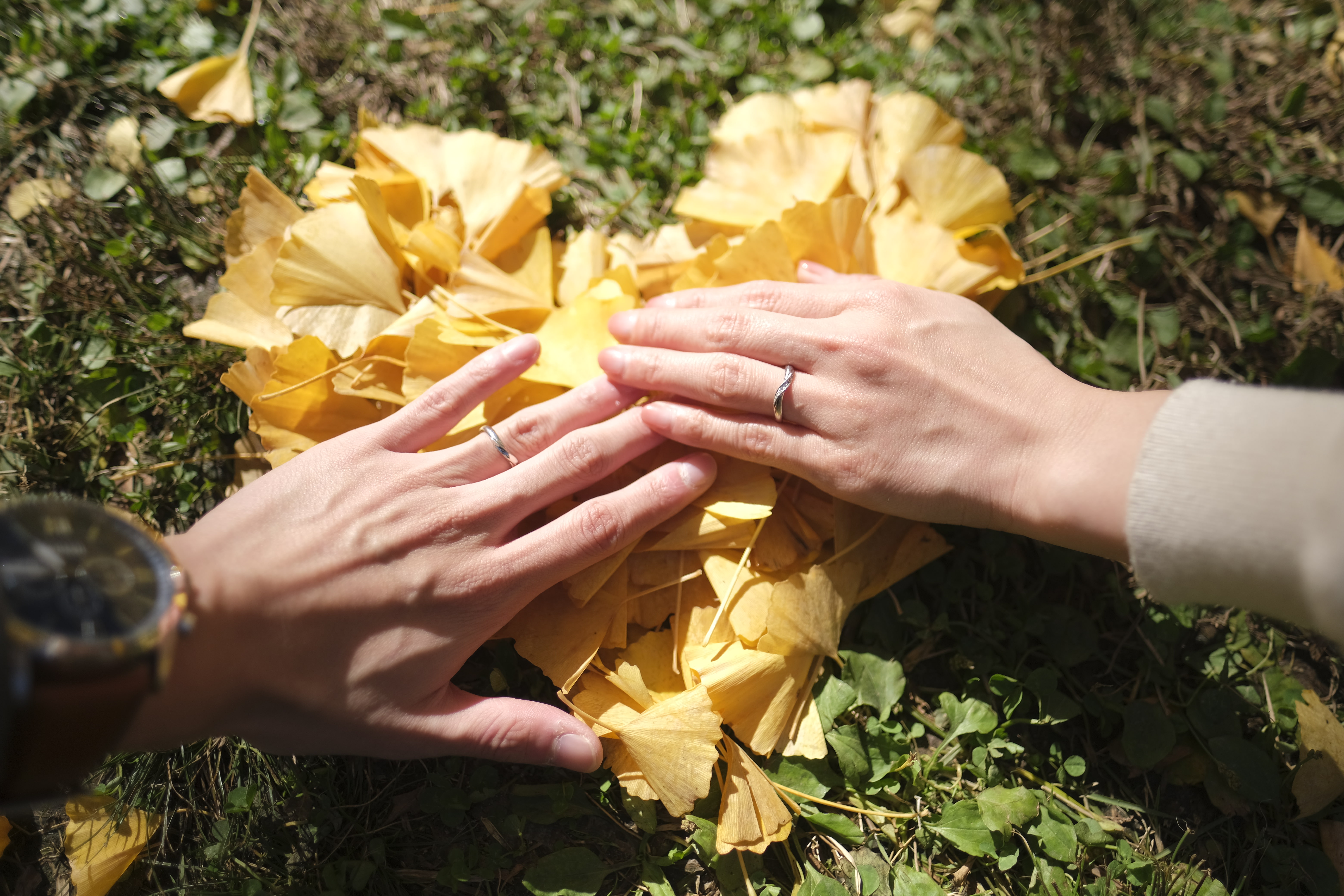 イチョウの葉を重ねてハートを作ってみました。こんな世の中だからこそ、大切な人との思い出を積み重ねていきたい。そんな想いを込めてみました。