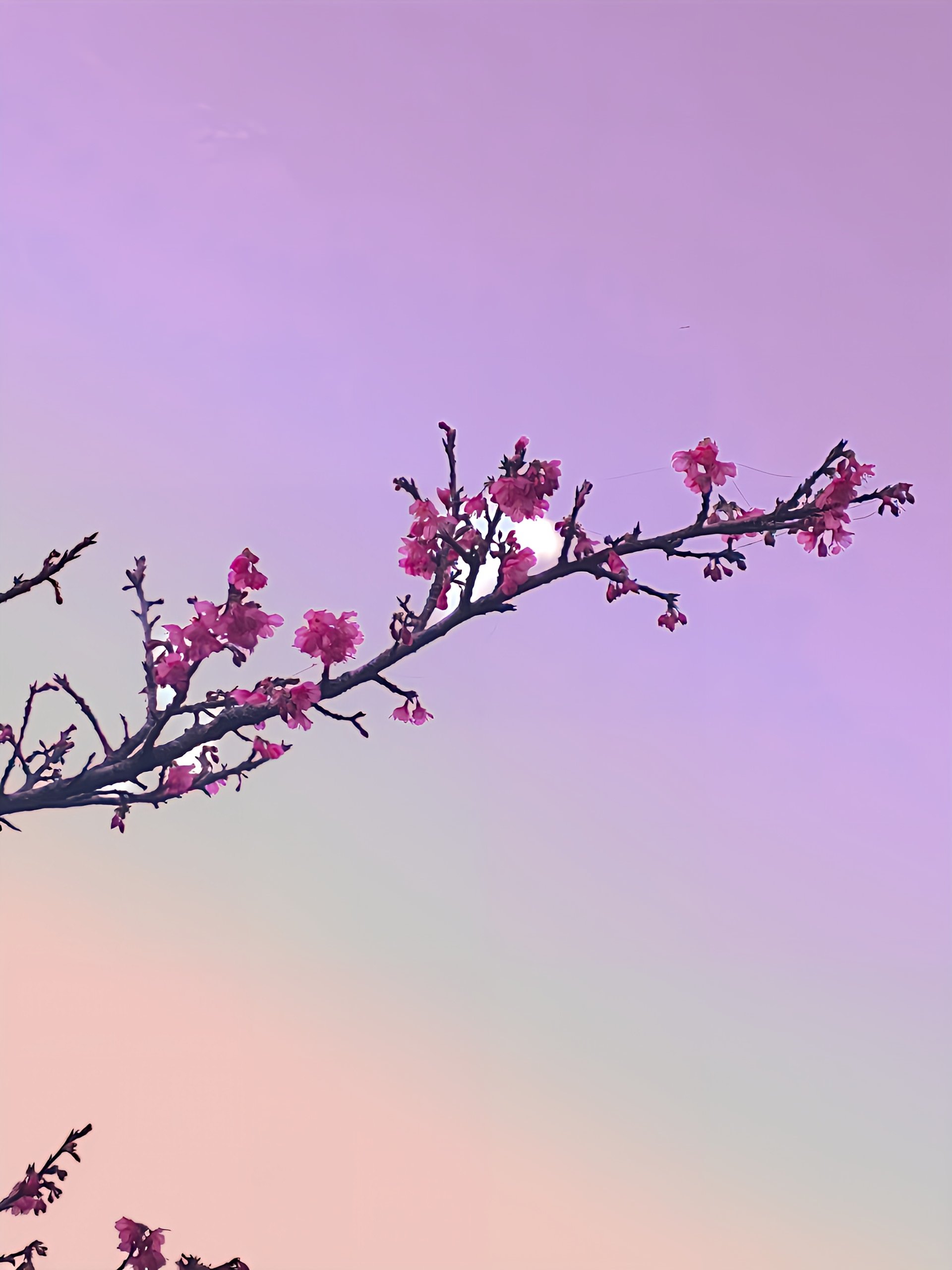 柔らかな空のグラデーションに浮かぶ桜の枝。