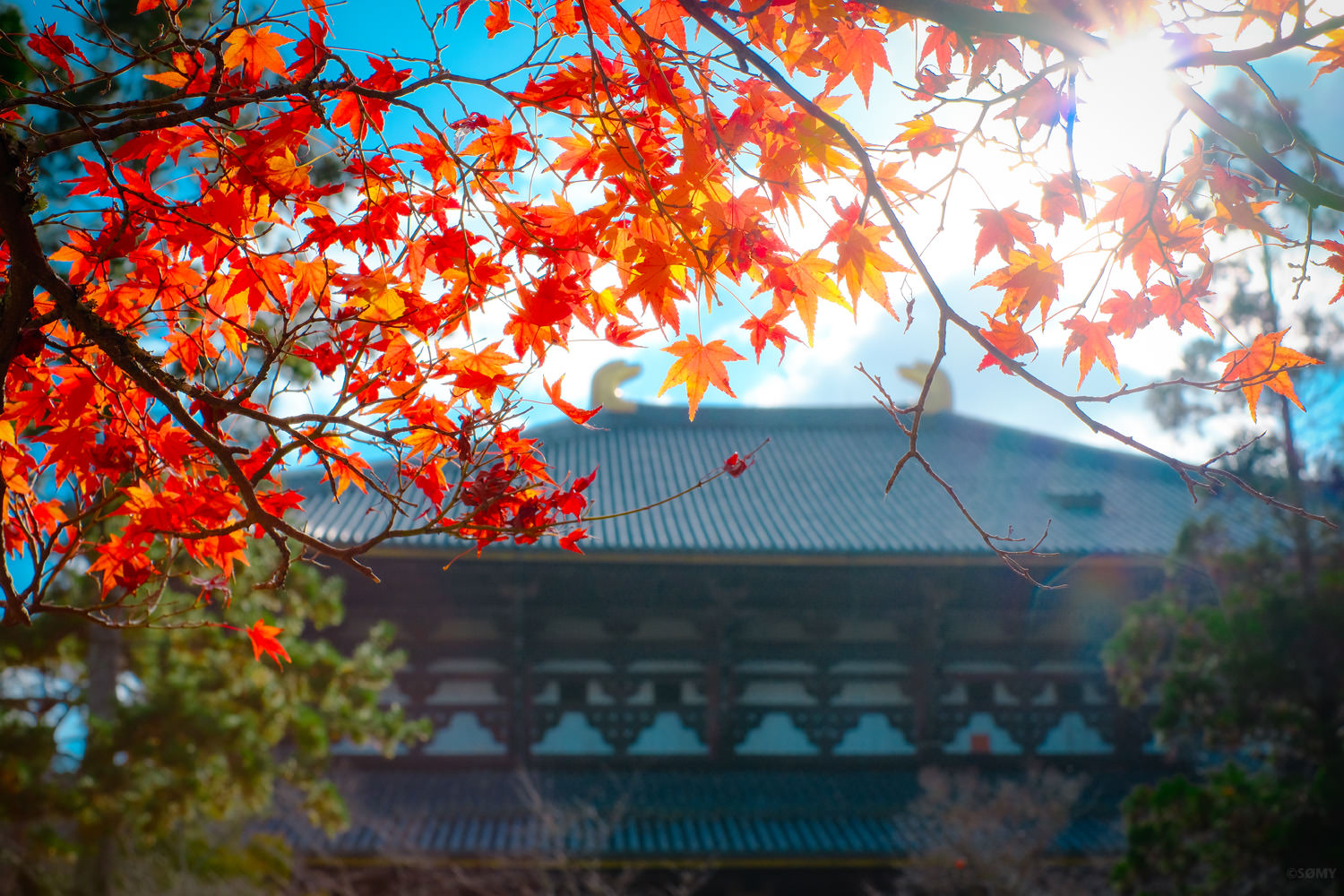 少し絞ってF2.8。大仏殿の瓦も十分シャープな描写に。