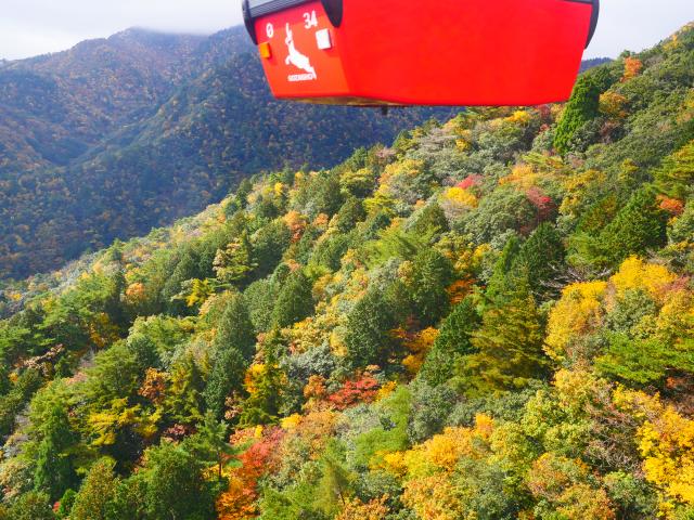 ロープウェイ駅からみえる廃墟。周りの樹々は前回よりは色付いてました。