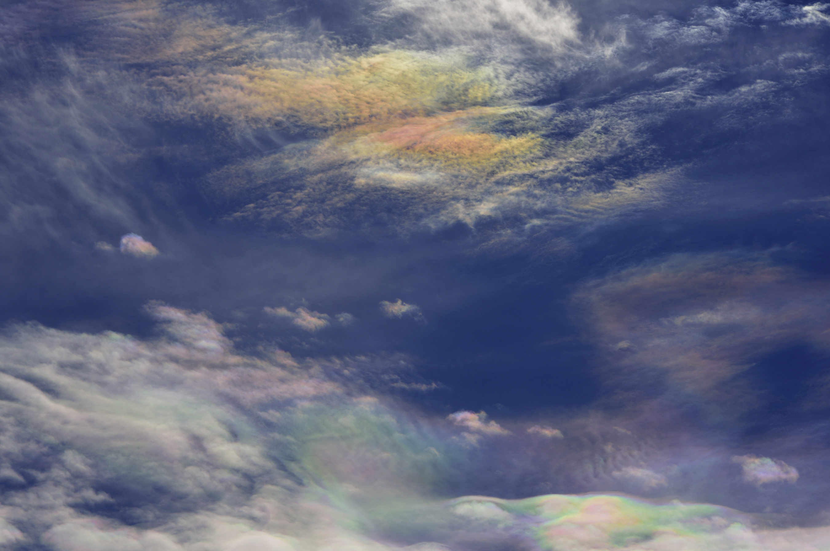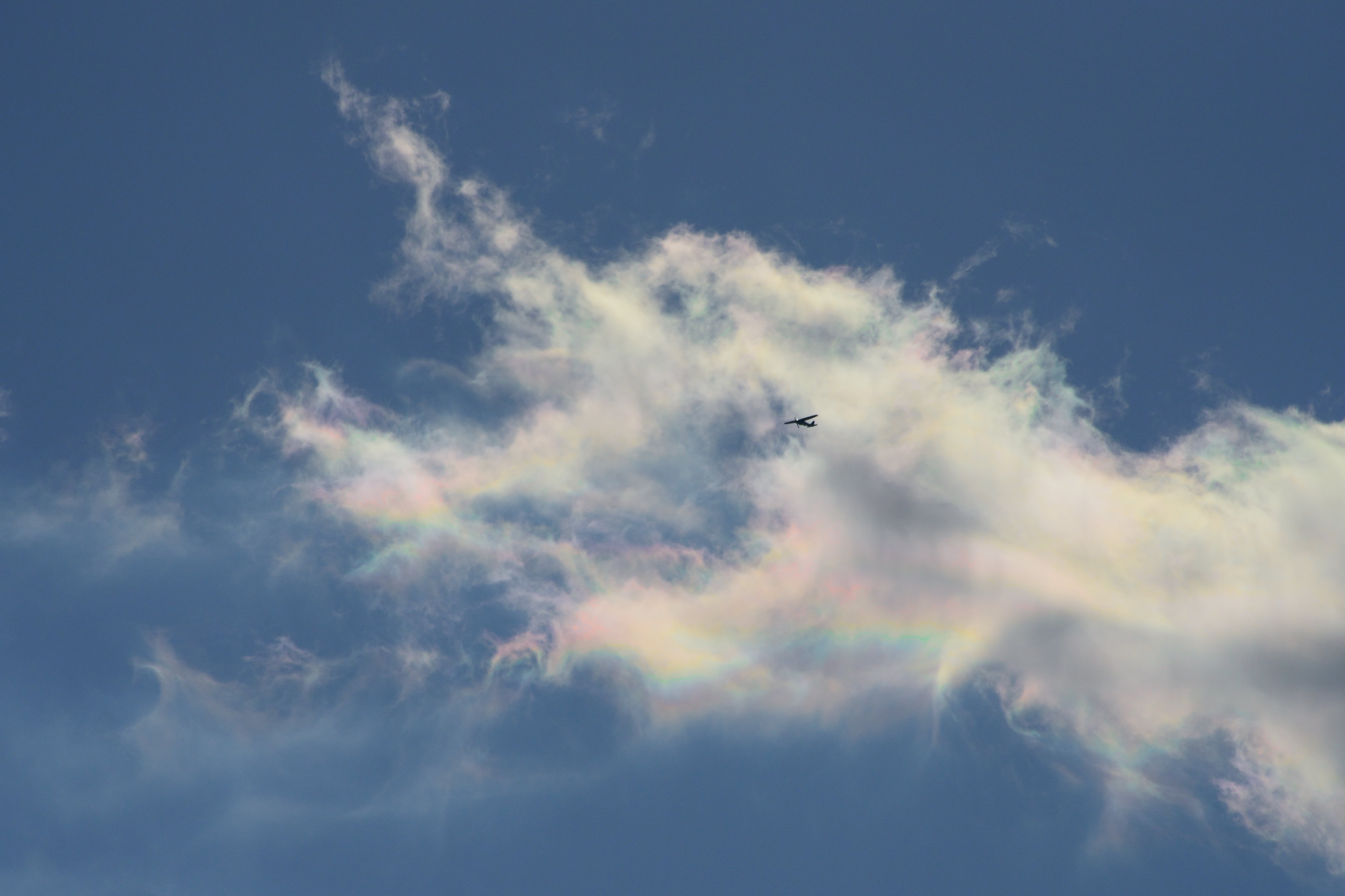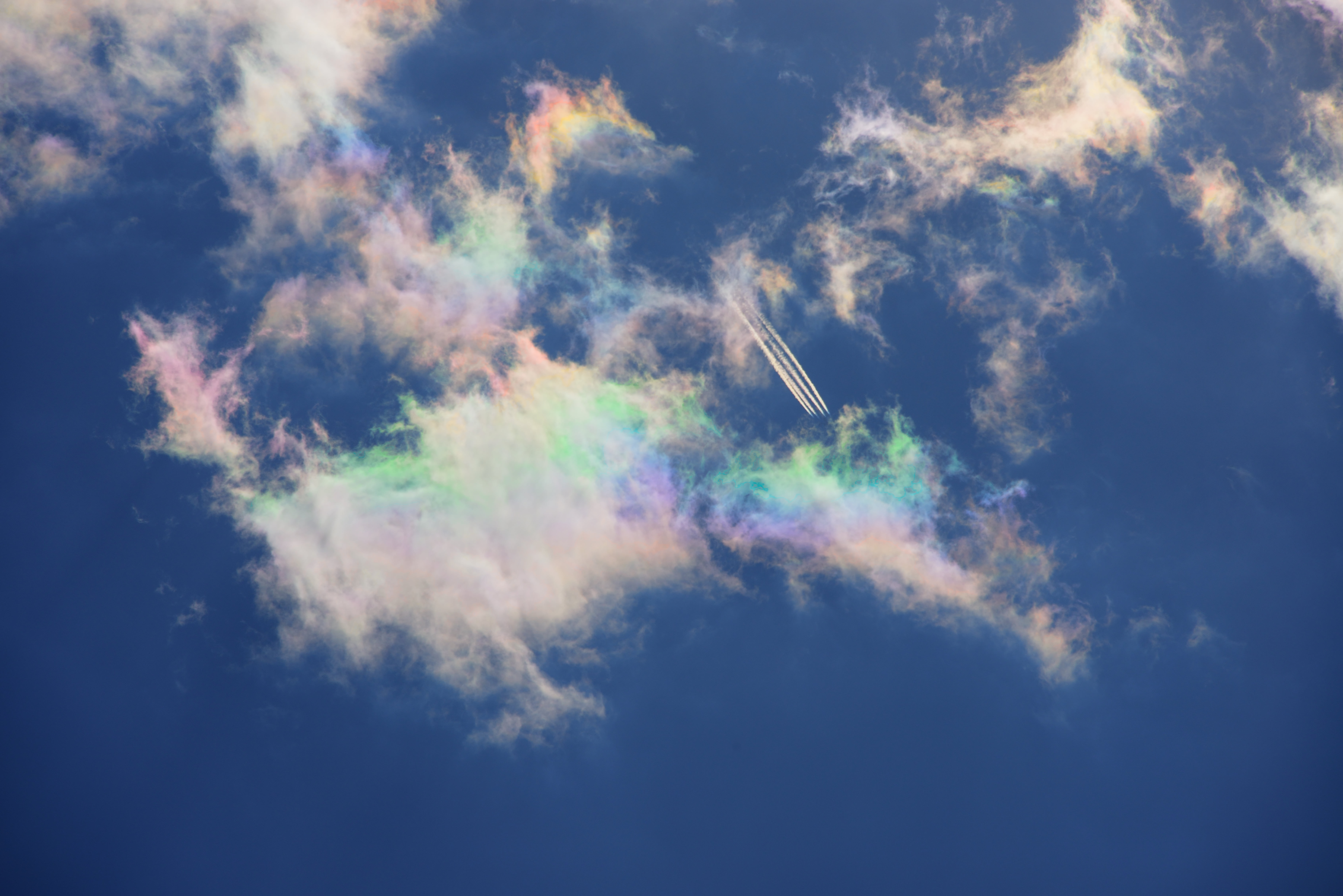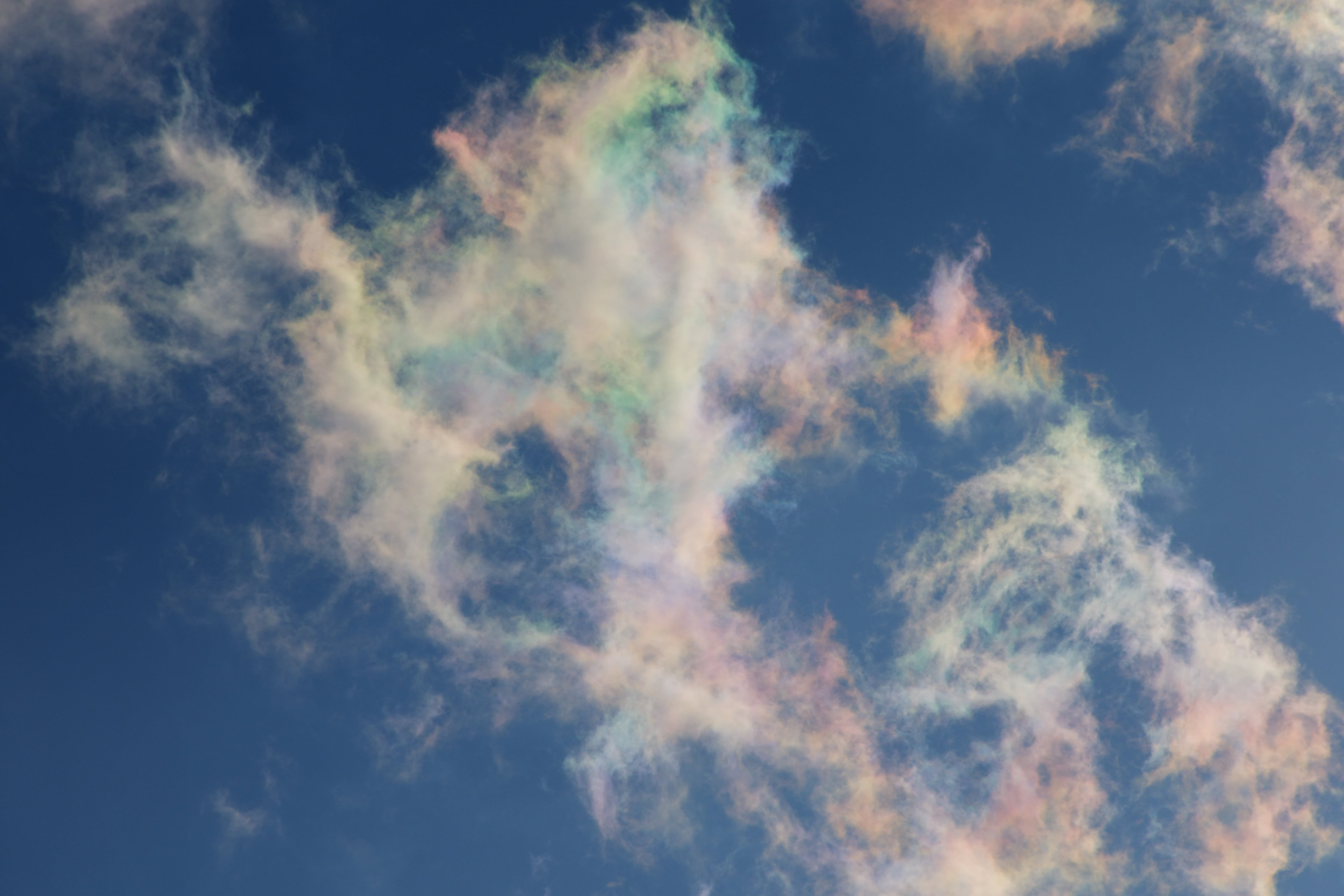 雲に発生する自然現象 幻の太陽 幻日です。現実は太陽の周りに雲があり 一定の条件が重なると太陽の両サイド22度の位置に幻日が発生します。通常は雲の配置により両サイドに出ることは少なく 左側か右側に出るのか多い様です。彩雲の色とは異なり部分的に色が発生するようです。