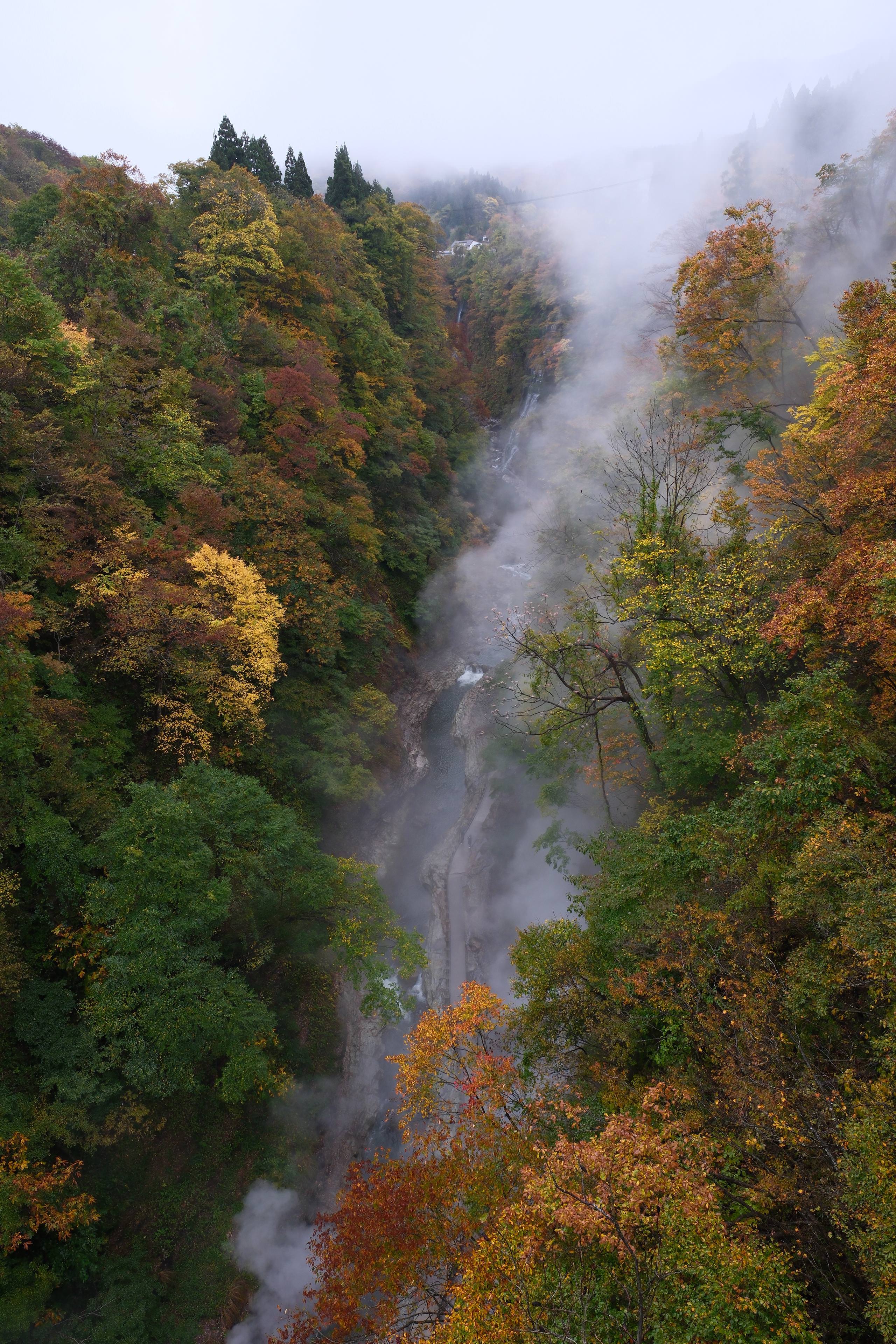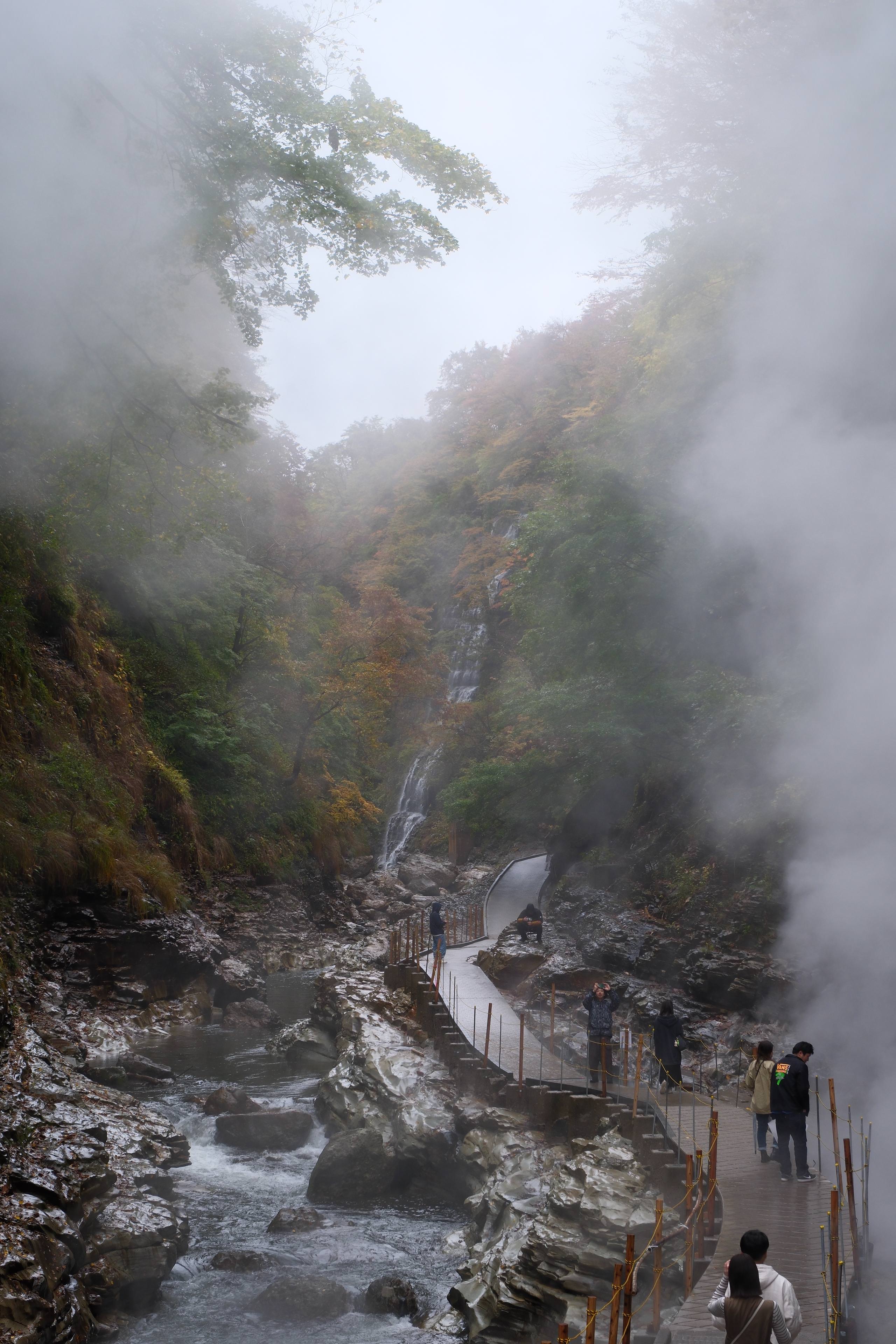 雨降りで気温も低くて寒かったですが、おかげで小安峡らしい湯煙あふれる写真が撮れました。