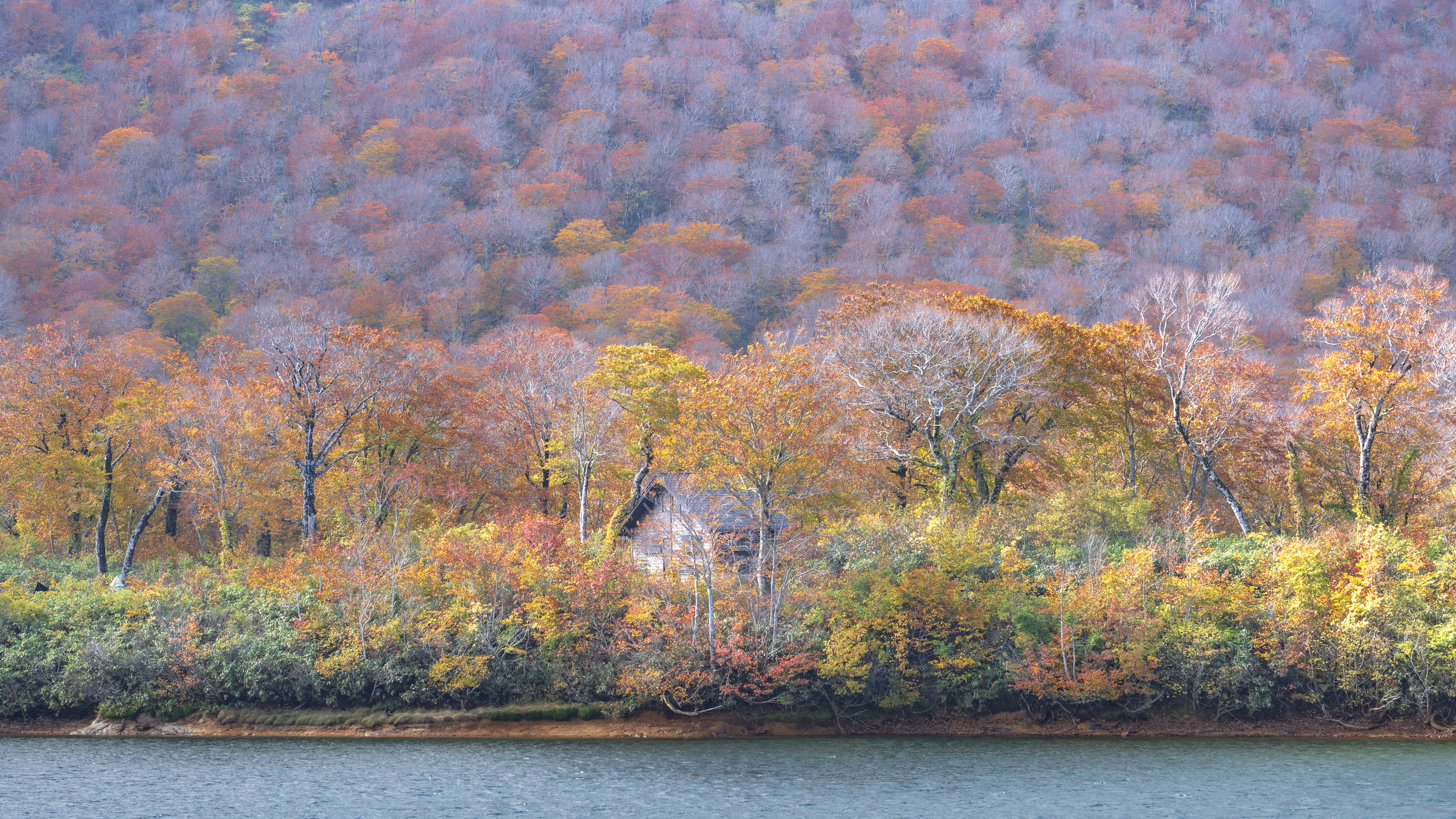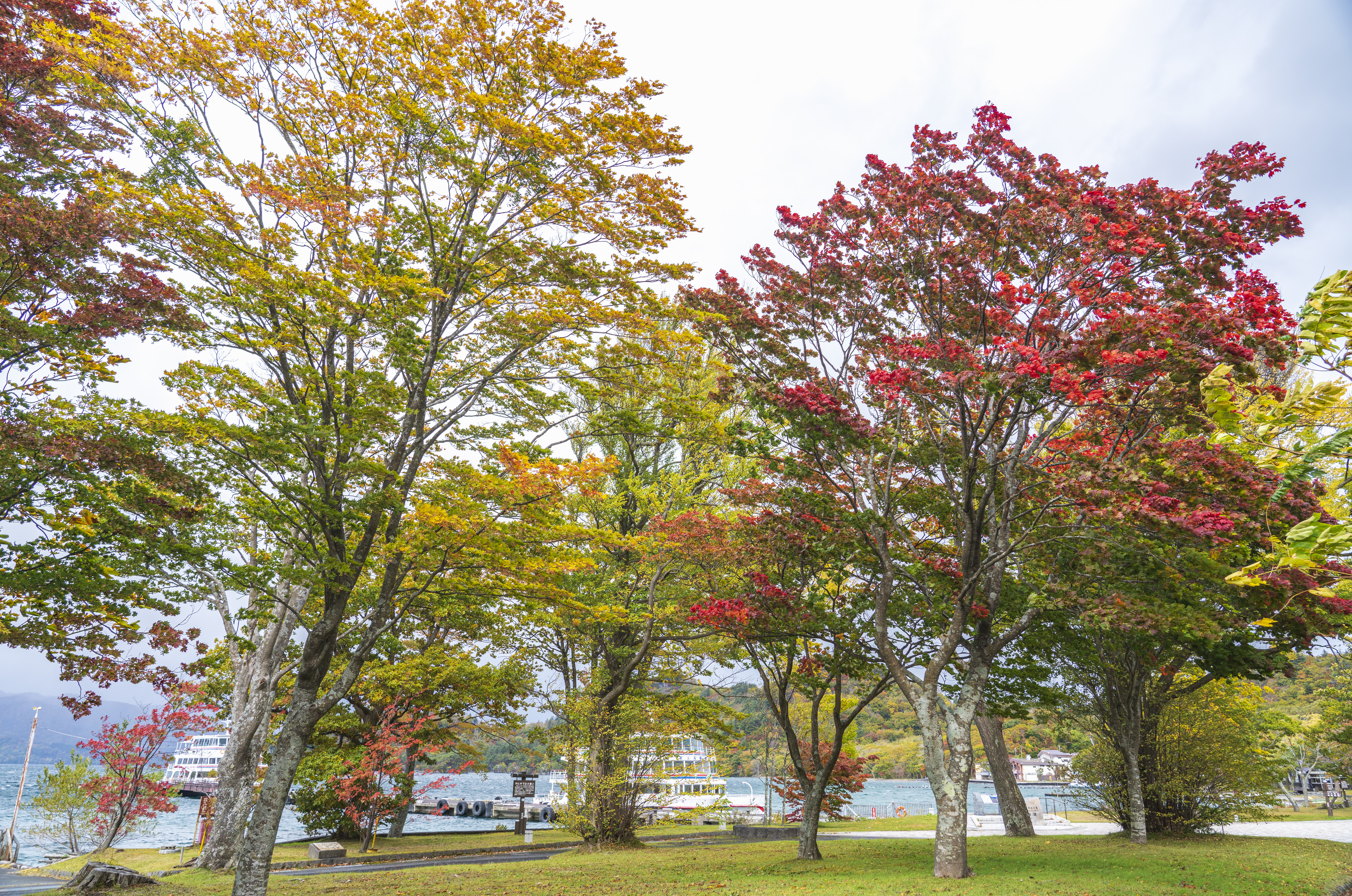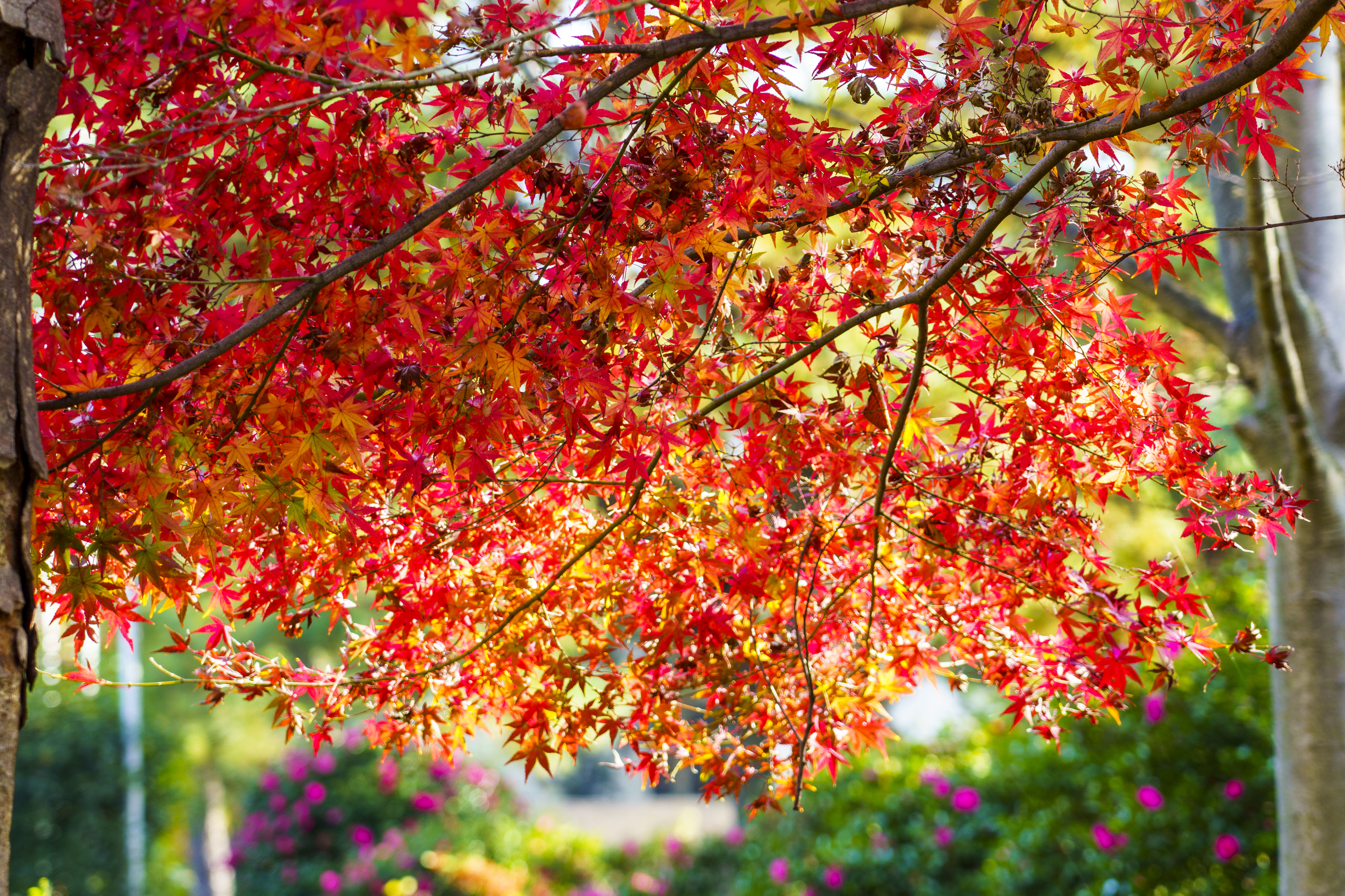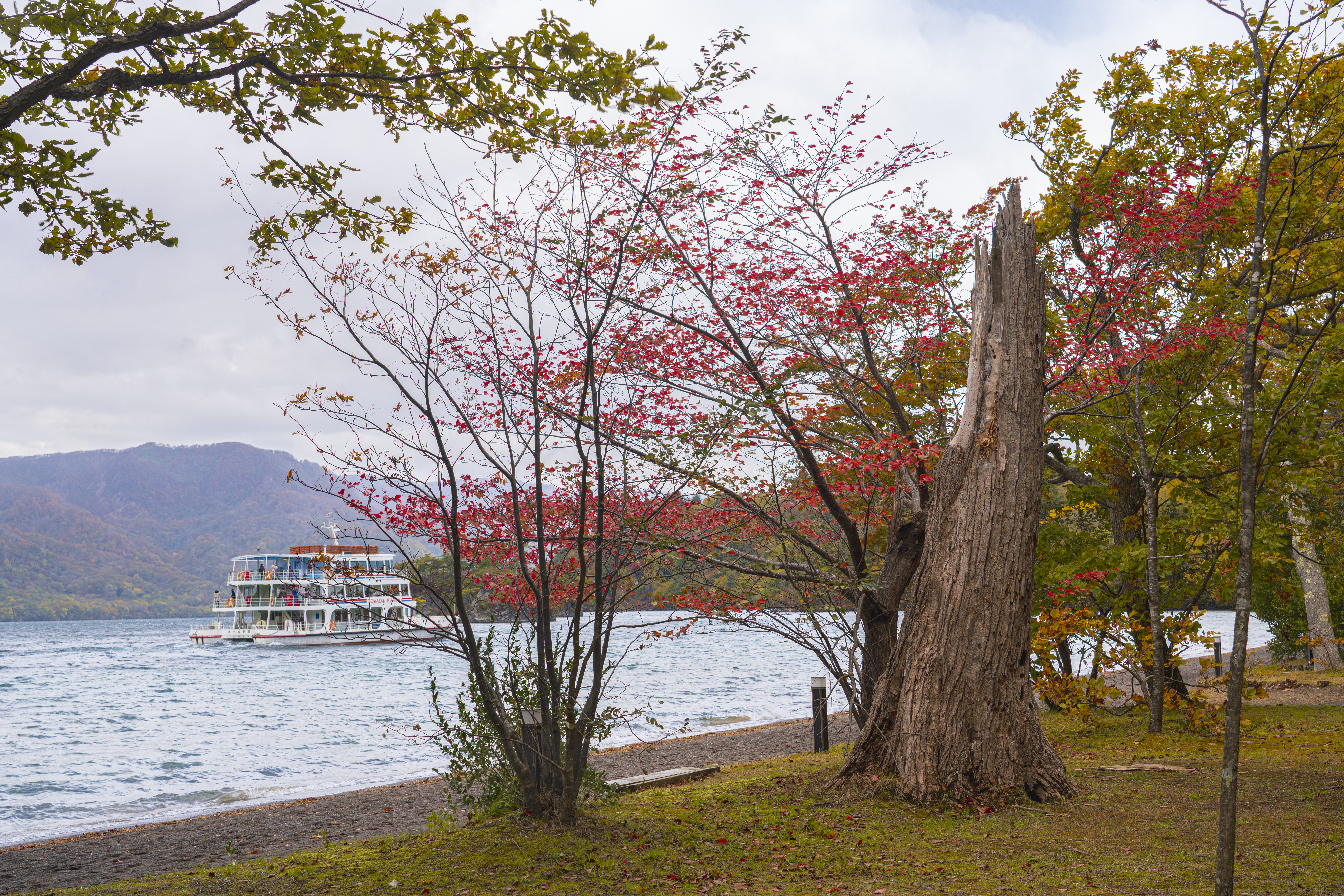 紅葉で赤く映える雲間池