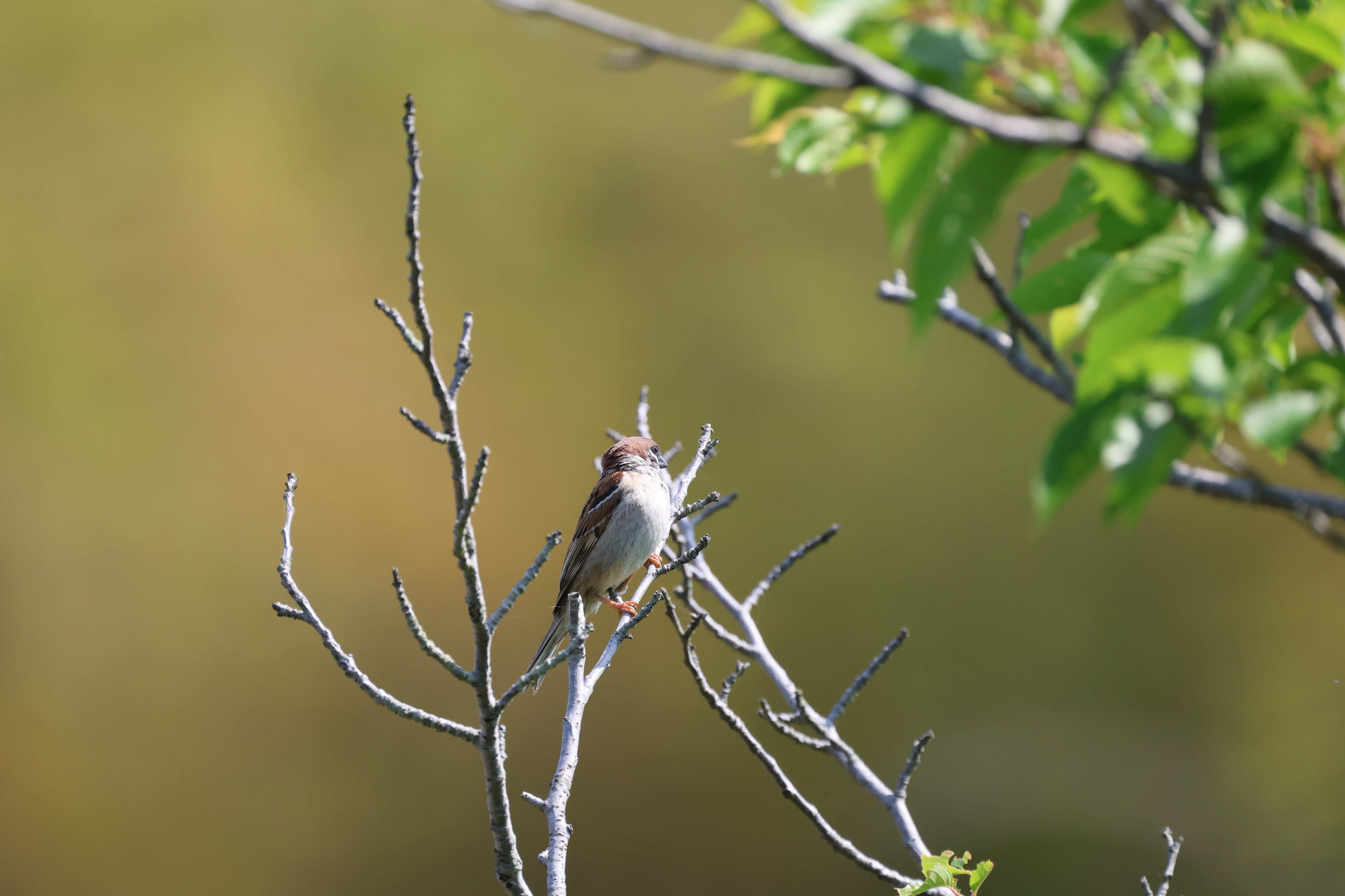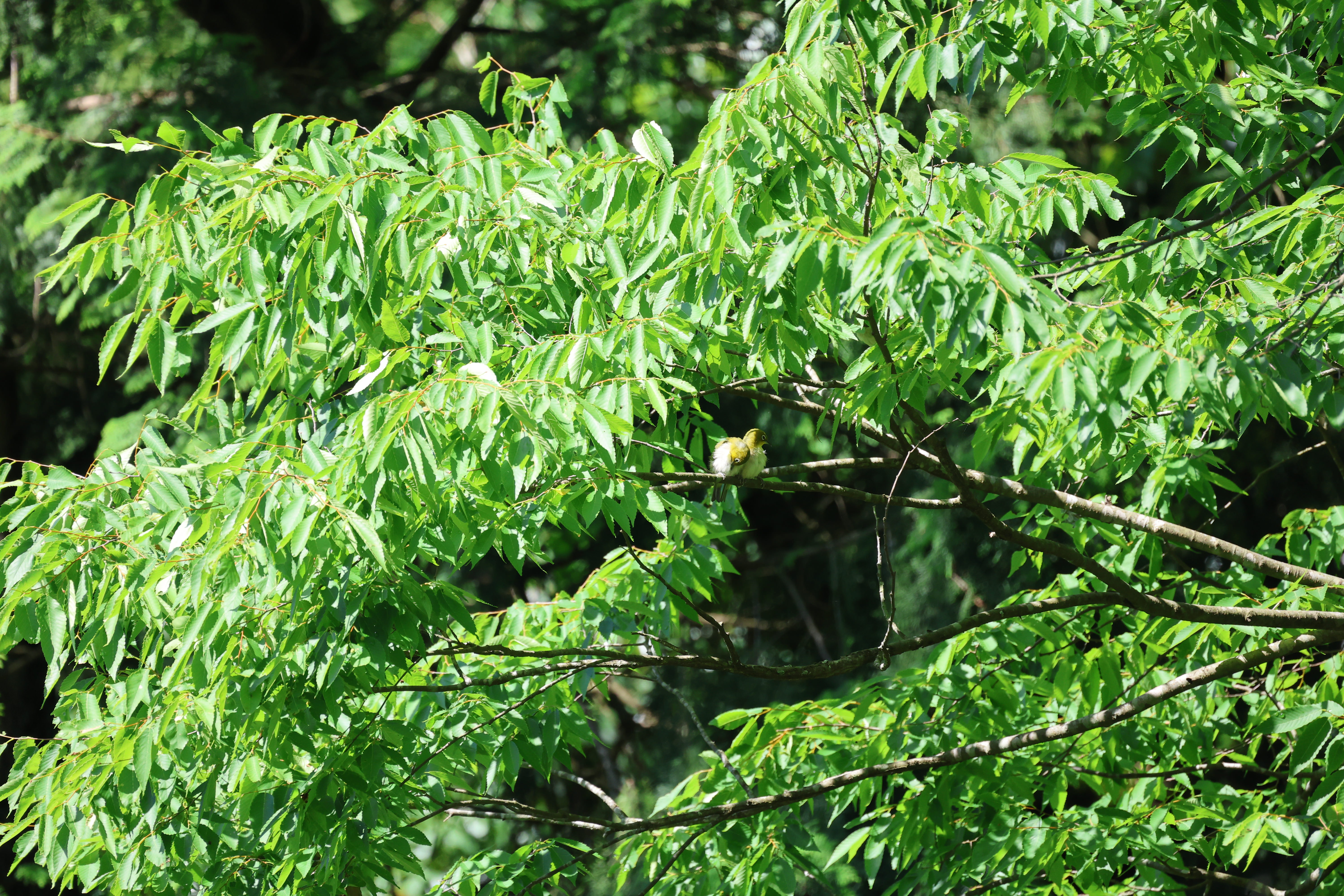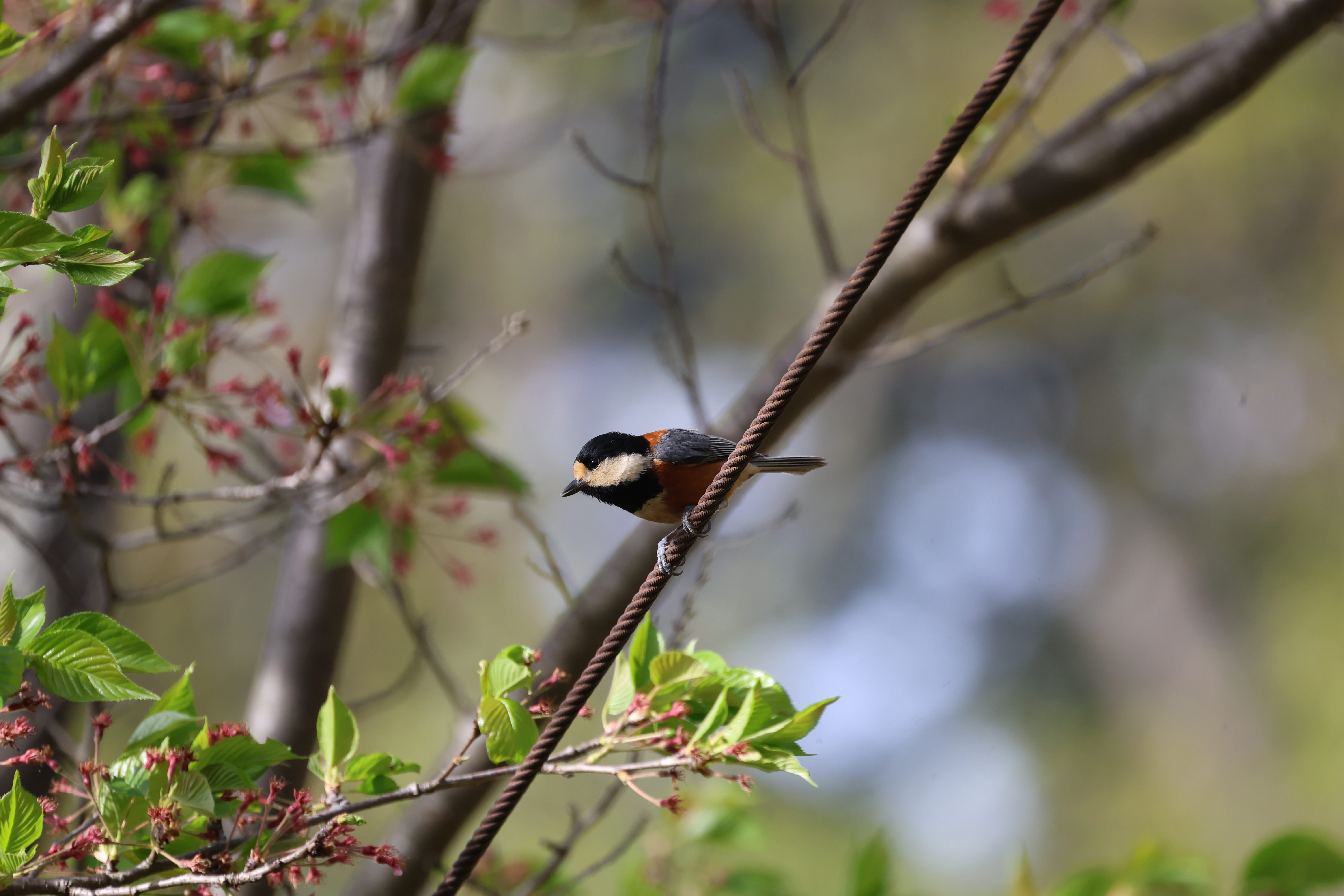 桜の花が散った後を眺めているようなヤマガラ。