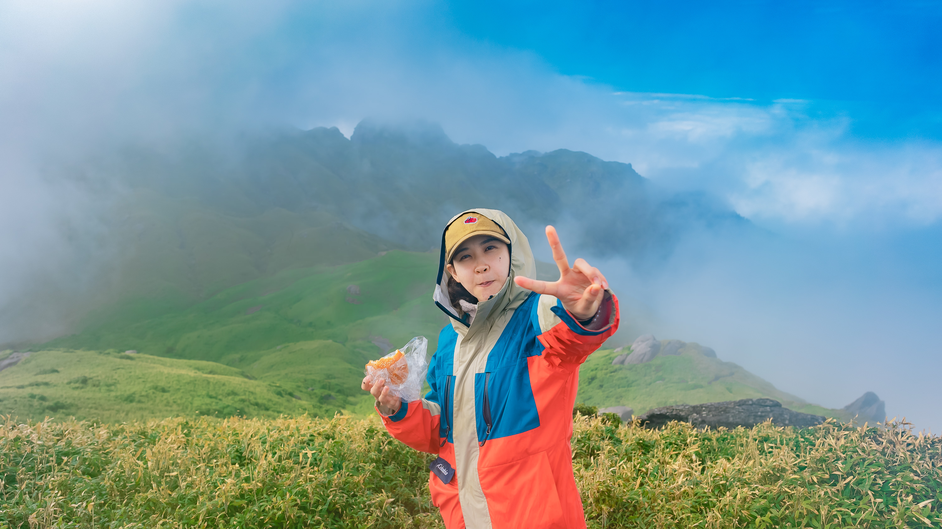 夕焼けのミヤマキリシマを見に行こうと登山したが、山頂はガスで視界不良でした。