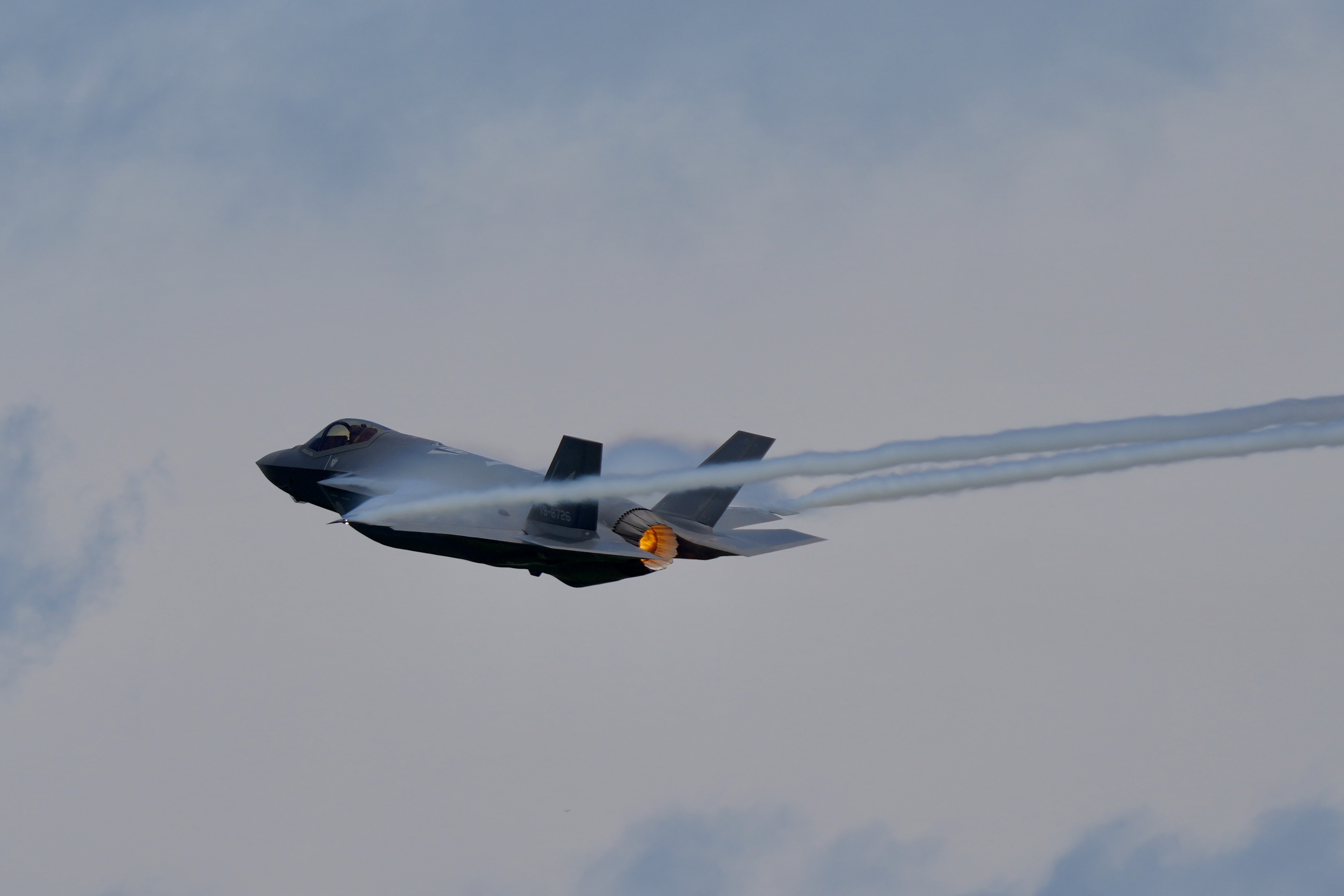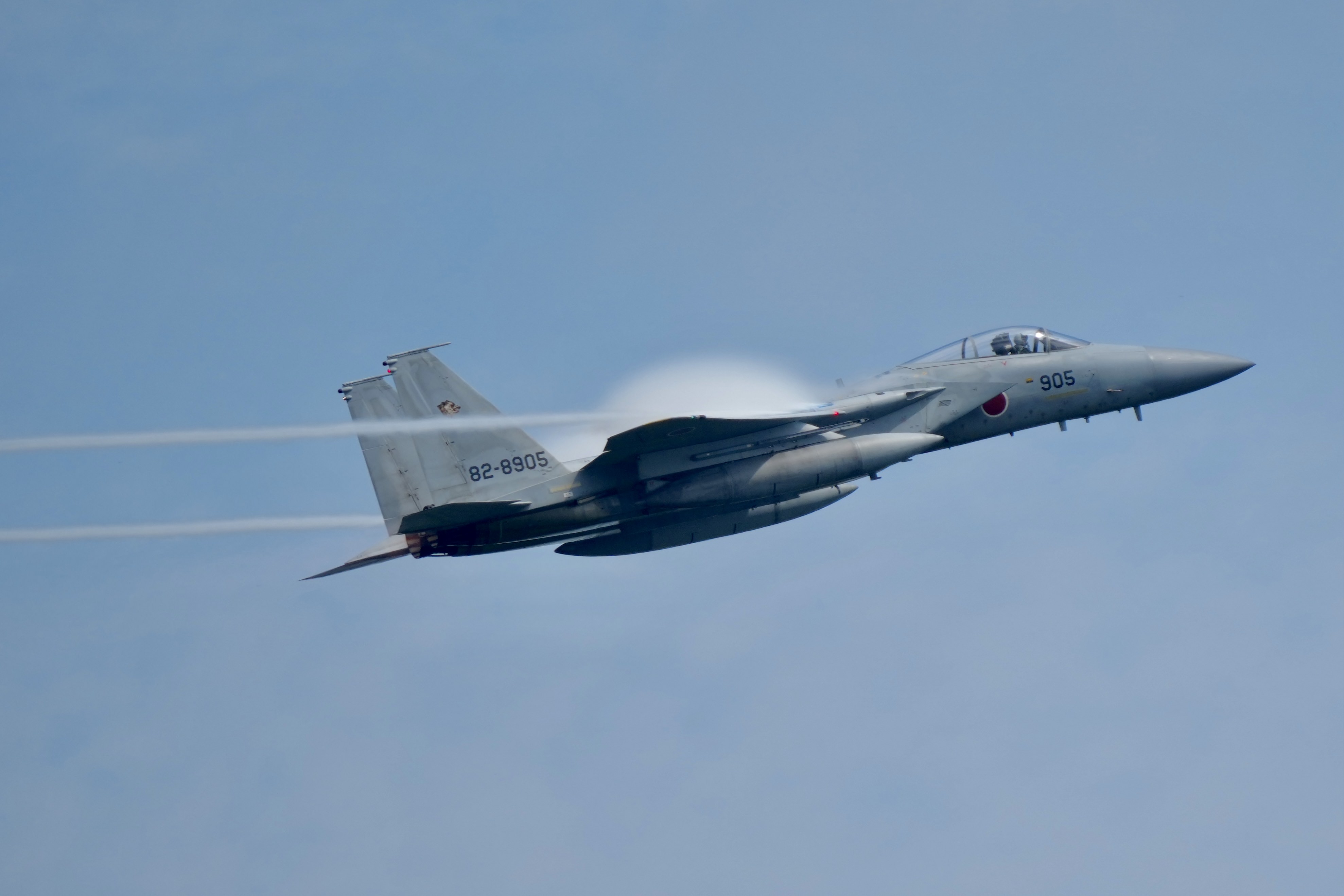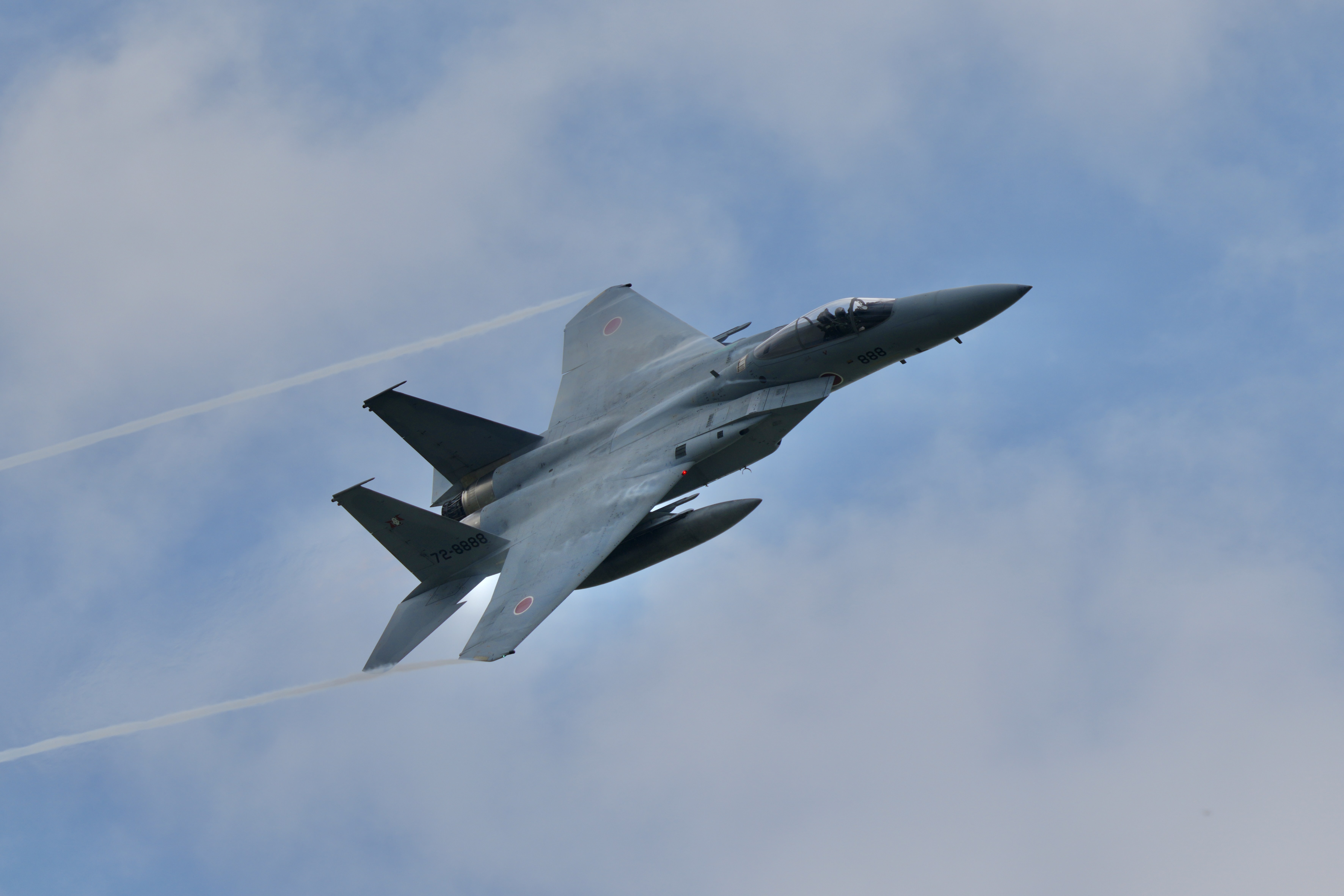 アフターバーナーを噴射すると一瞬で飛行機雲が