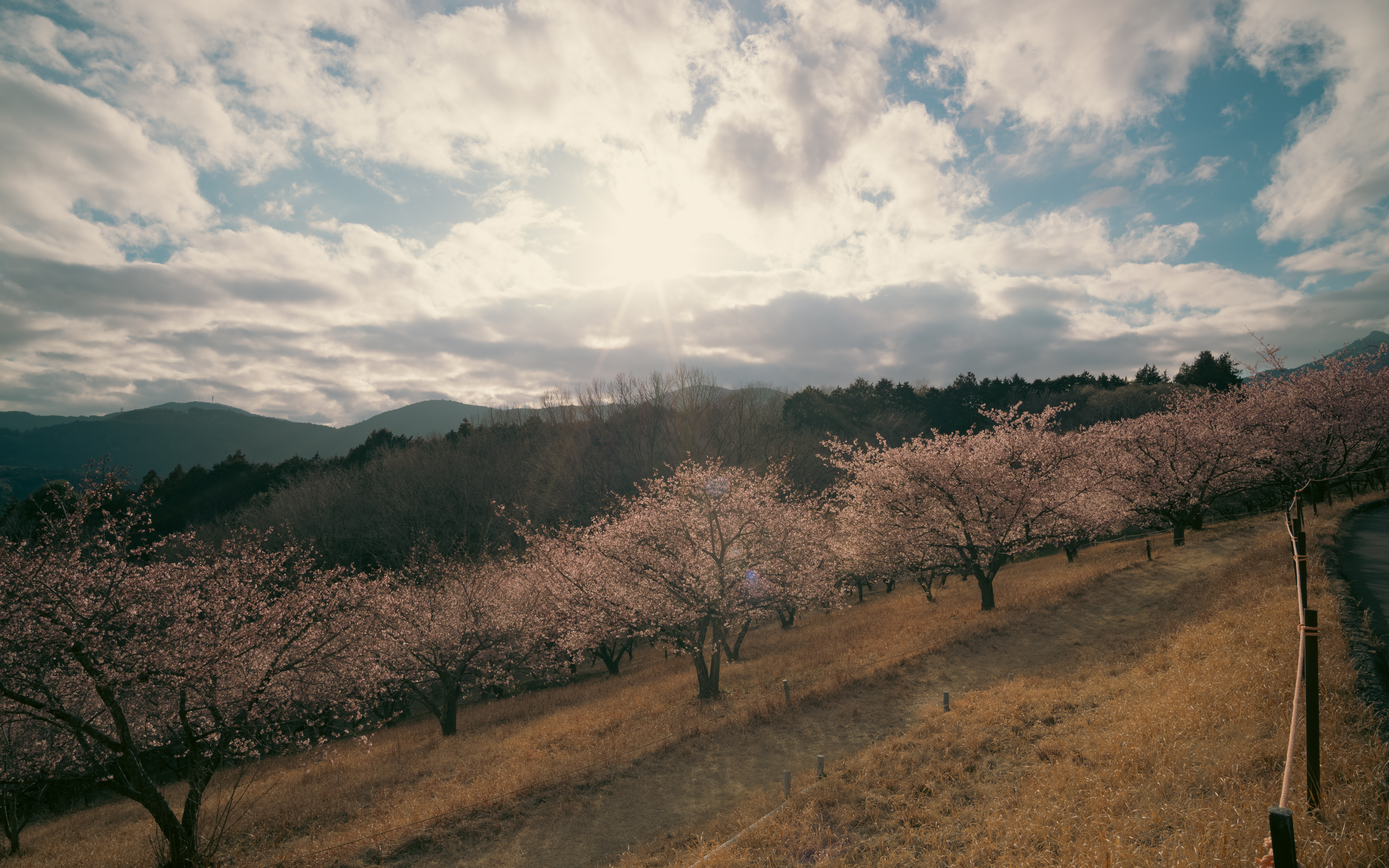 茨城県のフラワーパークにて、満開の河津桜と空を切り取ってきました