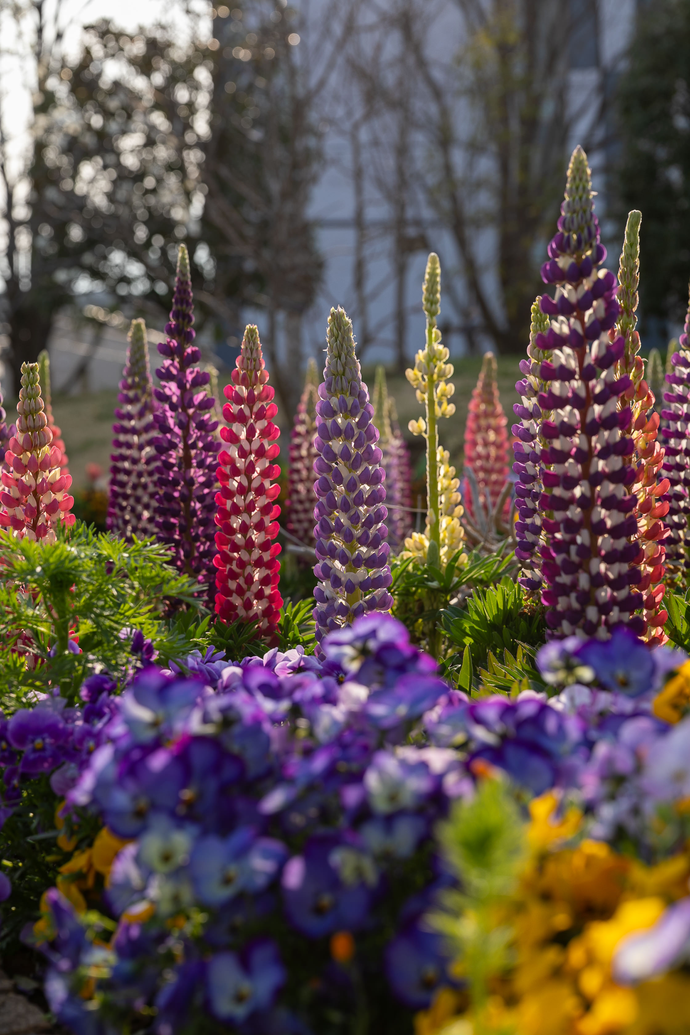 光と影が織りなすコントラストが、花々の色彩をより一層引き立て、まるで絵画のような美しさです。そよ風に揺れる花々の姿は、見る人の心を穏やかに癒やしてくれます。