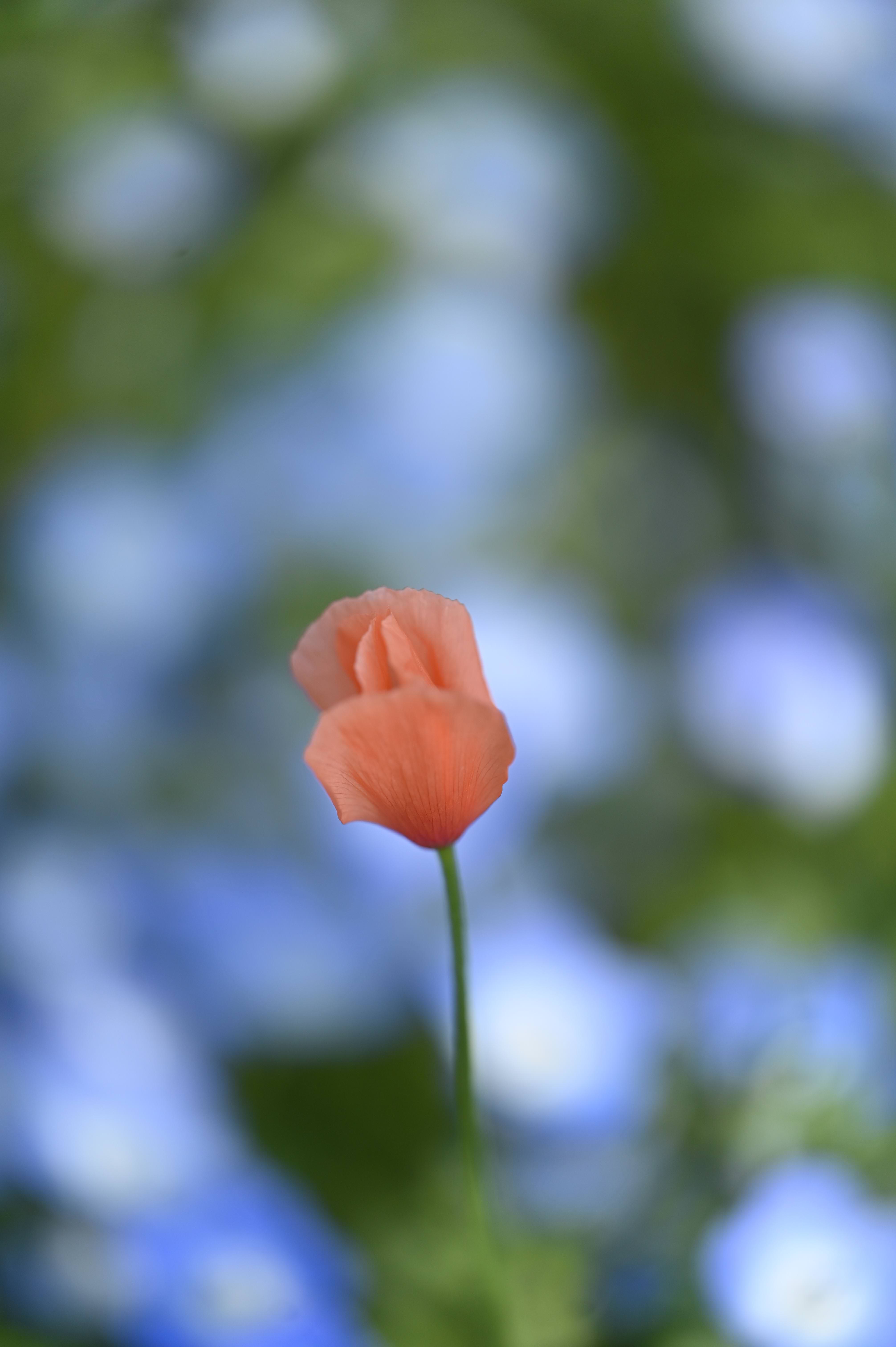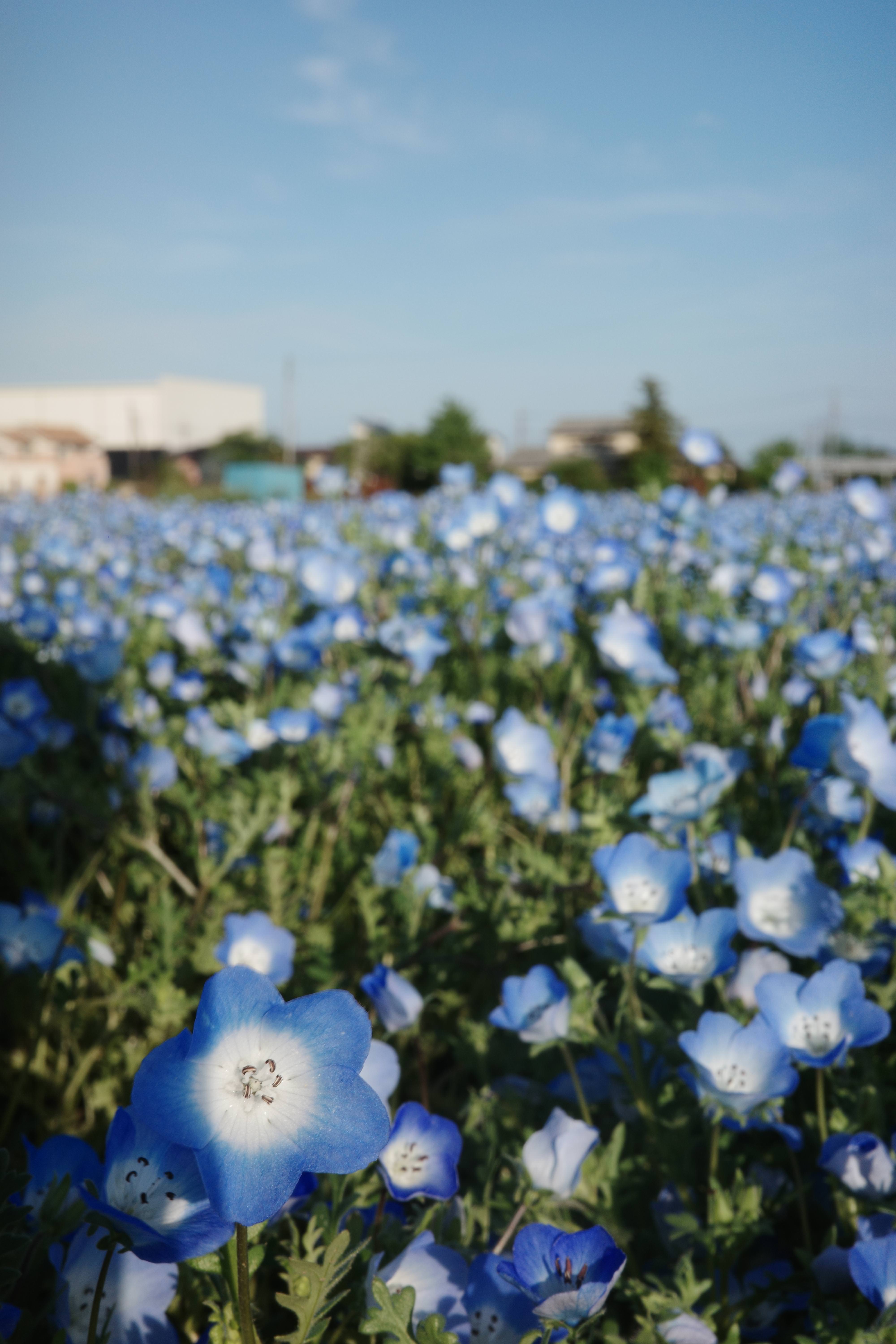 ブルーでも白でもない、チョット色がムラサキっぽいネモフィラが・・・。