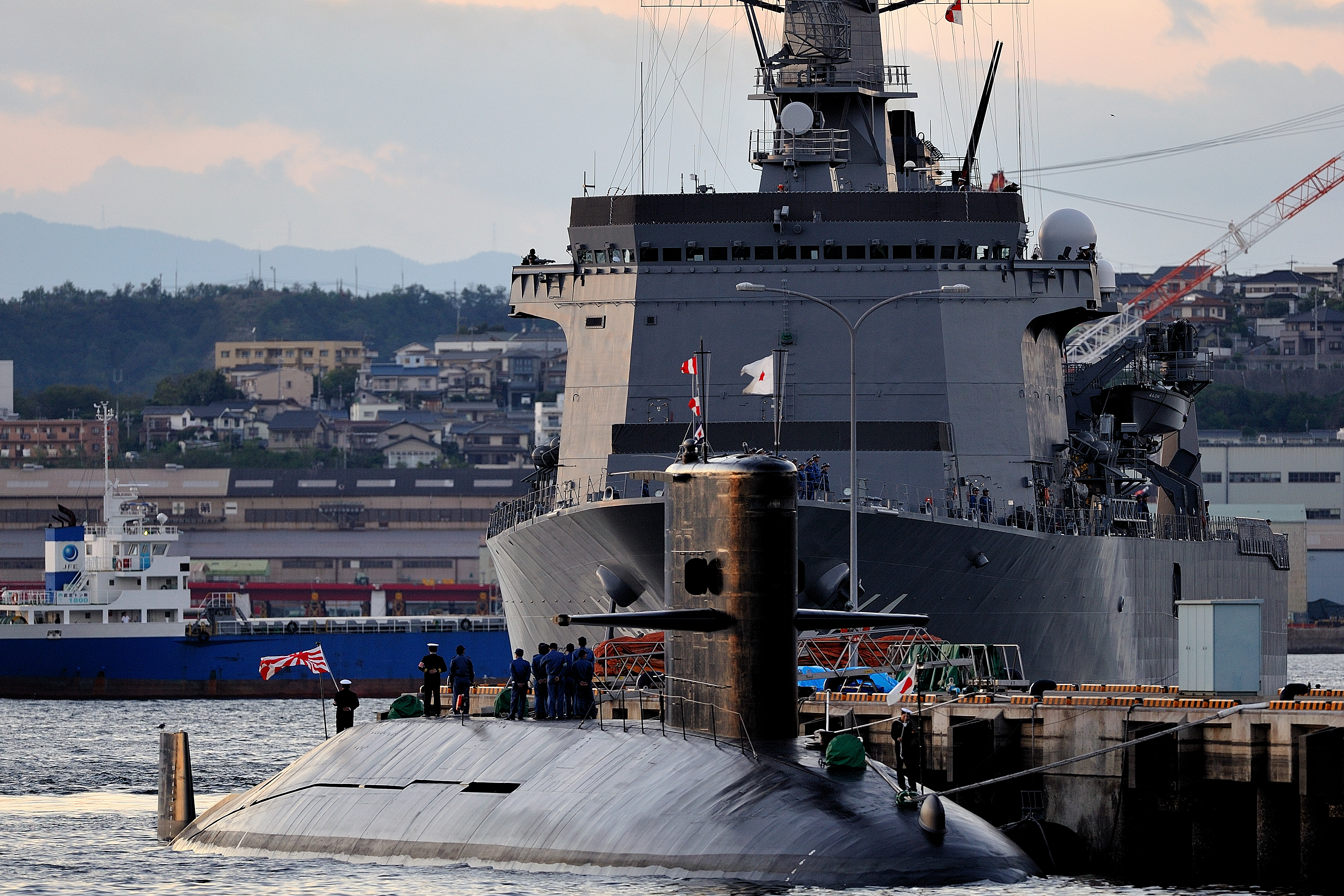 係留中の潜水艦を長時間露光で狙った