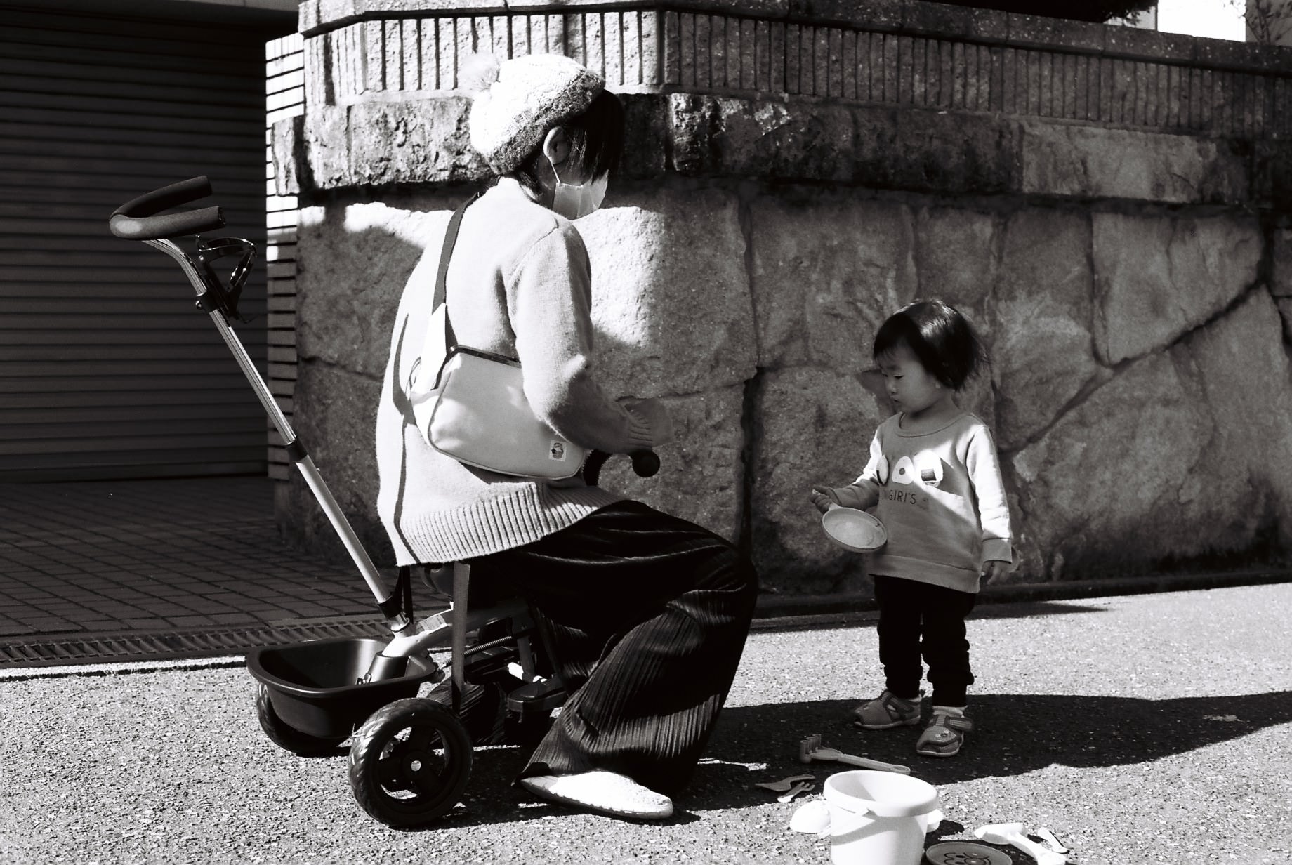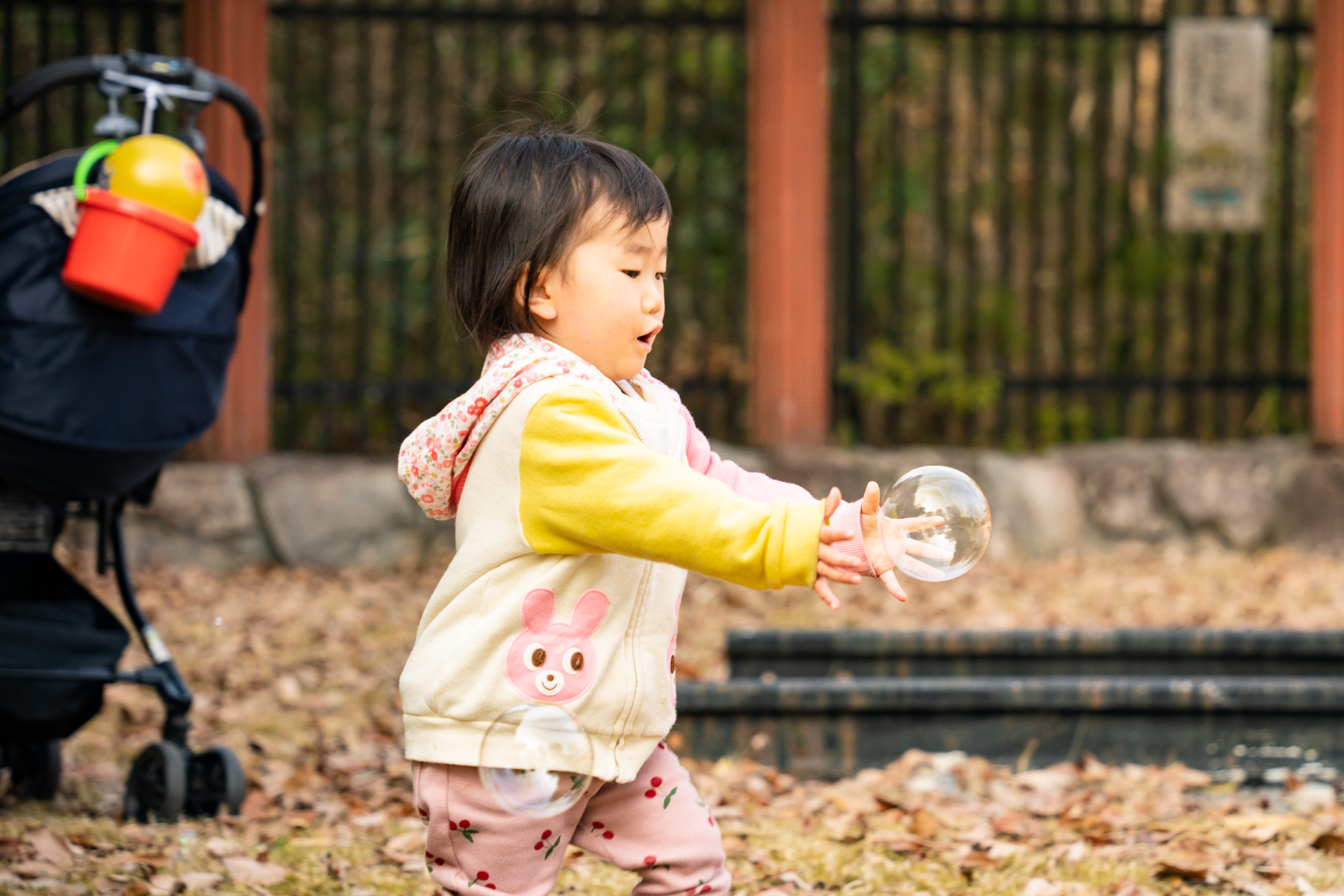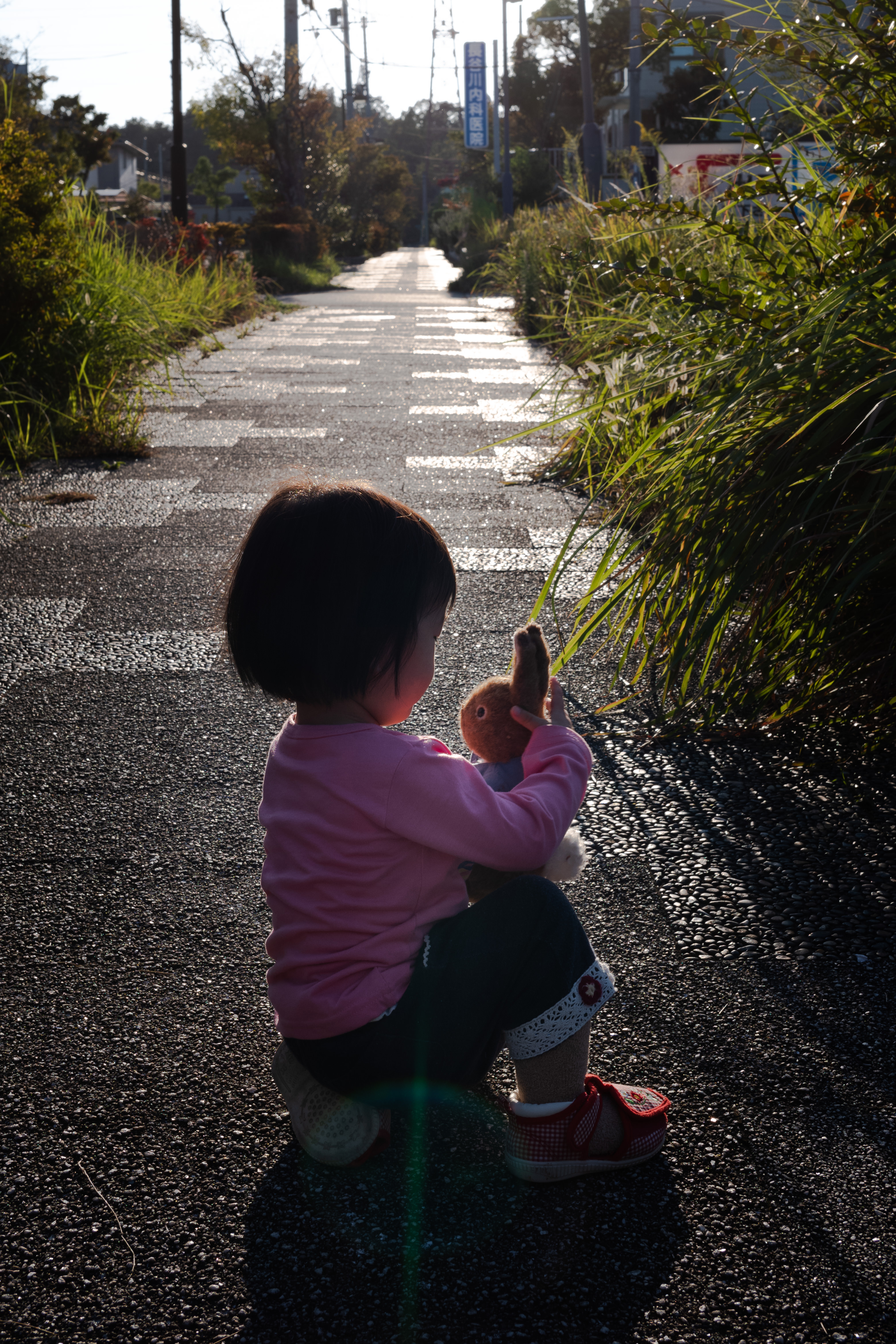 自分で投げてしまったピーターラビットのぬいぐるみを拾上げ救出する自作自演劇。