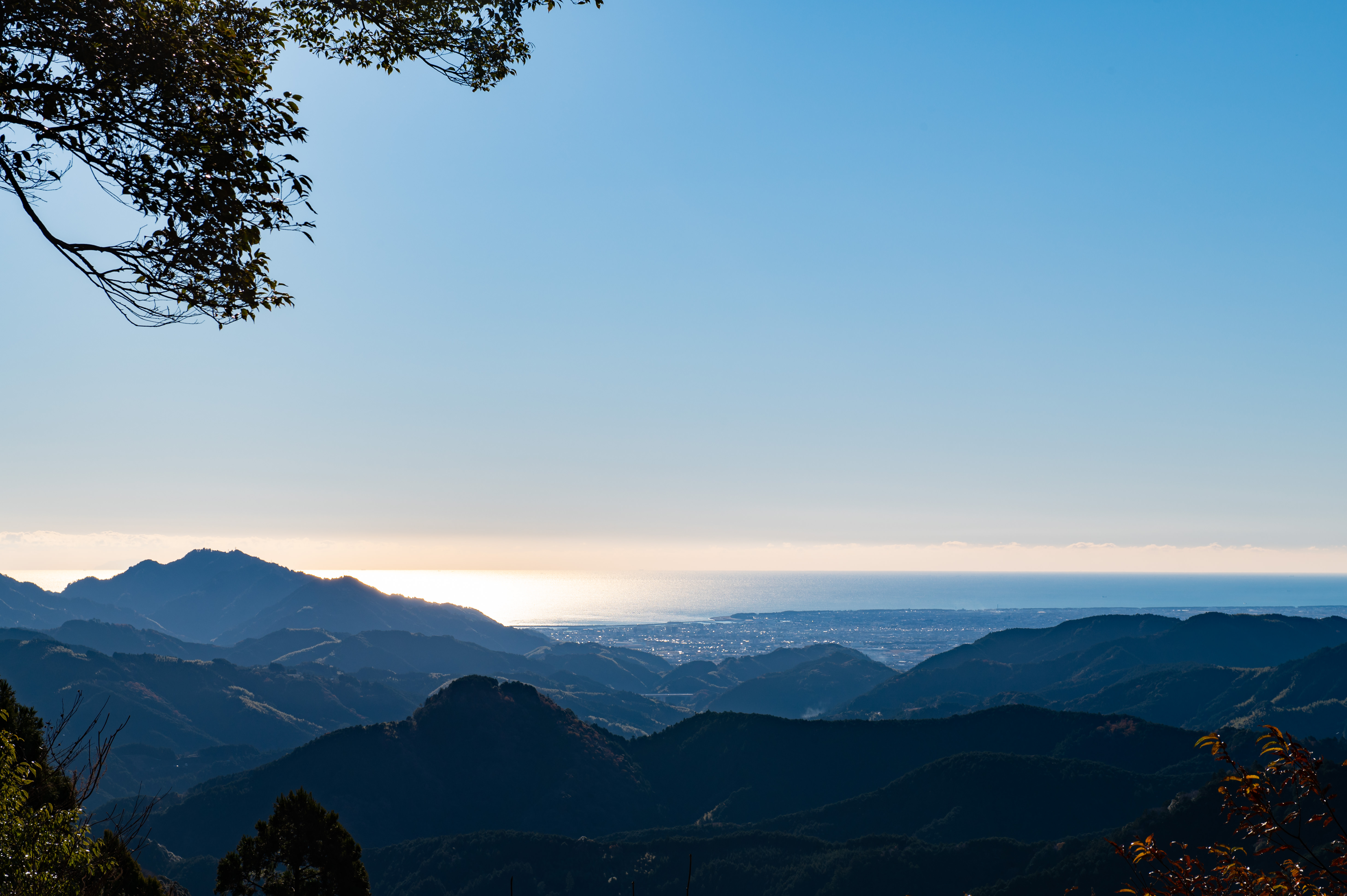 藤枝市のハイキングコース・青羽根パノラマコースから見える海。朝の光を反射して綺麗でした。