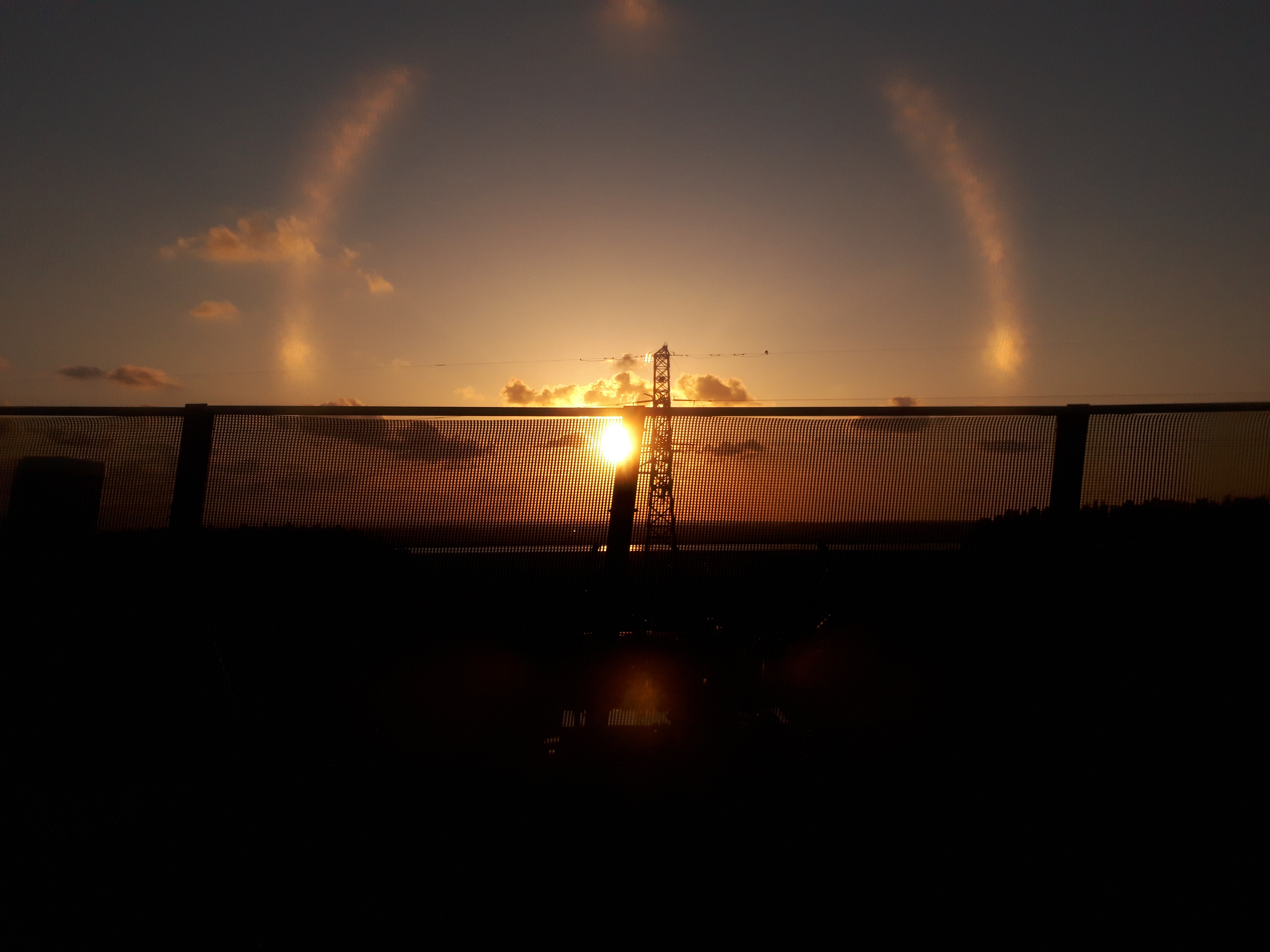田園風景の中の高架道路に特有の景色です。