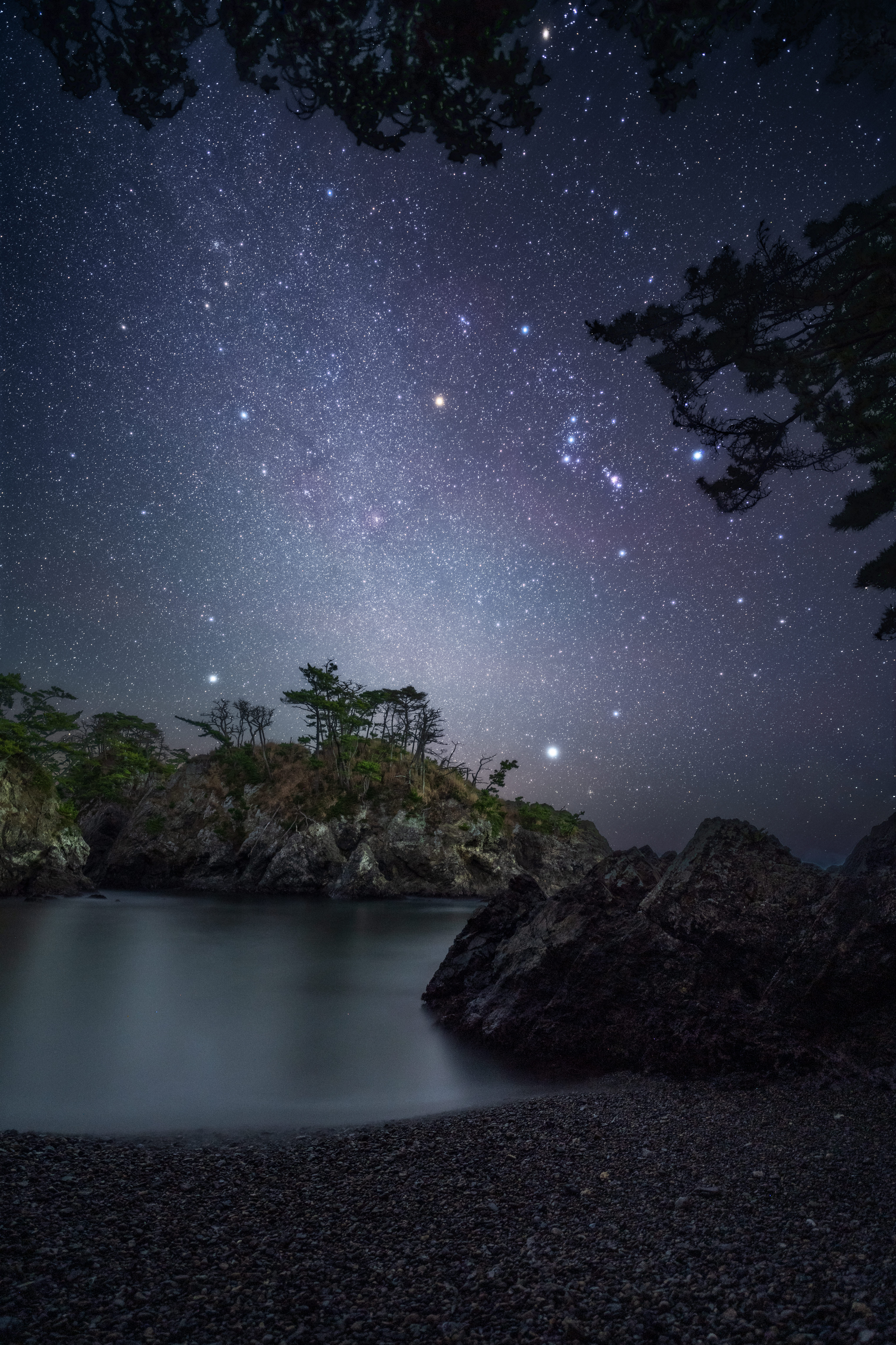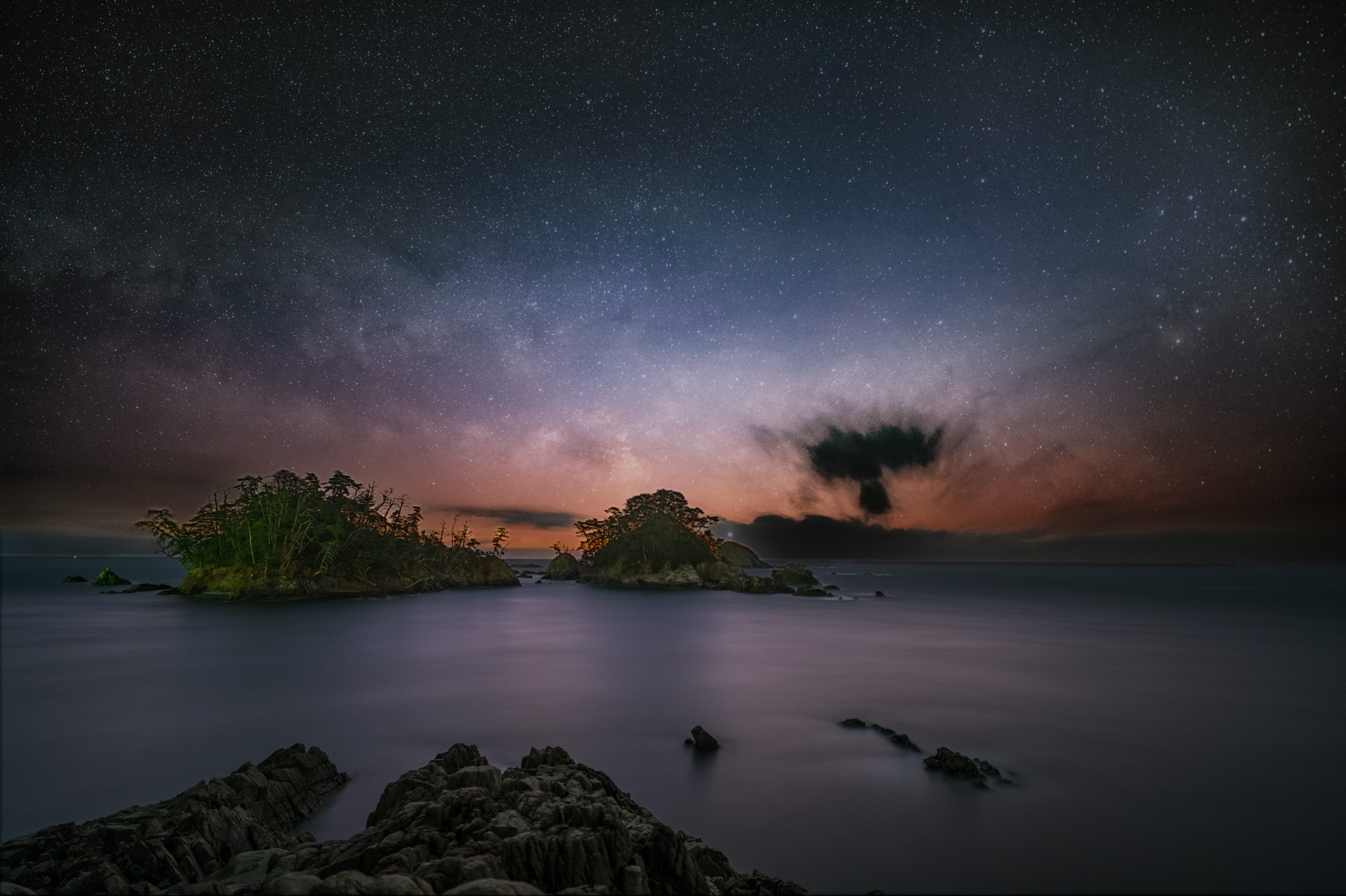 浄土ヶ浜の天の川を魚眼レンズで撮りました。