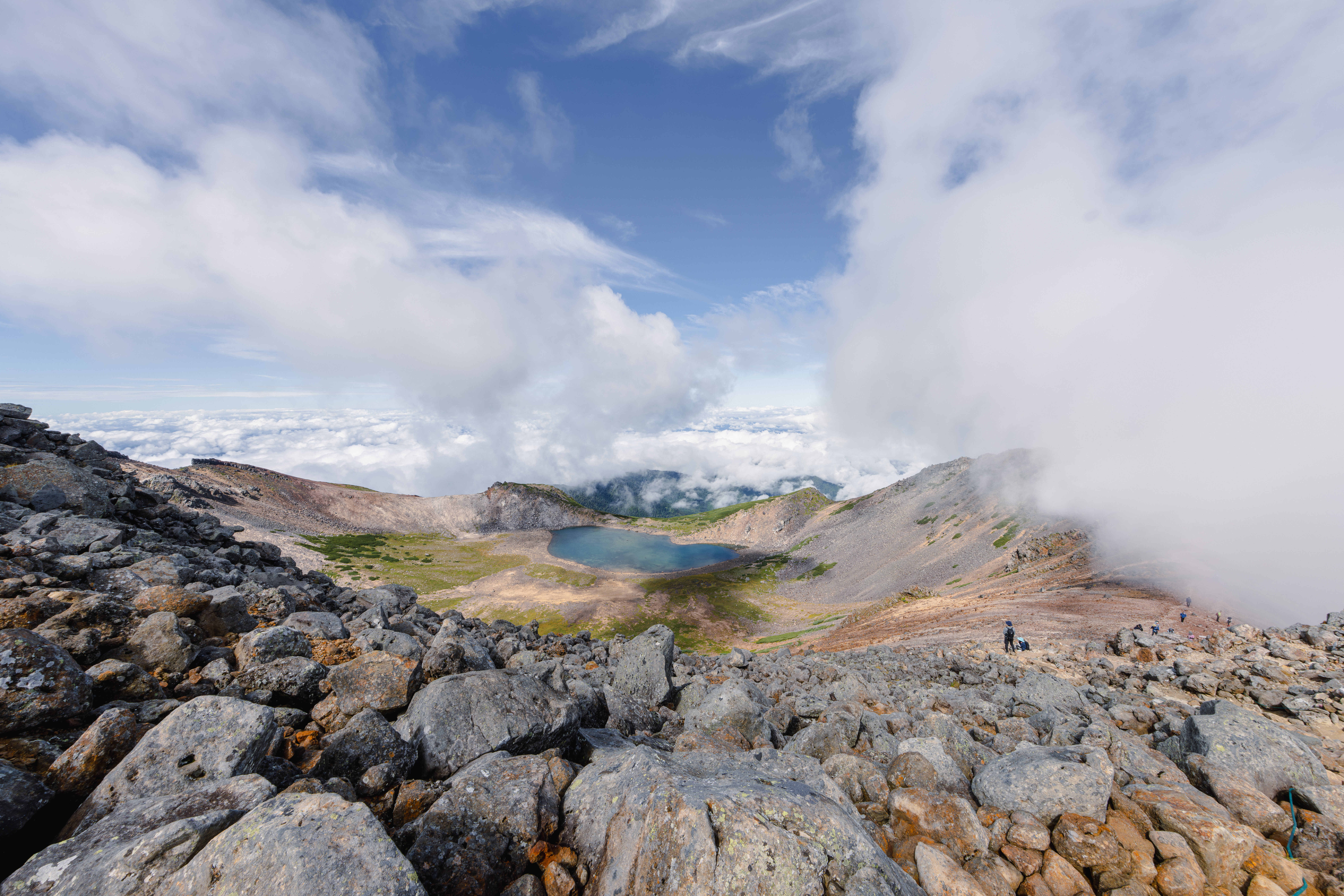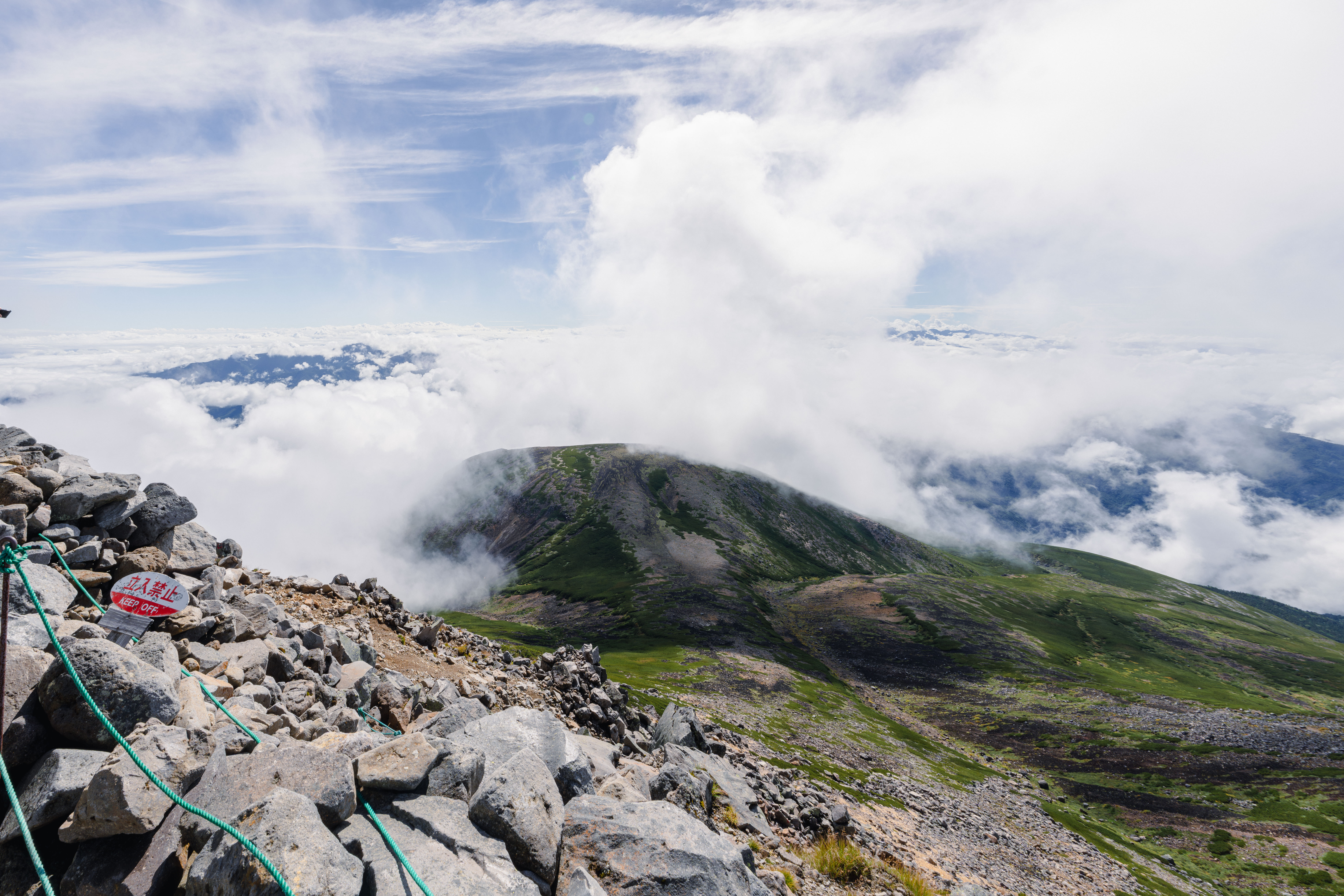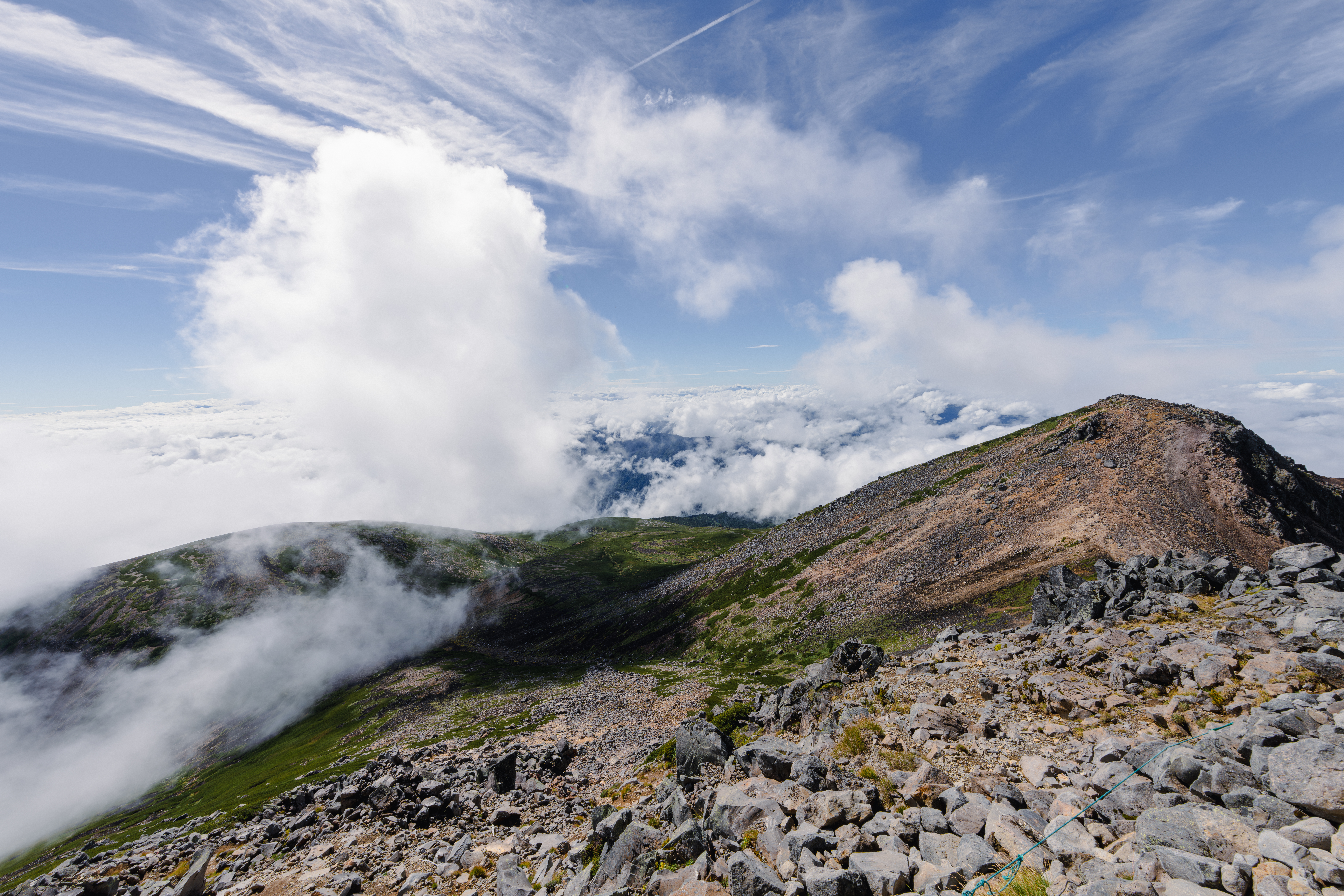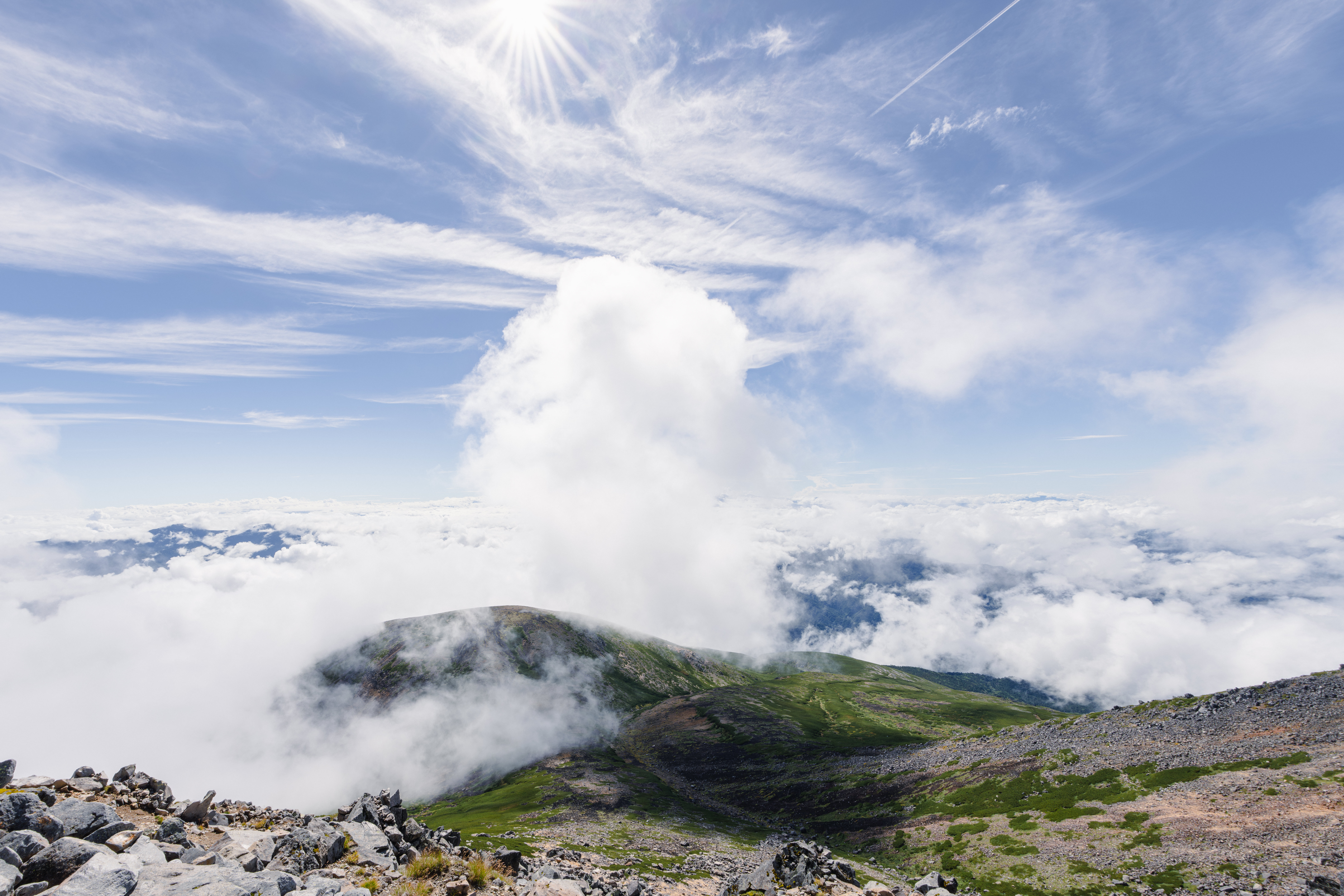 乗鞍岳の最高峰、剣ヶ峰からの絶景です。山頂からの絶景を広角で余すことなく写せ、太陽の光芒と空と緑のコントラストが綺麗に撮れ、対角魚眼レンズの良さが全部詰め込むことができたと思います。