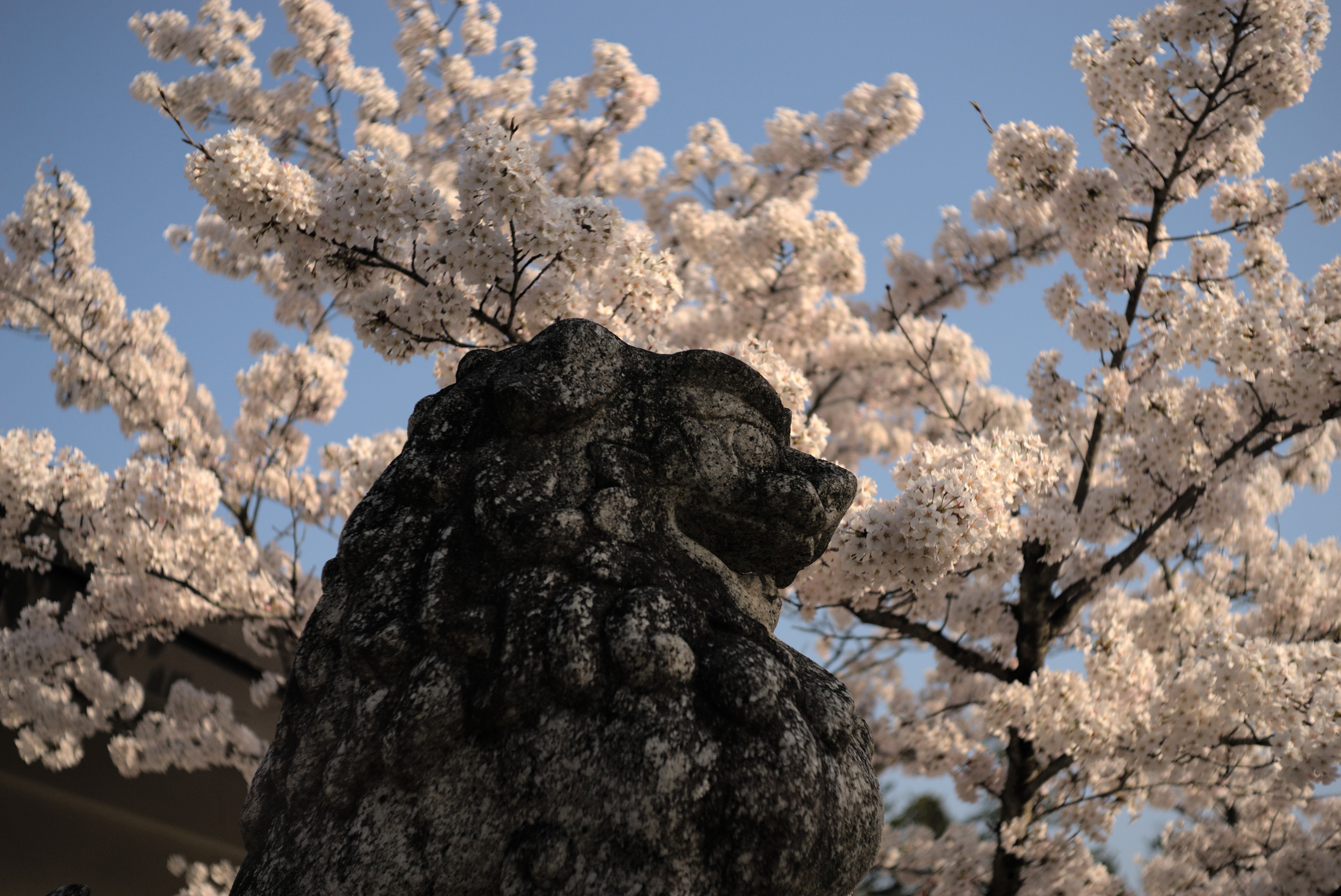 ソメイヨシノと狛犬