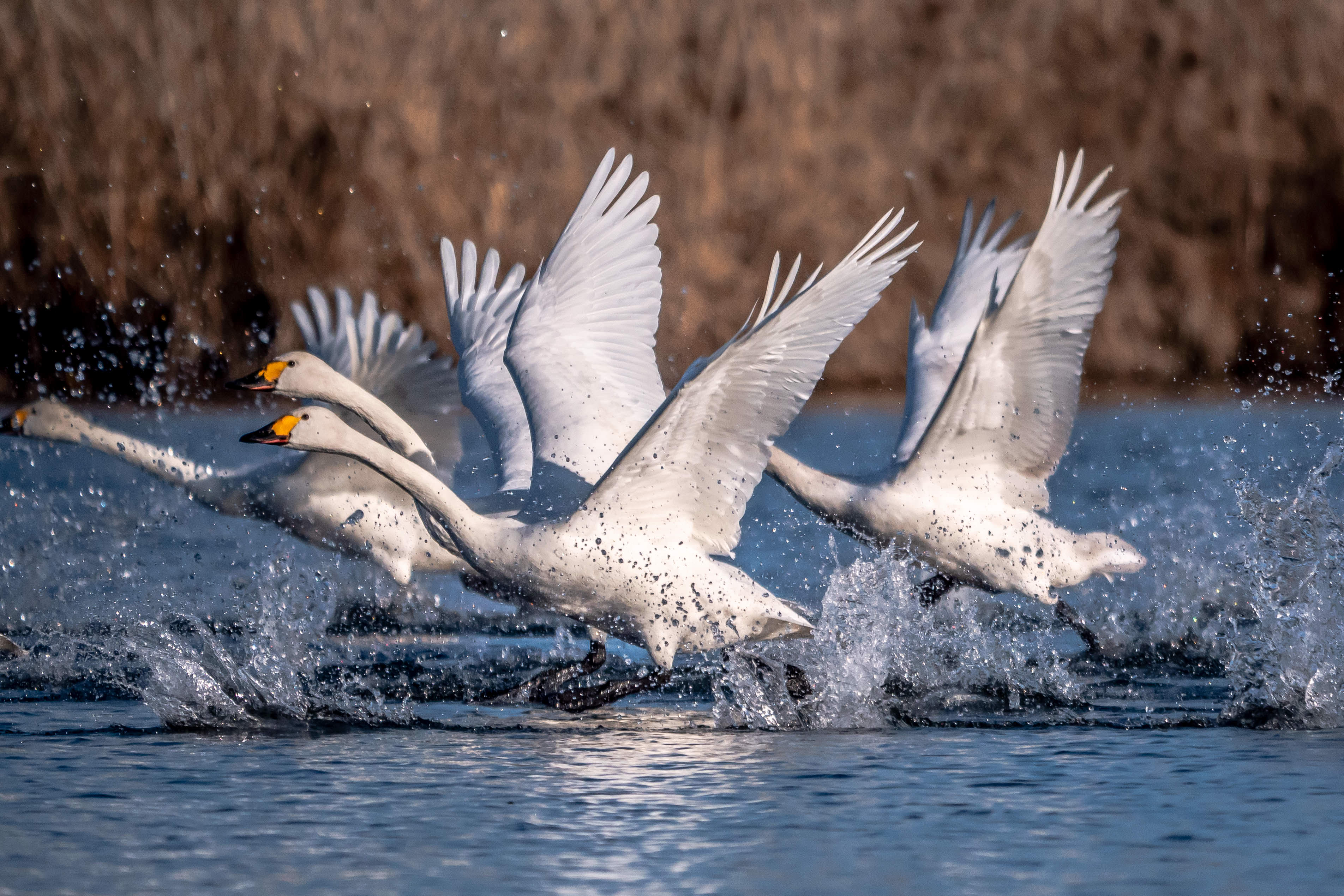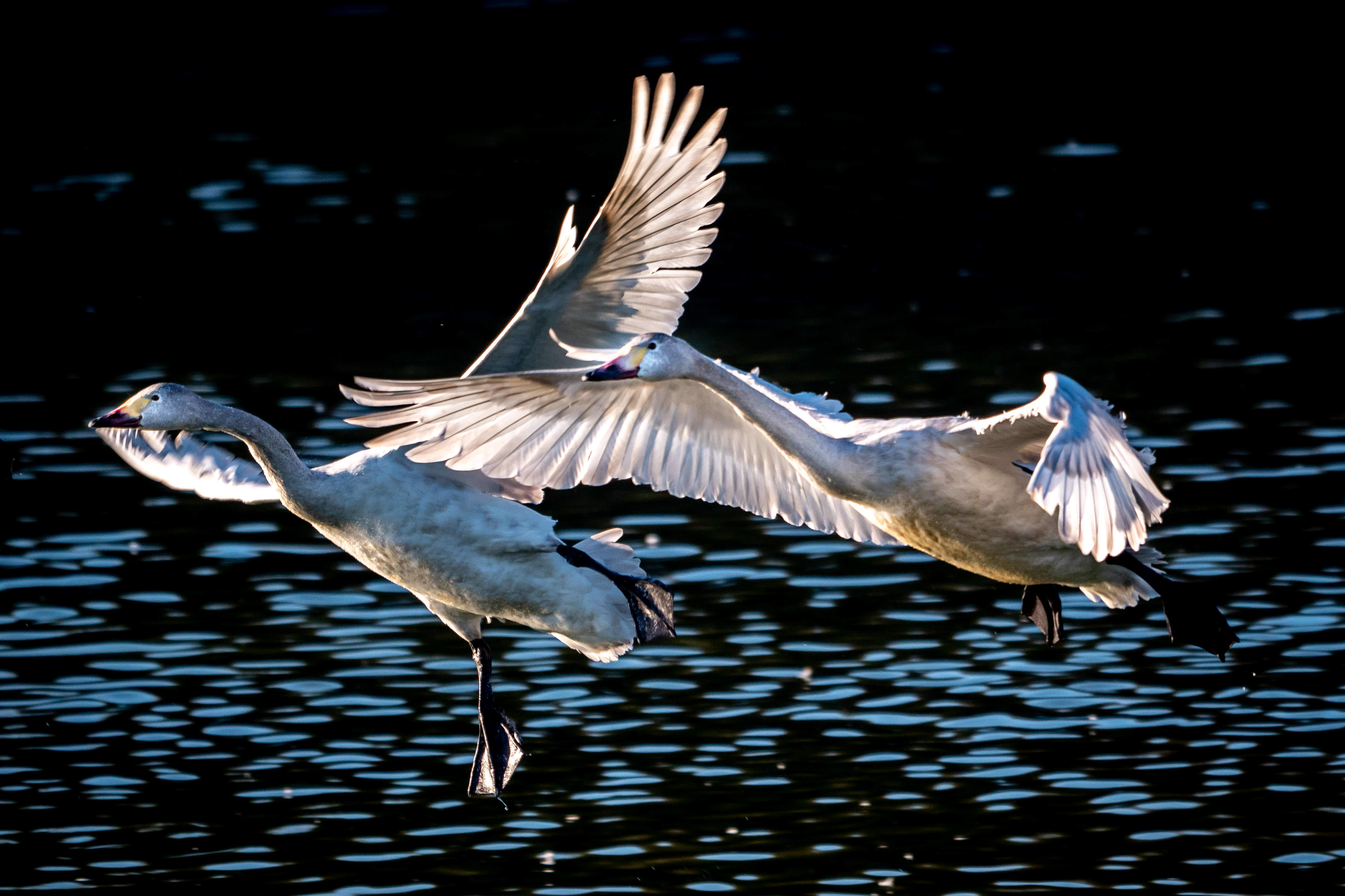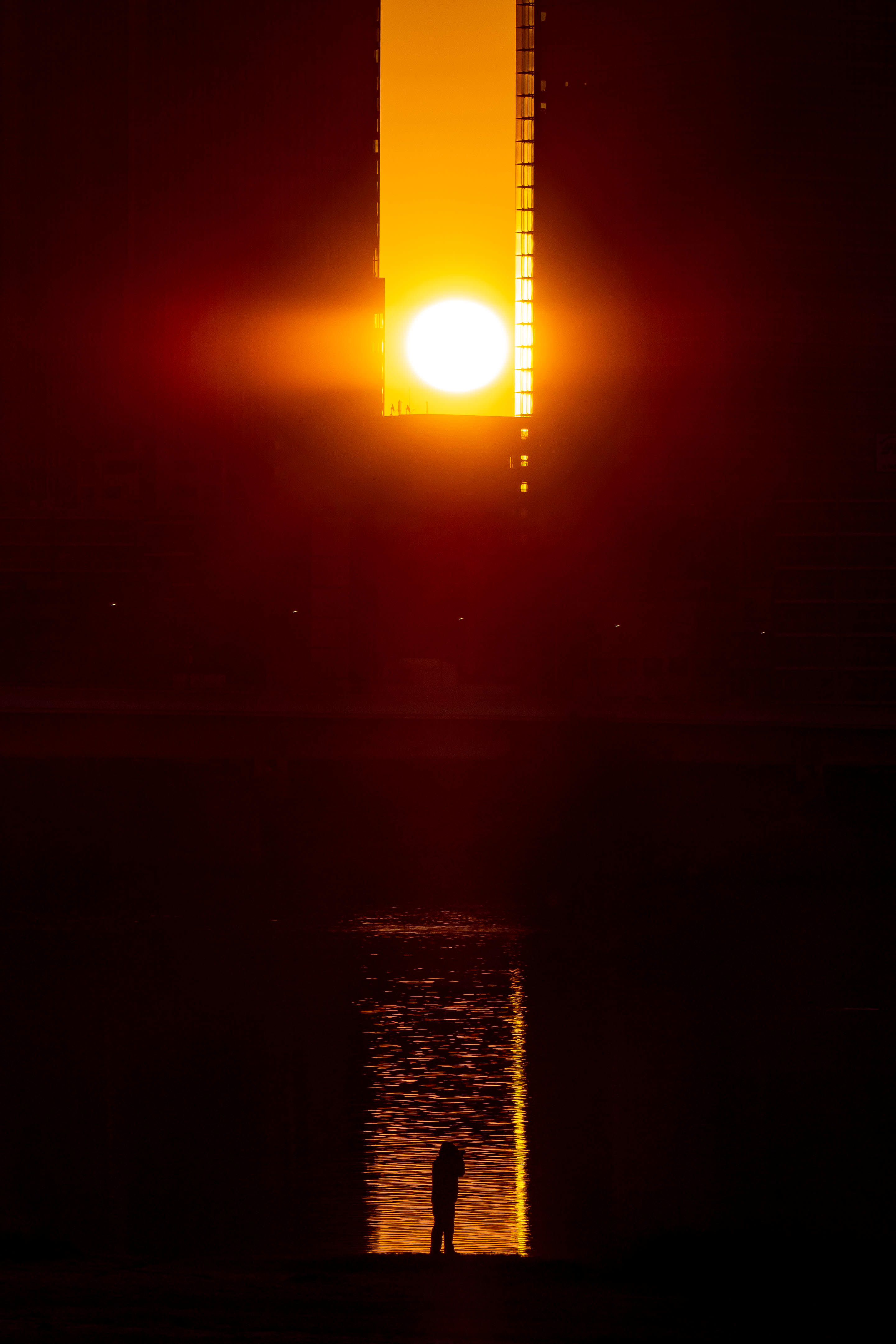 日の出とともに鳥の群れ